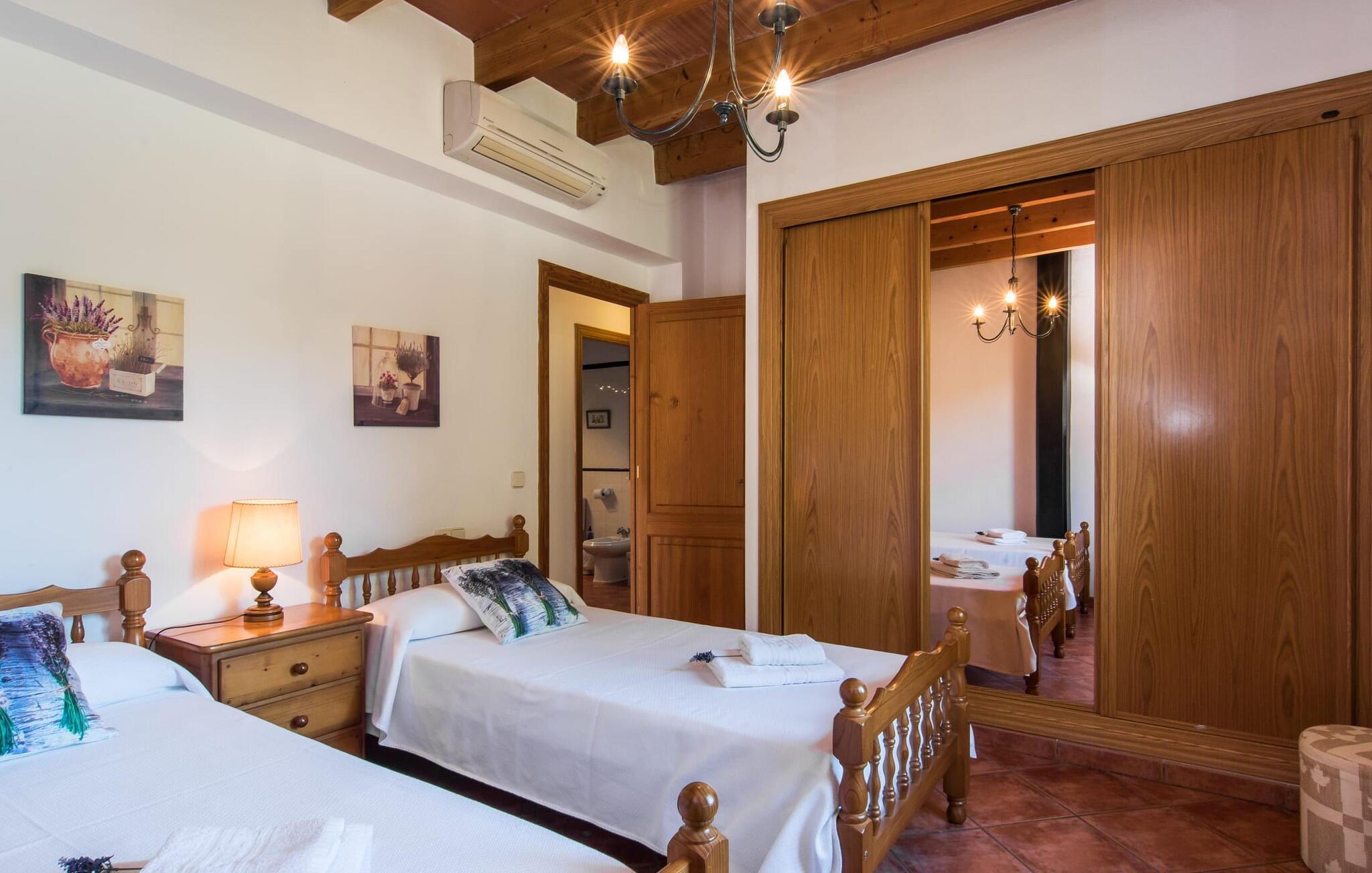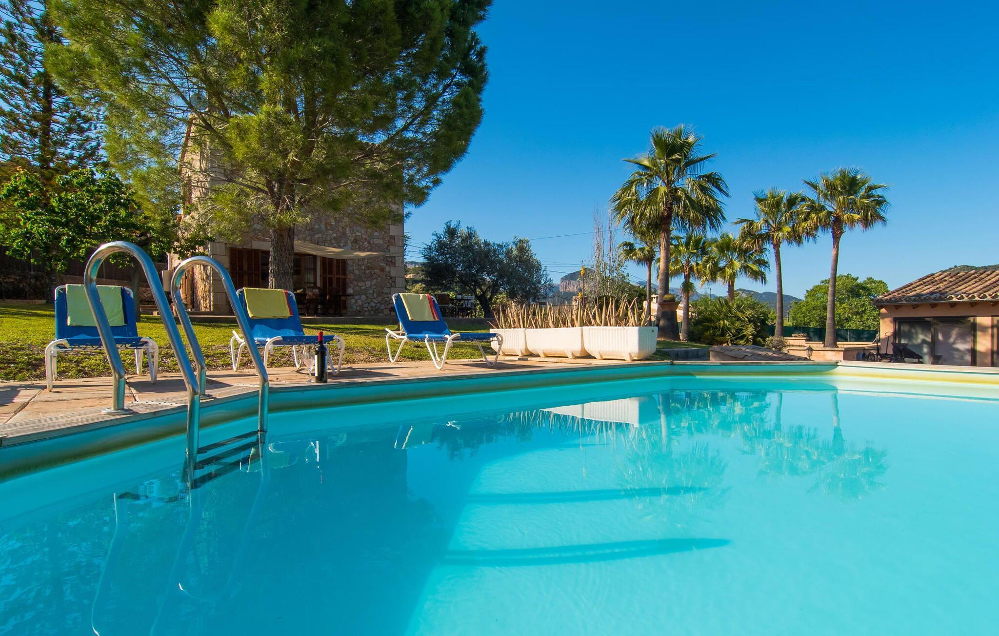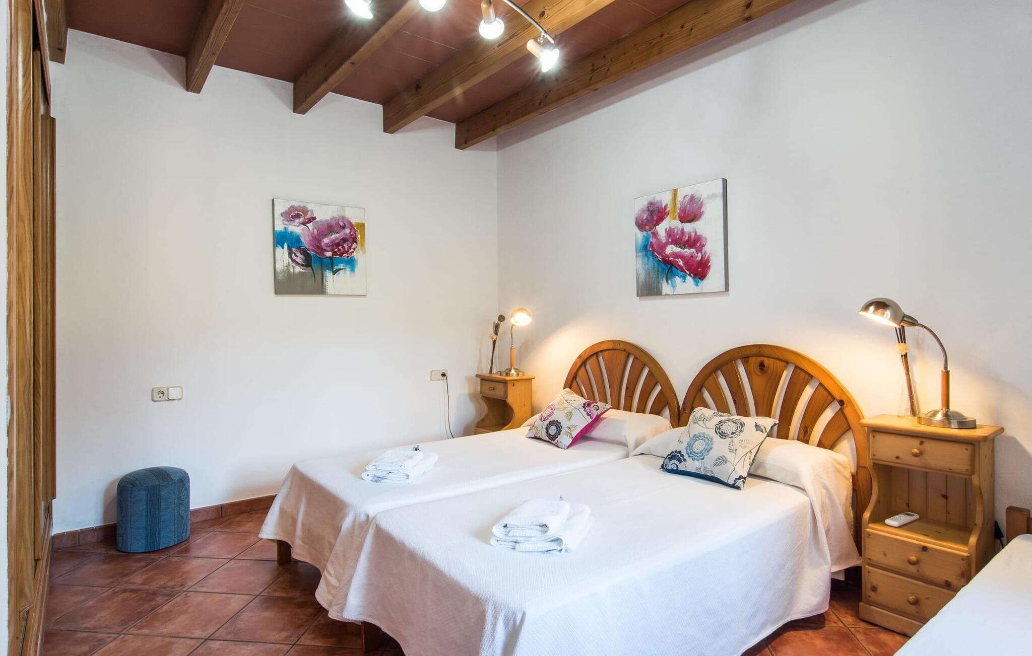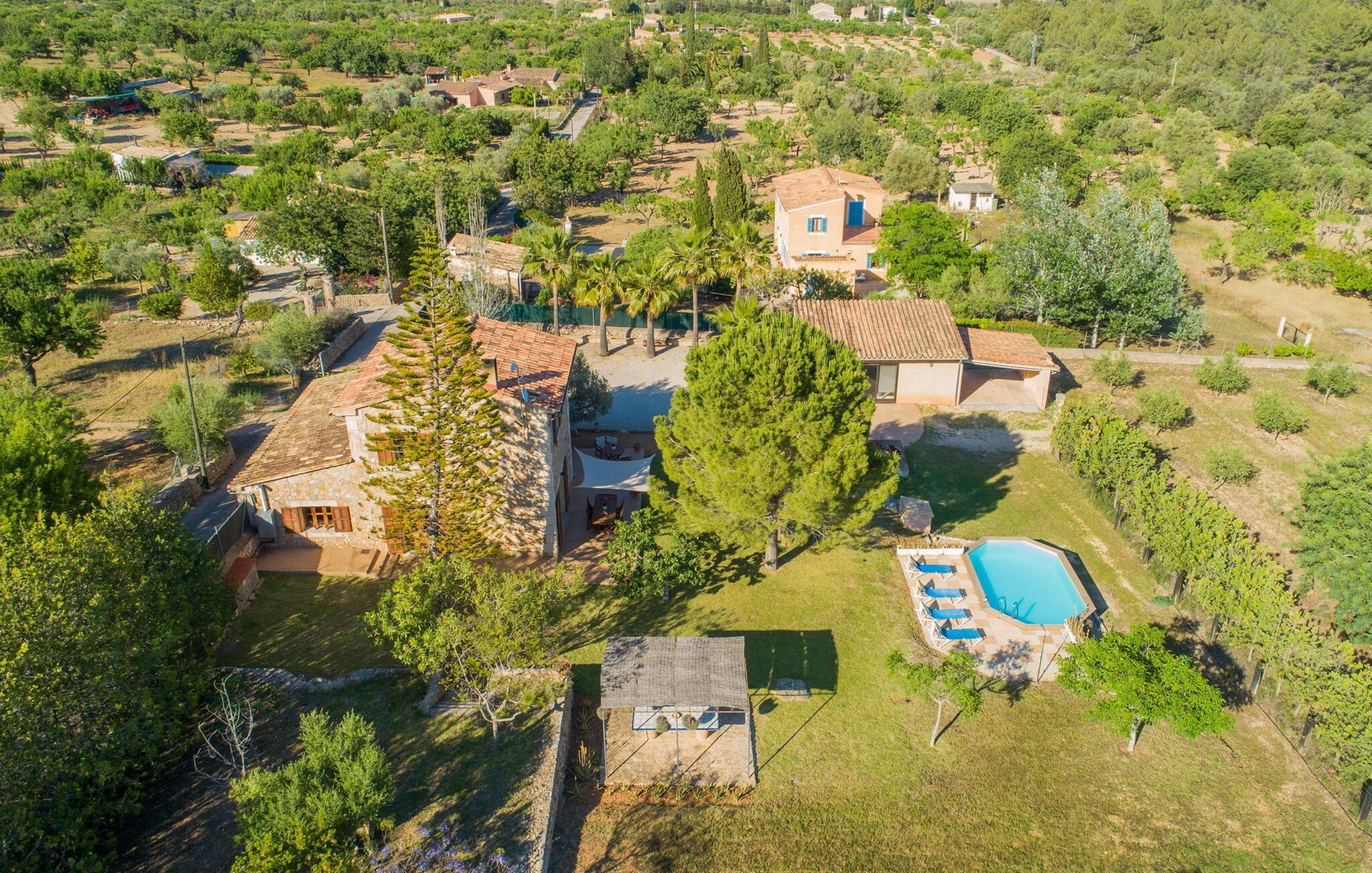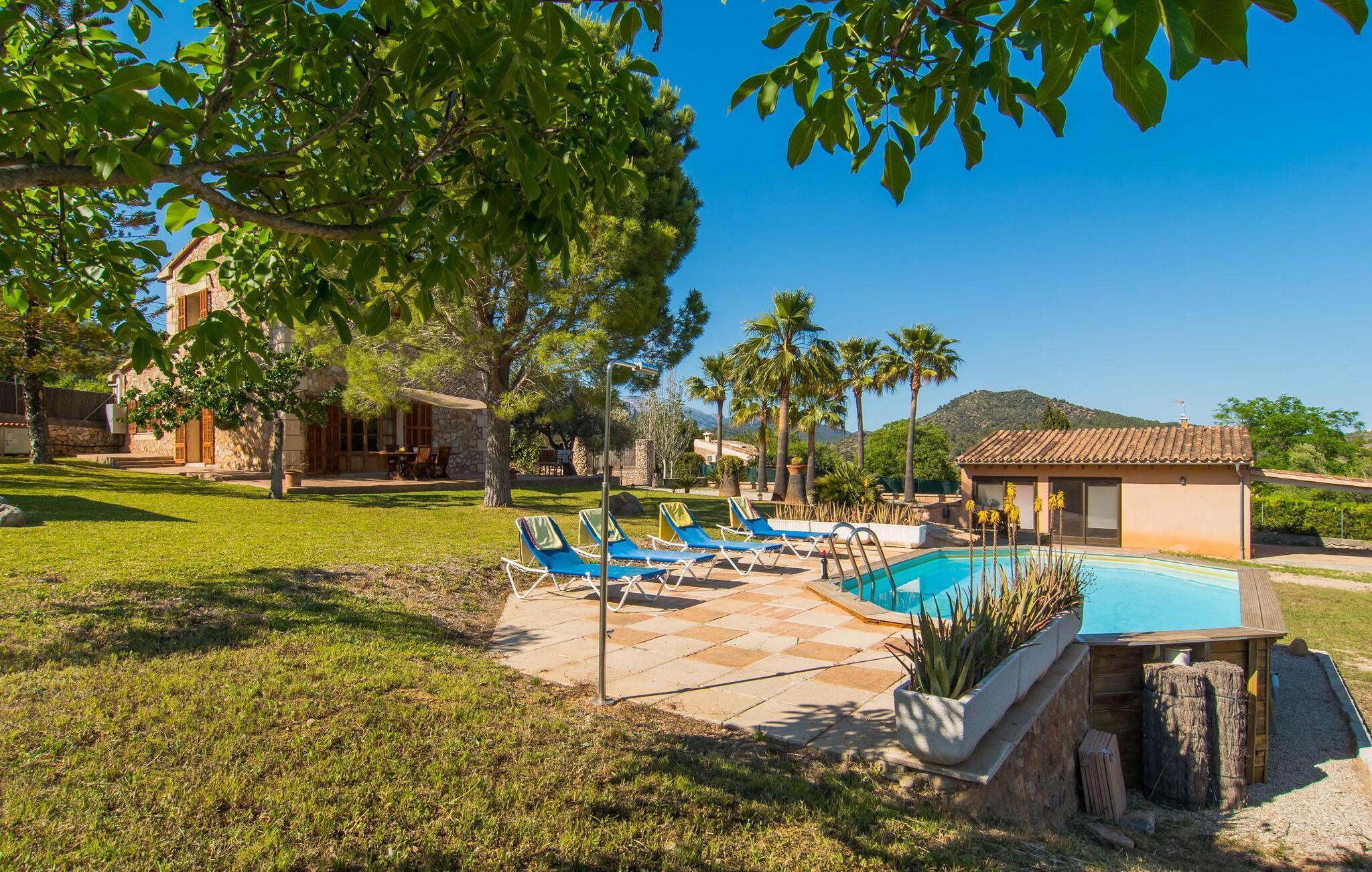 Rent landliv for hele familien - det er, hvad der venter dig i "Banyols"-gården. Mellem Alaró og Consell i centrum af øen kan du nyde ægtheden af et mallorcansk feriehus på den majestætiske baggrund af Tramuntana-bjergene. Så det er næppe overraskende, at naturen ikke kun viser sin mangfoldige rigdom i den kærligt designede have, men at vores gæster er fuldstændig betaget af de til tider spektakulære omgivelser. Det to-etagers feriehus lavet af stenbrud med lyse træskodder putter sig i naturens grønne skød. Samtidig er designet familievenligt med træpoolen, der lover sjov og forfriskning i en børnevenlig dybde. Overdækkede siddepladser i haven og terrasse overdækket med markiser giver de bedste muligheder for at slappe af og spise på ethvert tidspunkt af dagen. Uanset om det er stort eller lille, kan hele familien eller endda to slappe af og nyde feriefølelsen her. Den harmoniserende følelse understøttes af en typisk landstedsflair mellem tradition og modernitet. Varme terracottatoner, træelementer og fritlagte brudsten sætter tonen an. Traditionelle blå og hvidmalede fliser i det fuldt udstyrede køkken definerer standarden for dette autentiske feriehus. Det gælder naturligvis også for de værelser, der har aircondition for at sikre en følelse af velvære, herunder de tre dobbeltværelser. Der er et moderne brusebad på hver etage for op til seks personer. Den hyggelige stue med pejs lover en rustik feriefølelse selv i de kølige måneder, som lover meget milde og behagelige temperaturer på Mallorca. Den smagfulde udsmykning uddyber dette med et passende strejf af nostalgi. I øvrigt bør du bestemt tage et kig på tiderne uden for sæsonen, for de moderate lejepriser er et yderligere incitament til at booke tidligt. Uanset hvornår på året - det hyggelige bondehus "Banyols" venter på dig og byder dig hjertelig velkommen. Og hvornår kan vi byde dig velkommen? Bondehuset "Banyols" med middelhavshave og pool er et familieferiehus på Mallorca, som kan lejes hele året rundt. Det ligger omkring 3 km syd for Alaró. Der kan du gøre dine indkøb i supermarkederne eller på det ugentlige marked. Øens hovedstad Palma kan nås i bil på omkring 25 minutter. Du kan også kombinere turen med et besøg på de smukkeste strande på vestkysten som Passeig del Molinar eller Cuidad Jardin. Dette er et Fincallorca feriehus.