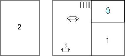 Komb. spisestue/køkken 30m2 - 1 Soveplads. (Sofa, madras eller lignende).