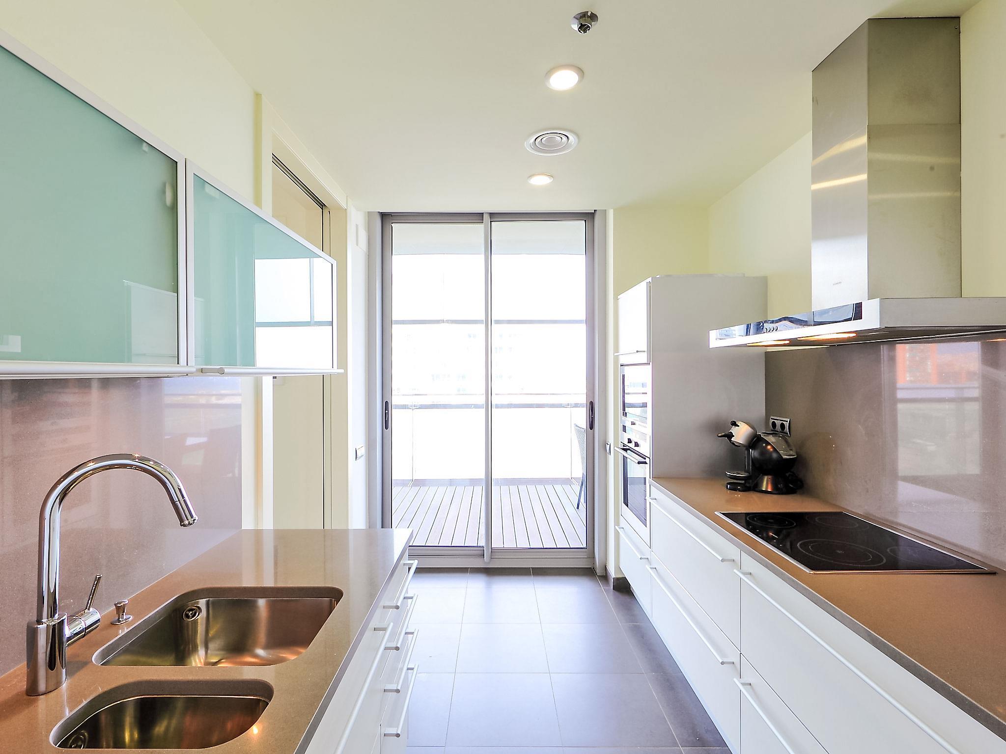 Diagonal Mar: Modern apartment block "Diagonal Mar", 21 storeys. In the resort, in a sunny position, 150 m from the sea, 150 m from the beach. For shared use: garden with lawn, swimming pool (seasonal availability: 01.Jan. - 31.Dec.). Outdoor shower. In the house: lift, air conditioning, washing machine. Parking (extra), public car park at 350 m, extra. Shop, supermarket 300 m, bus stop "H16 - Pl. Catalunya" 100 m, underground station "L4 - Forum" 500 m, sandy beach "Vila Olímpica" 150 m. Children's playground 25 m. Nearby attractions: Plaça Catalunya 5.3 km, Parc Güell 6.5 km, Passeig de Gràcia 5.3 km, Sagrada Família 4.1 km. The owner does not accept any youth groups. Neighbourhood highly sensitive to noise. Quietness and good behaviour expected. House only available, specifically, for families and responsible adults over 25 years old.