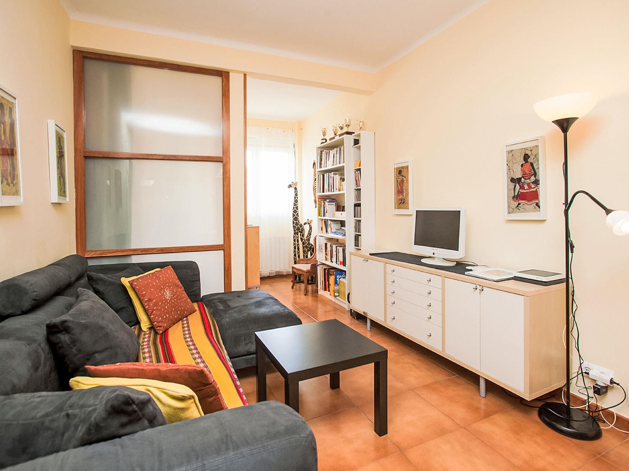4-room apartment 72 m2 on 6th floor. Comfortable furnishings: living/dining room with digital TV, flat screen, radio, DVD, air conditioning and forced-air heating. 1 room with 1 french bed. 1 room with 2 x 2 bunk beds. Small office. Kitchen (oven, 4 ceramic glass hob hotplates, toaster, kettle, microwave, freezer). Shower/WC. Facilities: washing machine, dryer, iron, hair dryer. Internet (WiFi, free). Please note: suitable for families. Non-smoking house. ATTENTION please: The intercom corresponding to this floor is in the LEFT side of the entrance door ("Escala ESQUERRA"). HUTB007164 // Reg. Nr.: ESFCTU00000805400037443400000000000000HUTB-007164-171