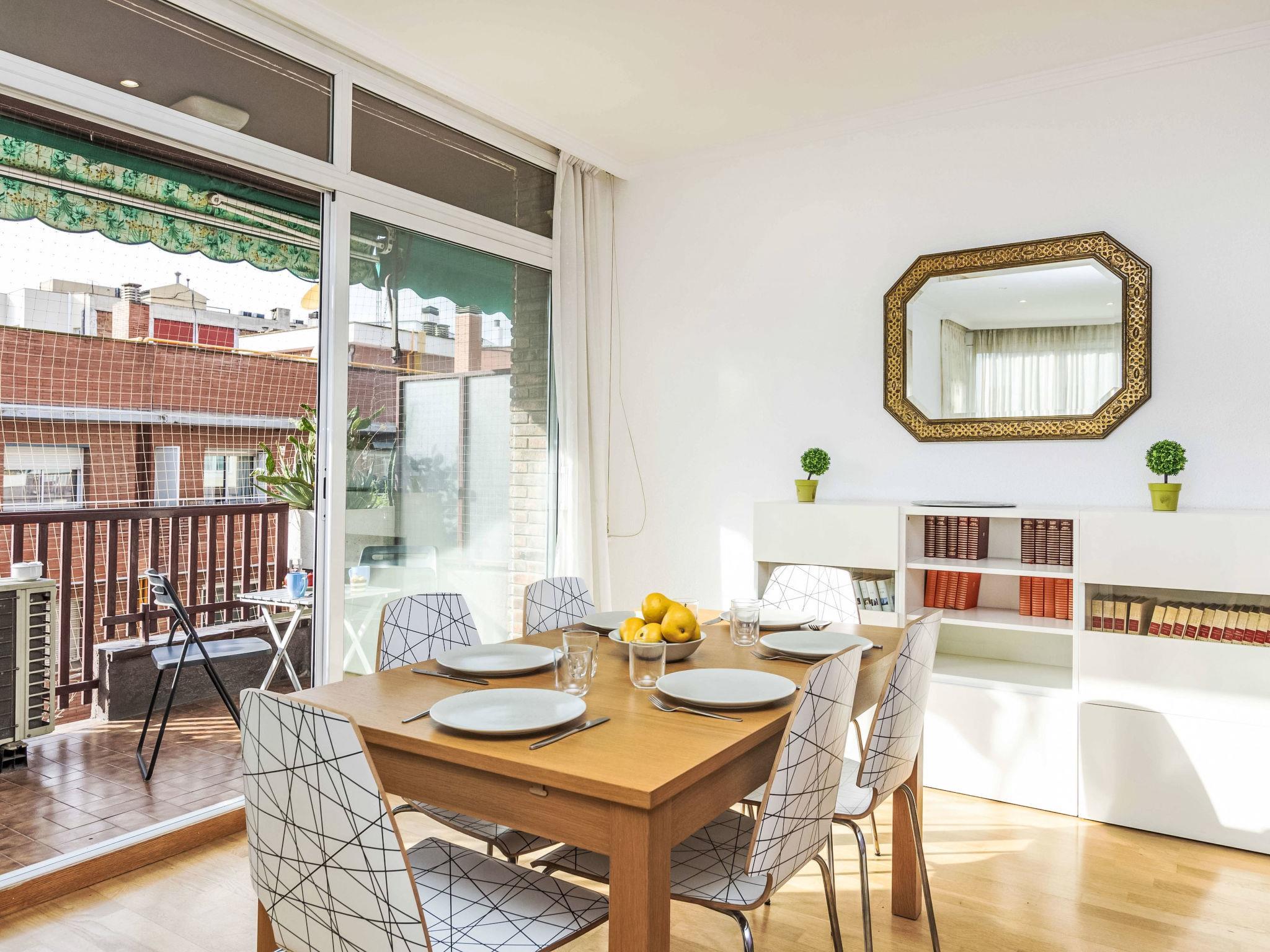 Sants-Les Corts: Apartment block "Sants-Les Corts Galileu". In the resort, 6 km from the sea. In the house: lift. Public car park at 10 m, extra. Supermarket 25 m, shopping centre 500 m, restaurant 100 m, bar 1 m, bus stop 100 m, railway station 1 km, underground station "L3 - Les Corts" 160 m, sandy beach "Barceloneta" 6 km. Children's playground 100 m. Nearby attractions: Parc Güell 4.7 km, Sagrada Familia 4.3 km, Passeig de Gràcia 3.2 km, Plaça Catalunya 3.8 km, Plaça Espanya 2 km, Estadio Fútbol Club Barcelona 700 m. The owner does not accept any youth groups. Neighbourhood highly sensitive to noise. Quietness and good behaviour expected. House only available, specifically, for families and responsible adults over 25 years old.