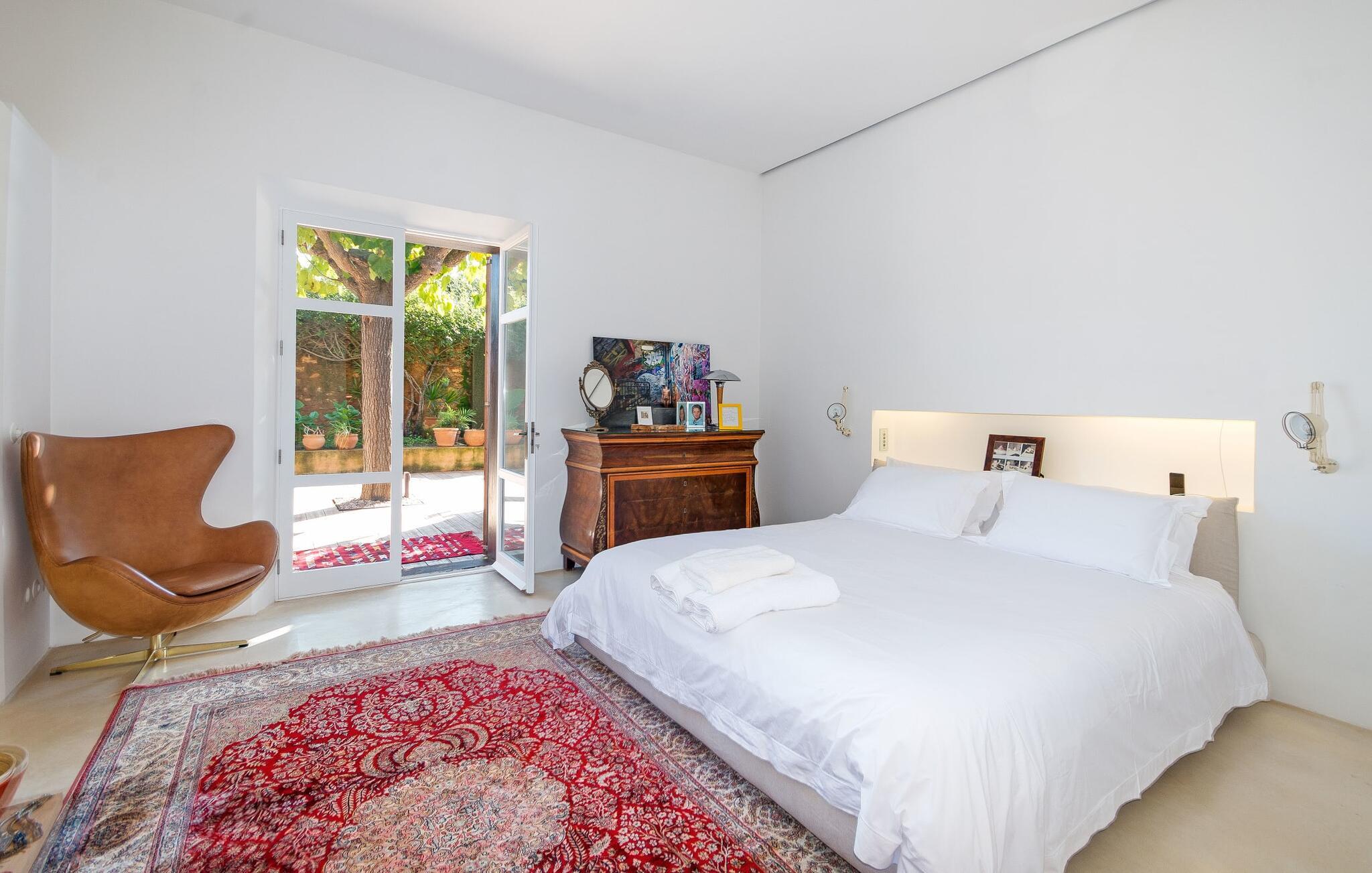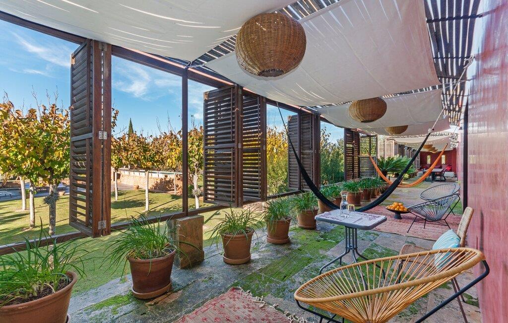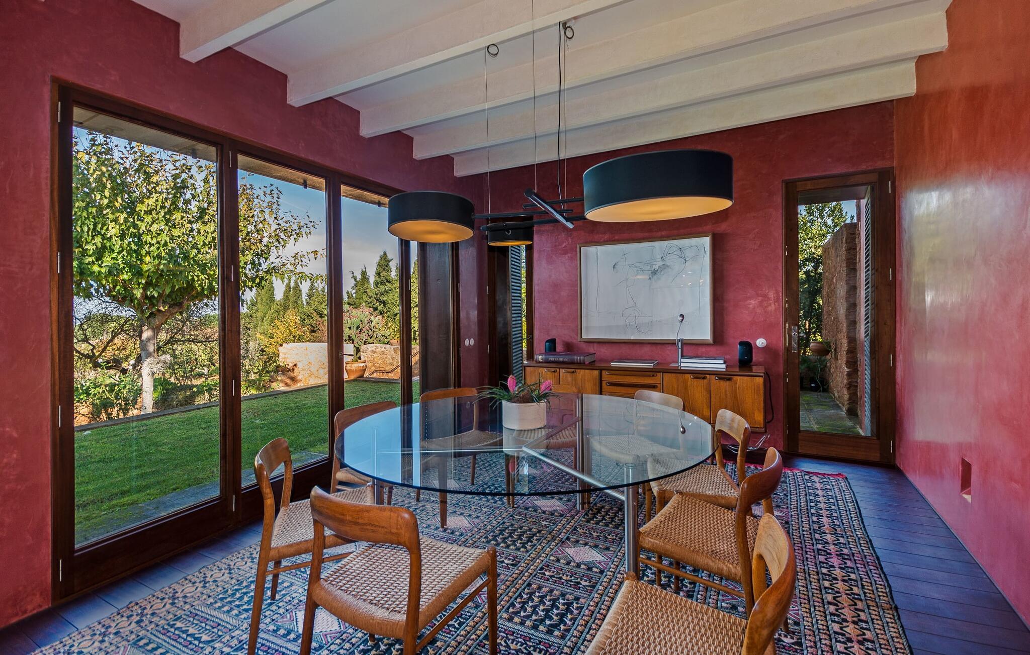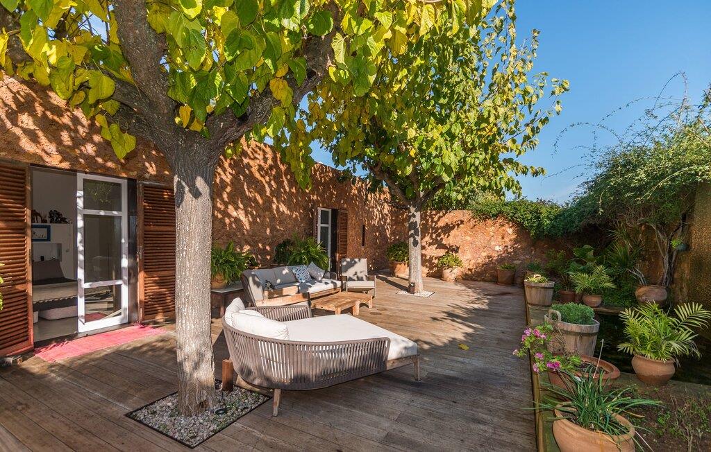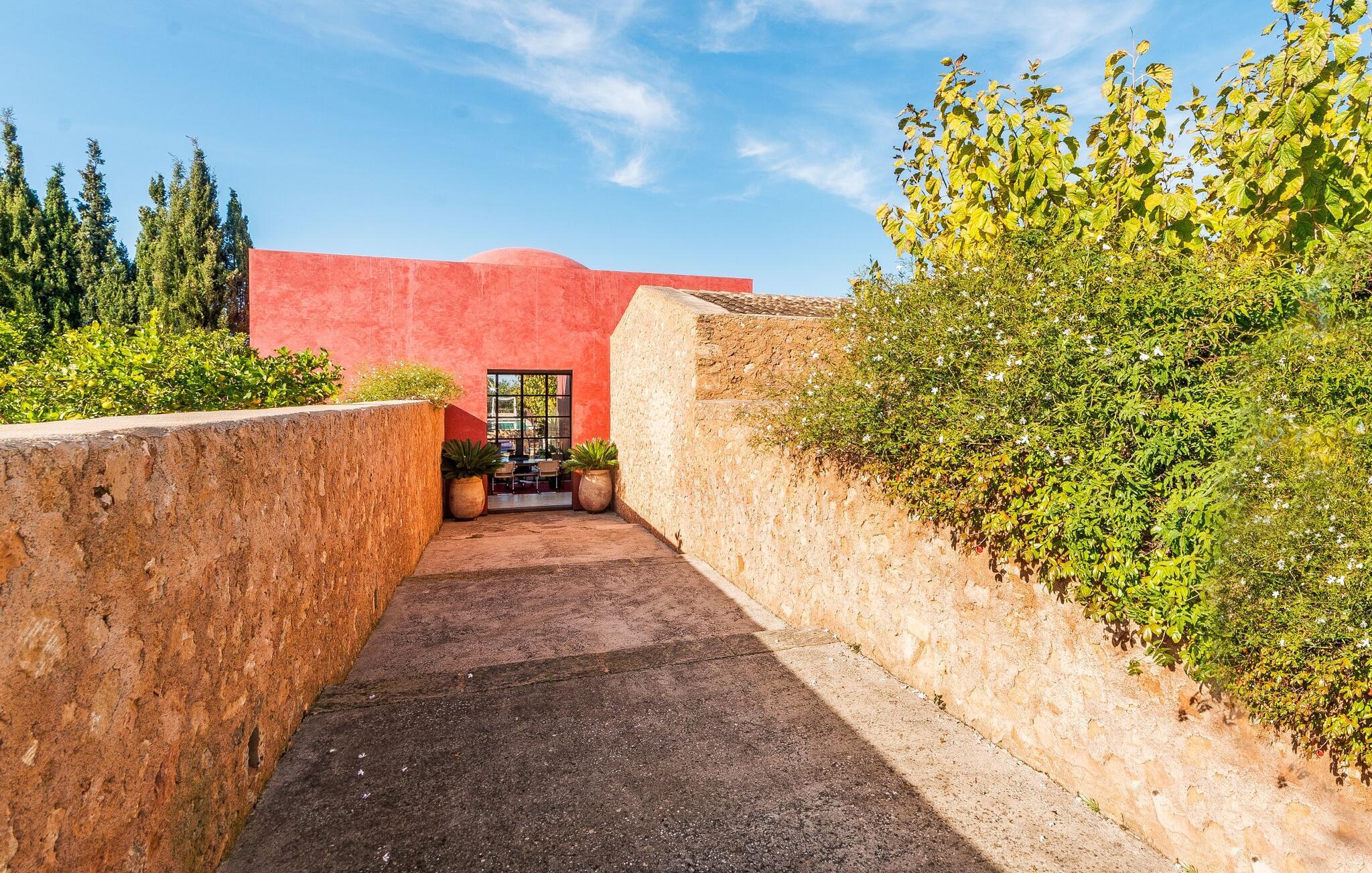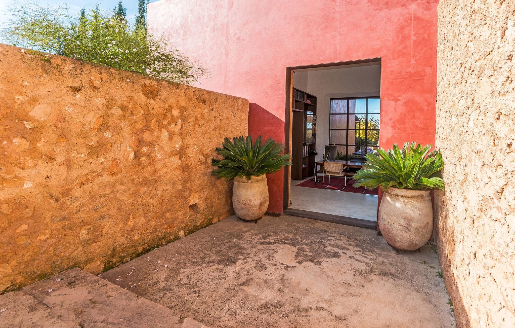Beliggende i Manacors frodige omgivelser byder denne slående, lilla-dekorerede villa "Barranc de Son Cifre" jer velkommen via en cypres-foret asfaltindkørsel. Den maurisk-inspirerede tidligere landejendom er blevet elegant renoveret og tilbyder en levende kontrast til dens grønne kulisse. En carport giver plads til op til tre køretøjer. Ejendommen har en unik swimmingpool, kreativt redesignet fra et tidligere vandreservoir, der tilbyder et forfriskende tilflugtssted efter solbadning. Afsondrede siddepladser, ofte ledsaget af rolige vandelementer, skaber rolige wellness-oaser, perfekt til en skyggefuld siesta. En udendørs sauna inviterer jer til at slappe af, og en Weber-grill er til rådighed til hyggelige grillaftener. Indvendigt blander det rene, strukturerede interiør moderne designelementer med retro- og træaccenter og har en pejs, stilfulde lysarmaturer og antikke møbler. Der er fire komfortable gæsteværelser, hver med eget badeværelse og rummelige dobbeltsenge. Den luftige stue, studiet og det stilfulde tekøkken er forbundet med udendørsarealet gennem store glasfronter, hvilket giver mulighed for problemfri indendørs-udendørs ophold. Den lille spisestue inviterer til en snak, mens den vindbeskyttede terrasselounge fungerer som et hyggeligt mødested. "Barranc de Son Cifre" er en luksuriøs spa-ejendom mellem byen og havet. Det travle centrum af Manacor, med et dagligt marked og en togforbindelse til Palma, ligger kun omkring 12 km væk. På kun 15 minutter i bil kan I nå stranden i Son Serra de Marina med Colònia de Sant Pere og vandreområdet omkring Betlem på den ene side og Can Picafort på den anden.