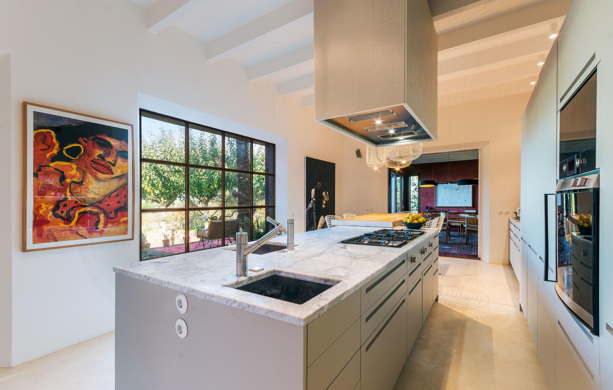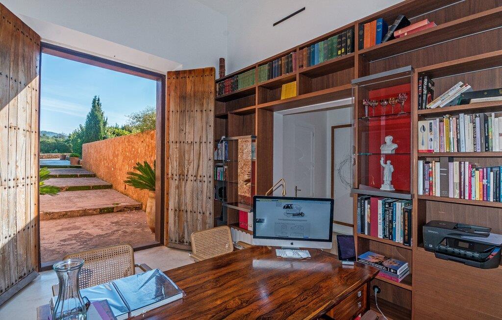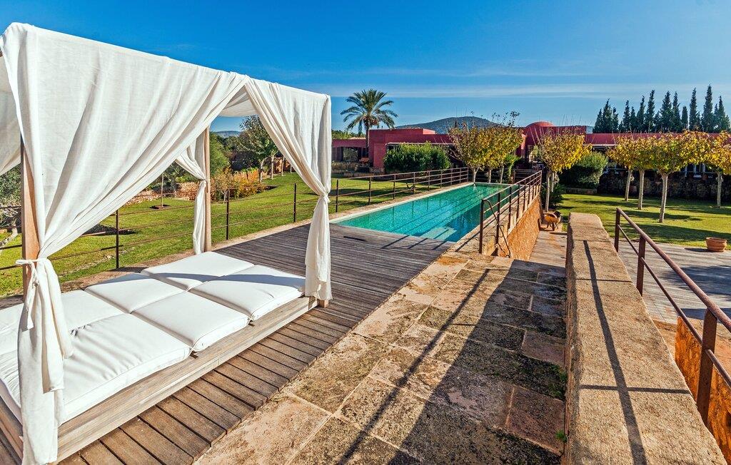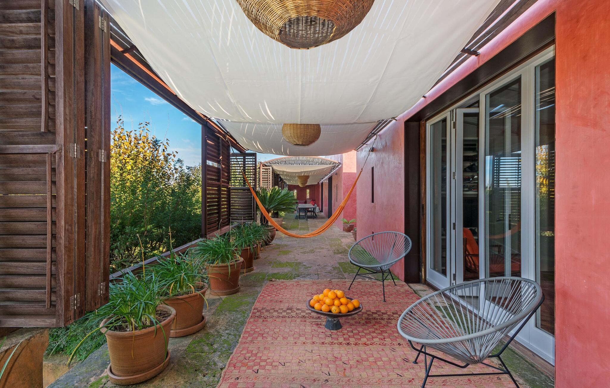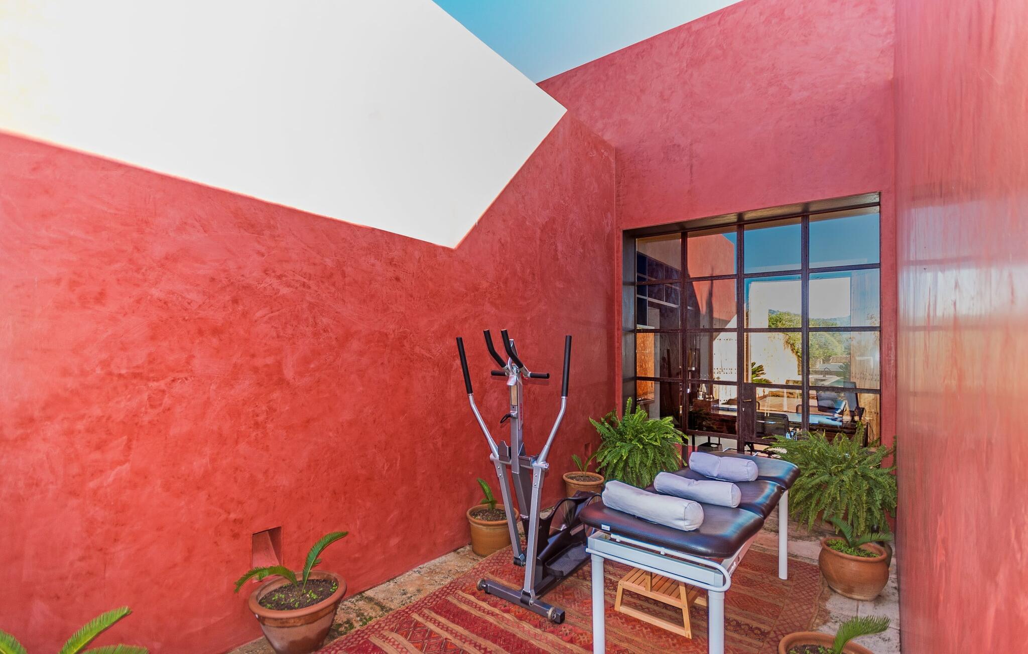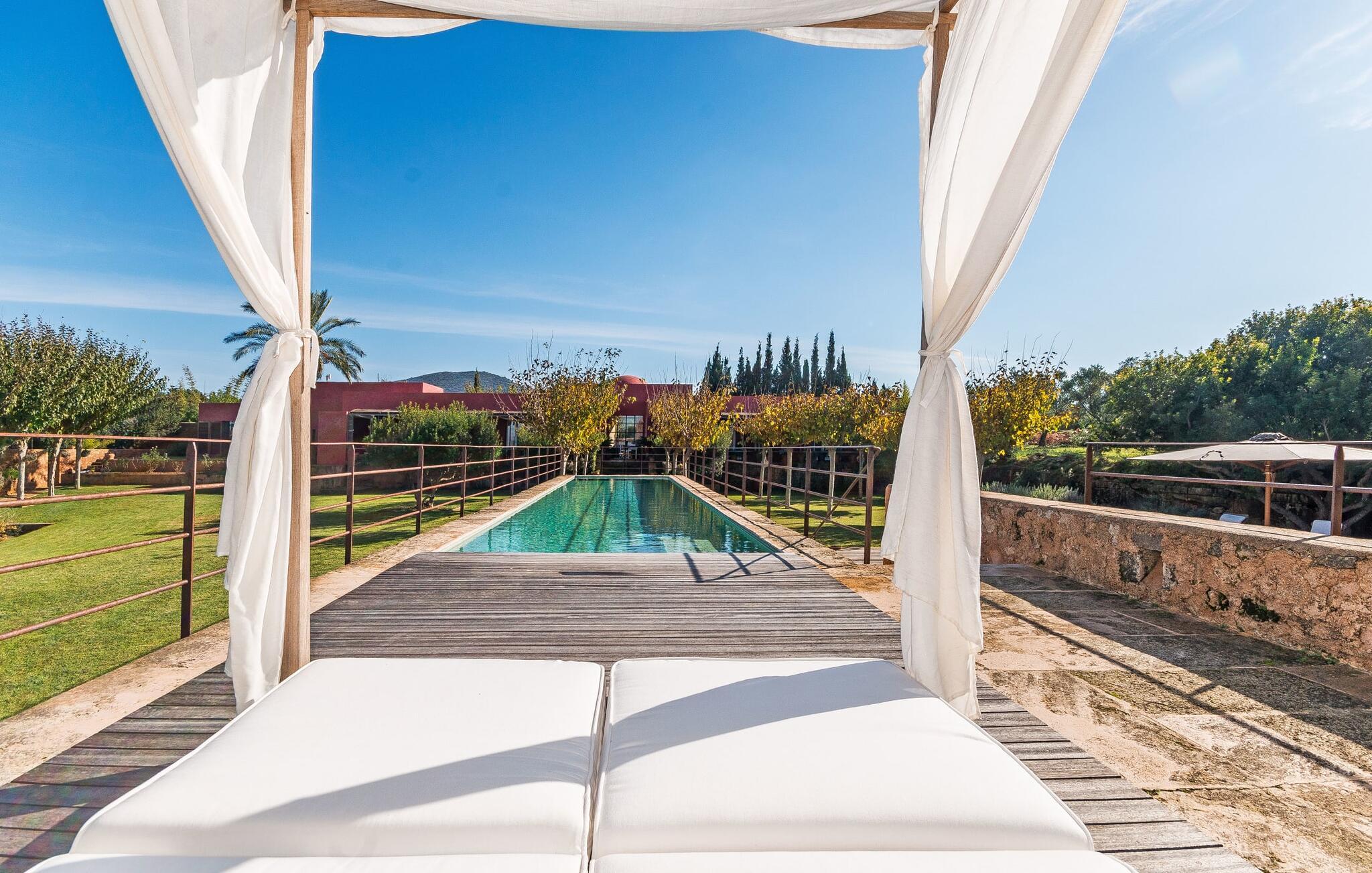Beliggende i Manacors frodige omgivelser byder denne slående, lilla-dekorerede villa "Barranc de Son Cifre" jer velkommen via en cypres-foret asfaltindkørsel. Den maurisk-inspirerede tidligere landejendom er blevet elegant renoveret og tilbyder en levende kontrast til dens grønne kulisse. En carport giver plads til op til tre køretøjer. Ejendommen har en unik swimmingpool, kreativt redesignet fra et tidligere vandreservoir, der tilbyder et forfriskende tilflugtssted efter solbadning. Afsondrede siddepladser, ofte ledsaget af rolige vandelementer, skaber rolige wellness-oaser, perfekt til en skyggefuld siesta. En udendørs sauna inviterer jer til at slappe af, og en Weber-grill er til rådighed til hyggelige grillaftener. Indvendigt blander det rene, strukturerede interiør moderne designelementer med retro- og træaccenter og har en pejs, stilfulde lysarmaturer og antikke møbler. Der er fire komfortable gæsteværelser, hver med eget badeværelse og rummelige dobbeltsenge. Den luftige stue, studiet og det stilfulde tekøkken er forbundet med udendørsarealet gennem store glasfronter, hvilket giver mulighed for problemfri indendørs-udendørs ophold. Den lille spisestue inviterer til en snak, mens den vindbeskyttede terrasselounge fungerer som et hyggeligt mødested. "Barranc de Son Cifre" er en luksuriøs spa-ejendom mellem byen og havet. Det travle centrum af Manacor, med et dagligt marked og en togforbindelse til Palma, ligger kun omkring 12 km væk. På kun 15 minutter i bil kan I nå stranden i Son Serra de Marina med Colònia de Sant Pere og vandreområdet omkring Betlem på den ene side og Can Picafort på den anden.