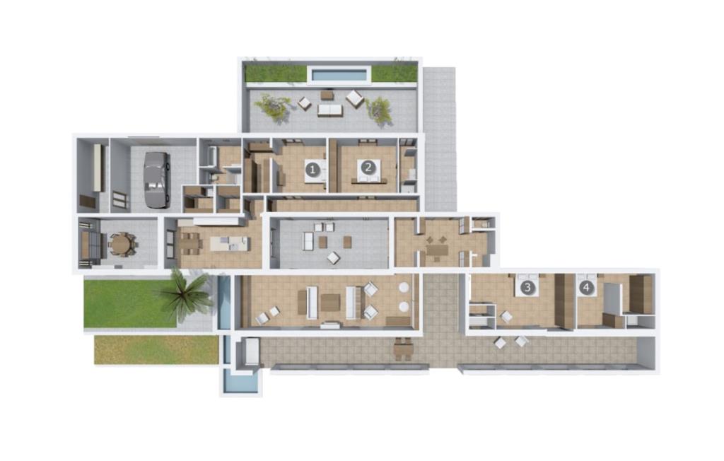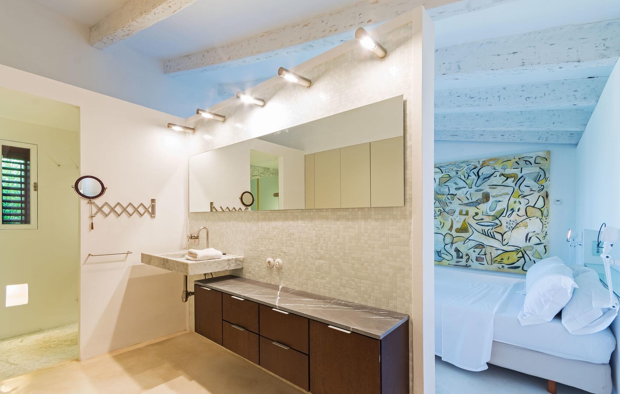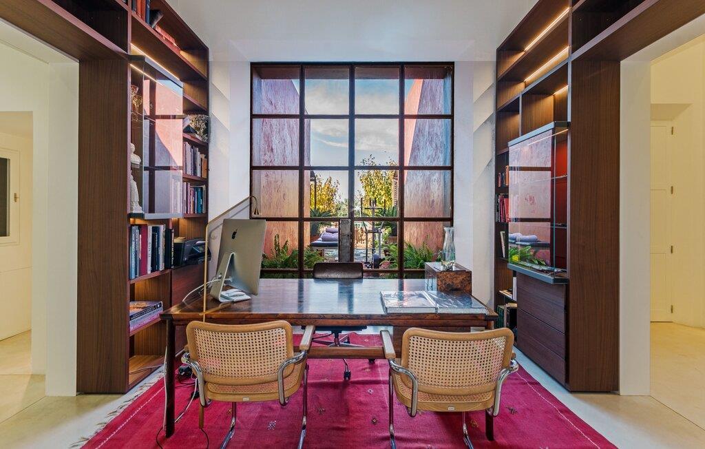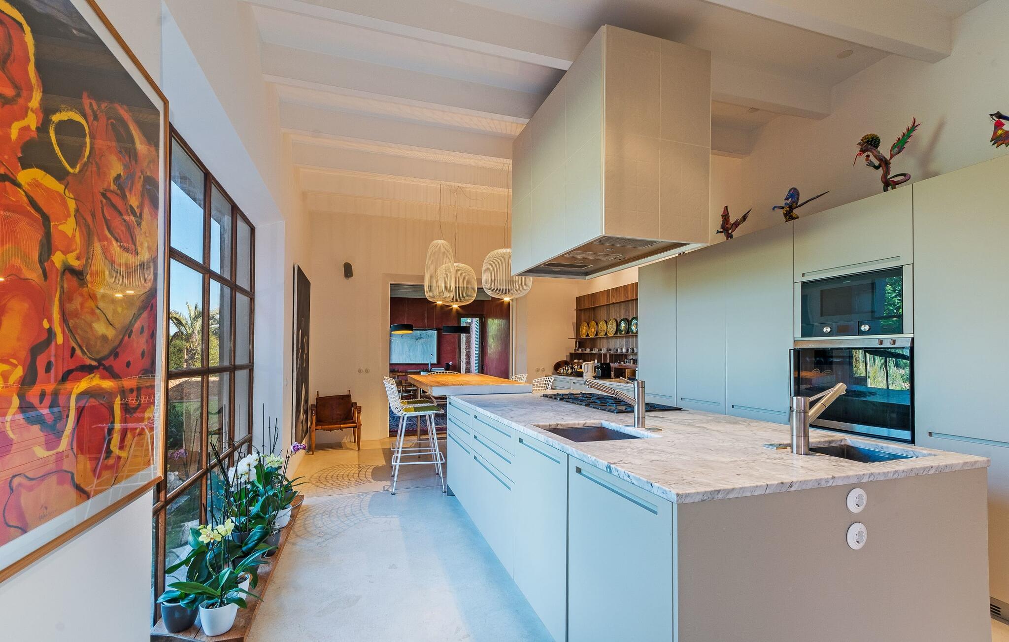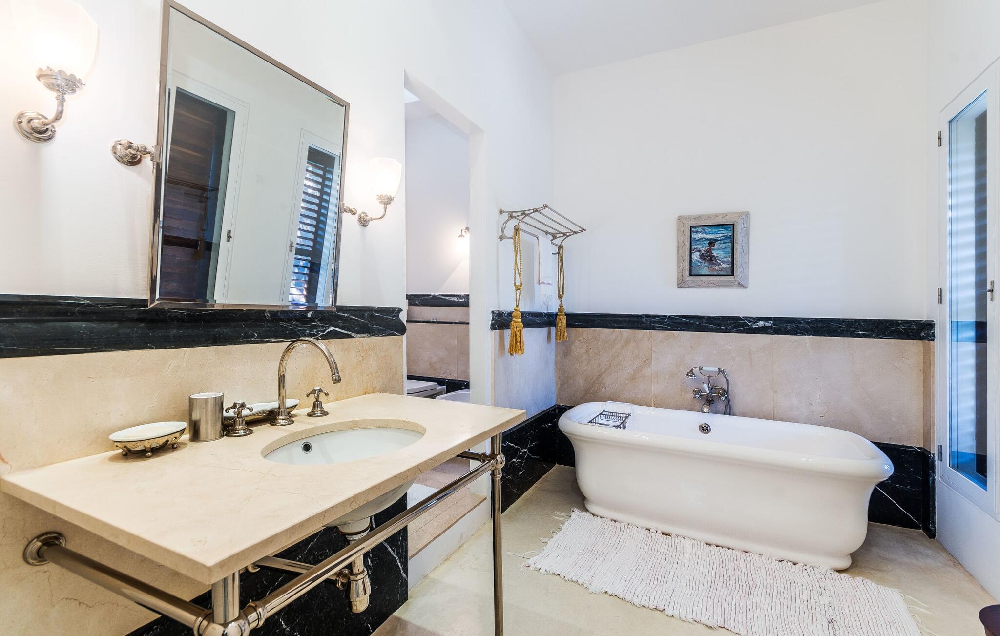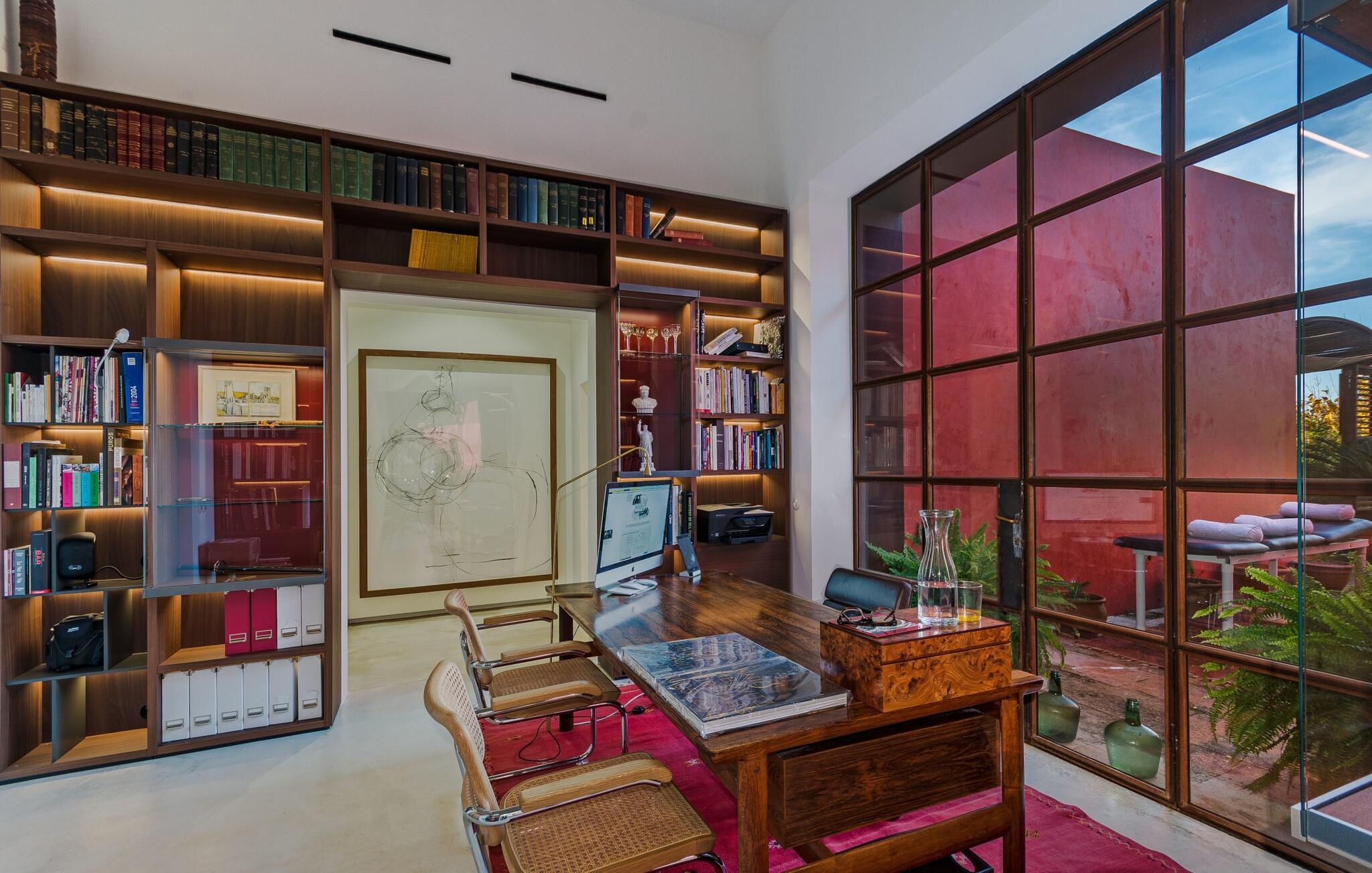 Beliggende i Manacors frodige omgivelser byder denne slående, lilla-dekorerede villa "Barranc de Son Cifre" jer velkommen via en cypres-foret asfaltindkørsel. Den maurisk-inspirerede tidligere landejendom er blevet elegant renoveret og tilbyder en levende kontrast til dens grønne kulisse. En carport giver plads til op til tre køretøjer. Ejendommen har en unik swimmingpool, kreativt redesignet fra et tidligere vandreservoir, der tilbyder et forfriskende tilflugtssted efter solbadning. Afsondrede siddepladser, ofte ledsaget af rolige vandelementer, skaber rolige wellness-oaser, perfekt til en skyggefuld siesta. En udendørs sauna inviterer jer til at slappe af, og en Weber-grill er til rådighed til hyggelige grillaftener. Indvendigt blander det rene, strukturerede interiør moderne designelementer med retro- og træaccenter og har en pejs, stilfulde lysarmaturer og antikke møbler. Der er fire komfortable gæsteværelser, hver med eget badeværelse og rummelige dobbeltsenge. Den luftige stue, studiet og det stilfulde tekøkken er forbundet med udendørsarealet gennem store glasfronter, hvilket giver mulighed for problemfri indendørs-udendørs ophold. Den lille spisestue inviterer til en snak, mens den vindbeskyttede terrasselounge fungerer som et hyggeligt mødested. "Barranc de Son Cifre" er en luksuriøs spa-ejendom mellem byen og havet. Det travle centrum af Manacor, med et dagligt marked og en togforbindelse til Palma, ligger kun omkring 12 km væk. På kun 15 minutter i bil kan I nå stranden i Son Serra de Marina med Colònia de Sant Pere og vandreområdet omkring Betlem på den ene side og Can Picafort på den anden.