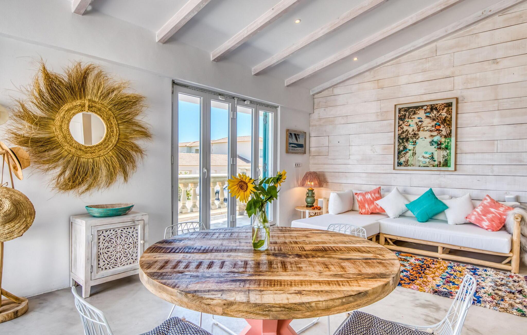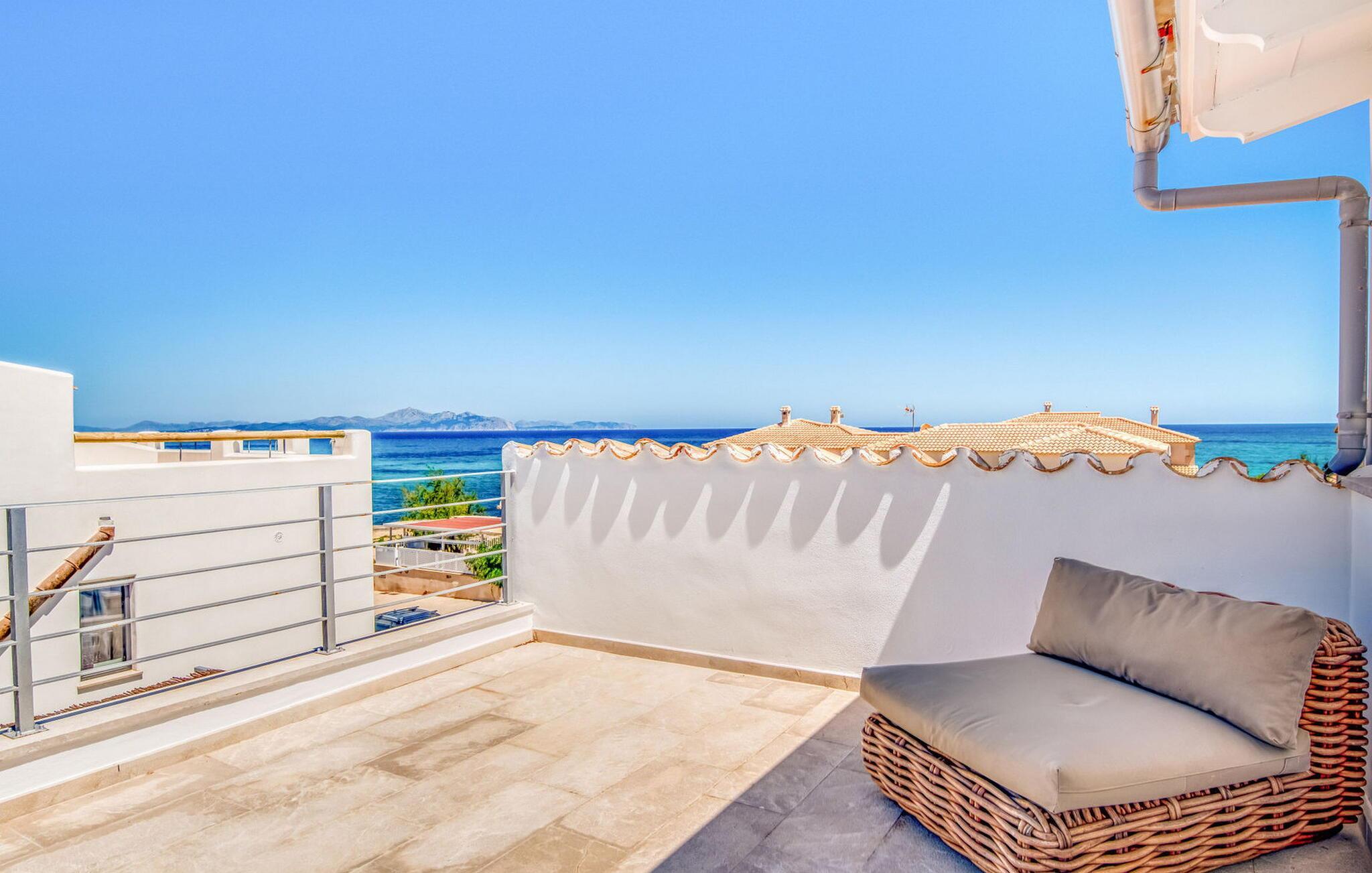 Strandhuset er virkelig nemt at finde - du kan opdage det i vores video, som giver et glimrende indtryk af den vidunderlige beliggenhed. Det hvide strandhus med de turkise skodder emmer af charme i det rolige villakvarter. Ikke desto mindre passer dette to-etagers hus med en høj anerkendelsesværdi vidunderligt ind i dette område af den rolige by lige ved kysten. På forsiden af huset er der en ovenpå veranda, der fortsætter langs højre side af bygningen. På verandaen er der et rustikt, vintage-lignende spisebord med lange bænke - et førsteklasses sted at nyde hvert måltid med en blid, salt havbrise. Da der også er en simpel grill her, er det et glimrende sted at slappe af. Bambustaget giver skygge fra de intense solstråler, mens den udendørs bruser sørger for afkøling af og til. Hvis en anden i din gruppe spørger dig, hvad du vil lave i dag, kan du trygt sige: "Hvis jeg ikke er her, vil jeg være på soldækket Ovenpå tagterrassen byder på to liggestole og en fantastisk udsigt over." azurblå hav, hvorfor du virkelig kan undvære en pool her. Det utroligt kølige og behageligt lyse indtryk, man får udenfor, findes også indenfor. Uden at overdrive kan man sagtens sige, at "Beach House" simpelthen er perfekt. En trendy hvid stil venter os ikke kun på væggene og loftsbjælkerne i træ og i den ekstremt yndefulde indretning, men også i gulvbelægningens cool industrielle look. En maritim flair svæver gennem terrasseskydedørene i fuld længde, der åbner ud til terrasserne, og byder dig velkommen i en lysfyldt, munter atmosfære. Dørene fører direkte ind i husets hjerte – et kombineret opholds-, spise- og køkkenalrum. Det delikate ovale designerbord med hvide stole danner rummets centrum. Den nutidige maritime karakter afspejles i de smagfulde collager i storformat på væggene. Det fuldt udstyrede køkken kombinerer dygtigt hvide møbler med rustfrit stål. Pejsen giver ubekymret komfort på køligere dage og sørger udover gulvvarmen for, at denne drømmebolig kan bruges hele året rundt. Slap af på bambussofaen eller daybeden placeret ud for gangen til soveværelserne. Soveværelserne er behageligt kompakte og perfekt proportionerede. De smarte badeværelser er svære at slå med brusekabiner og glaspartier af høj kvalitet og et super afslappet betonlook. Måske er de kronet af master bedroom, der ligger på øverste etage og med tagadgang. Den lille kystby Son Serra de Marina har kun omkring 1.000 indbyggere, hvoraf de fleste bor i enfamiliehuse. Alt hvad du behøver til hverdagen er tilgængeligt i byen. Der er også et par restauranter, og glem ikke El Sol, den afslappede strandbar lige ved vandet. Det er et fantastisk sted at se kitesurfere og windsurfere i aktion. Dette er et perfekt feriested for strandelskere og vandsportsfans, såvel som for dem, der kan lide at tilbringe tid i det fri væk fra masseturismen. Ikke desto mindre byder den 16 km lange kystlinje i Alcúdia-bugten på nok variation for enhver smag: smukke strande, gode shoppingmuligheder i Alcúdia, historiske bygninger, naturparker og meget mere, alt sammen i den smukke østlige del af øen. Her i "Beach House" er du meget tæt på det autentiske Mallorca - og kan slappe af her året rundt. Velkommen til drømmehuset "Beach House", som kan bruges hele året rundt, i den smukke kystby Son Serra de Marina. Resortet ligger ved Alcúdia-bugten og tilbyder sine besøgende alle deres daglige behov, alt inden for gåafstand. Det omkringliggende landskab byder på smukke udflugtsmål; fx middelalderbyen Artà, hvor et farverigt ugentligt marked finder sted om tirsdagen. Kun få meter adskiller dig fra vandet, og der er masser af det i den 16 km lange bugt. Dette er et Fincallorca feriehus.