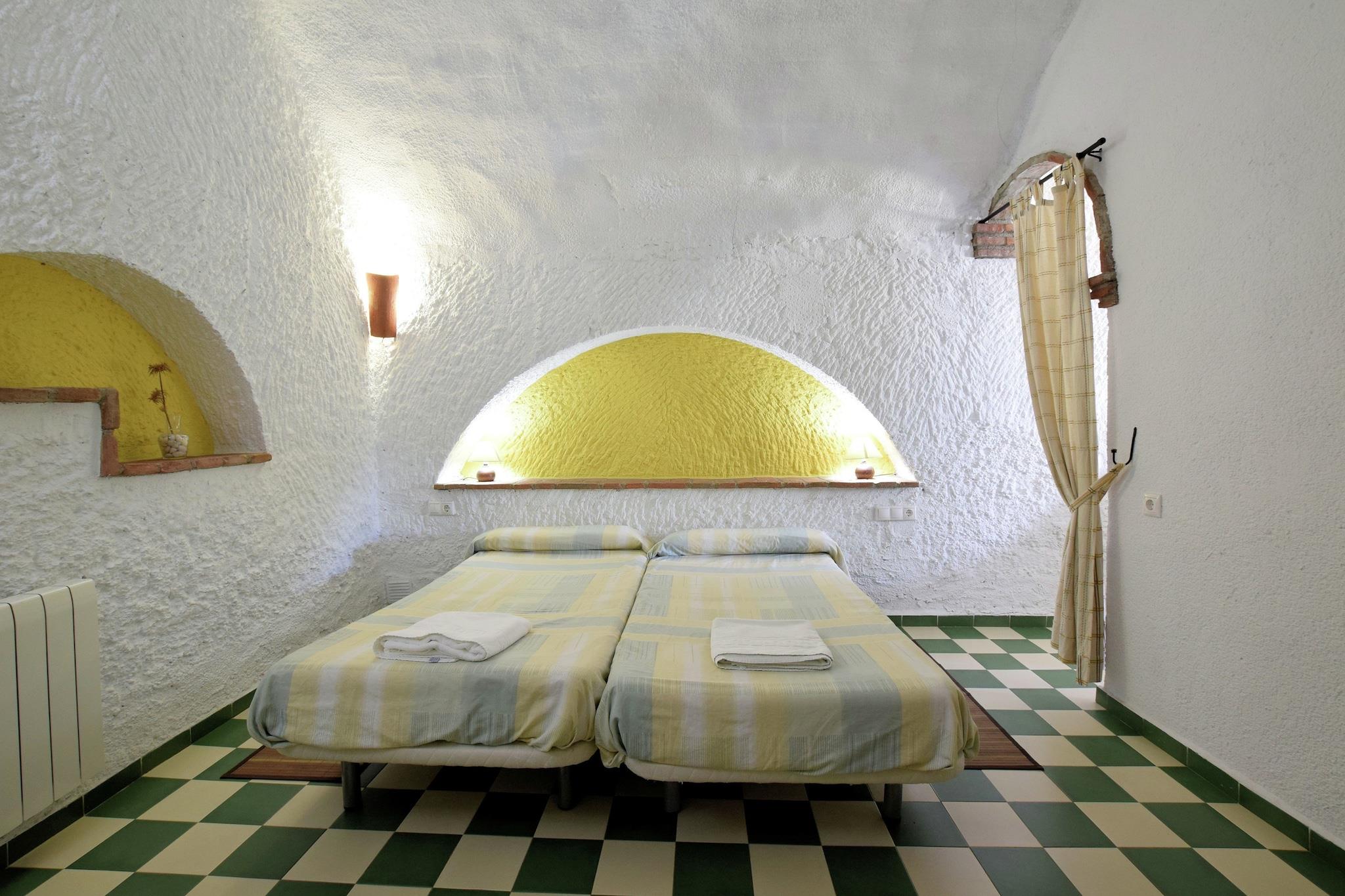 I Guadix-regionen i Andalusien i Spanien kan dette grottehus med plads til 4 gæster have 2 dejlige soveværelser. Det er velegnet til en lille familie eller til par, der ønsker at feriere sammen. Du kan gå på vandreture og cykleudflugter på mountainbikes til nærliggende områder. De nærliggende steder at besøge er Granada, Alhambra, Sierra Nevada og strendene i Almería. Kendt som Hammam Caves Abuelo José, har det 9 huler. Hulerne er lavet af jord og har varmeisolering. Parken har en swimmingpool og en grillzone. Der findes arabiske bade. Bycentrum og generelle forsyninger er 1 km væk; restauranter og natteliv er 3 km væk. Den nærmeste større lufthavn er Málaga lufthavn, der ligger i en afstand af 70 KM. Der er maksimalt tilladt 1 kæledyr mod et gebyr på 20 EURO for opholdet.