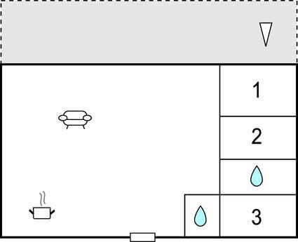 Badeværelse 6m2 (nr. 1) - WC. Varmt og koldt vand. Bruser