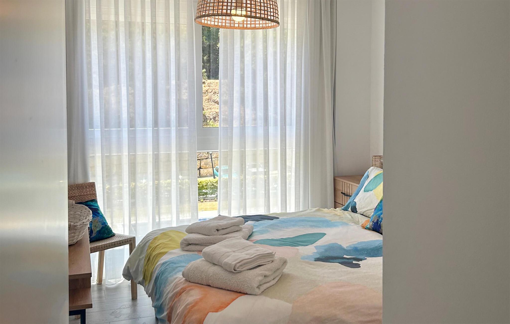 I har også adgang til poolen, som byder på sjov for store og små og lægger op til solbadning i det græsklædte fællesareal. Lejligheden er den optimale destination for alle, der ønsker at være i gåafstand til restauranter, barer, butikker mv. Byen er kendt for sin gastronomi, og turister kommer fra hele verden for at prøve det spanske køkken.