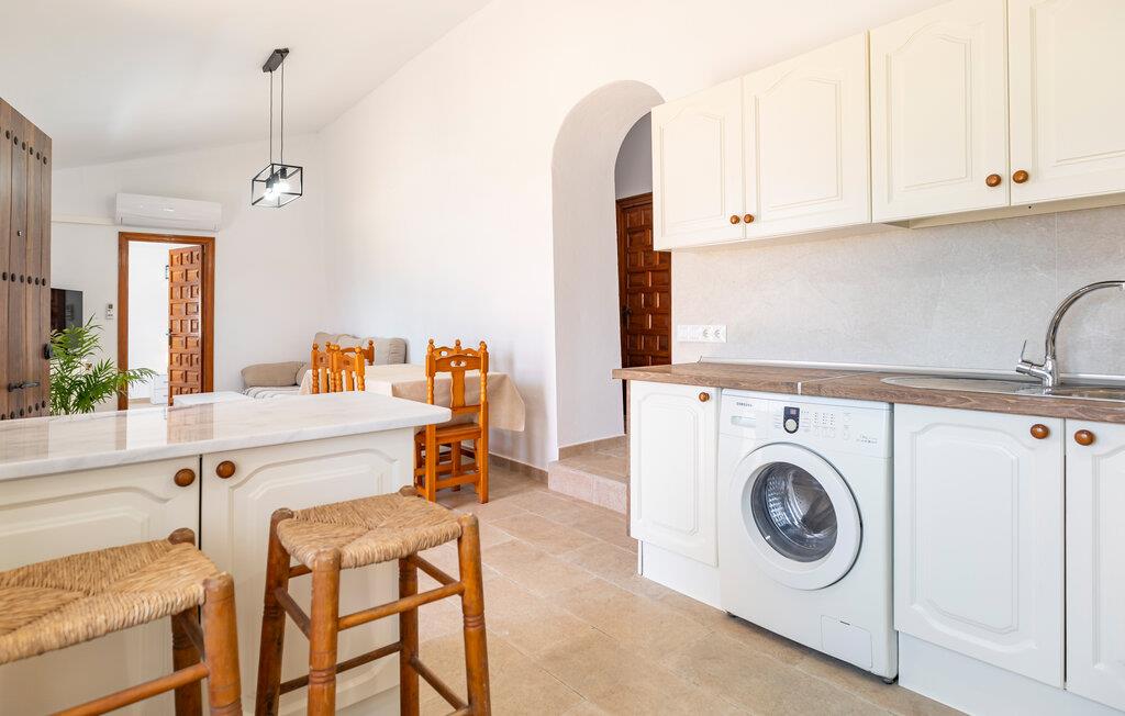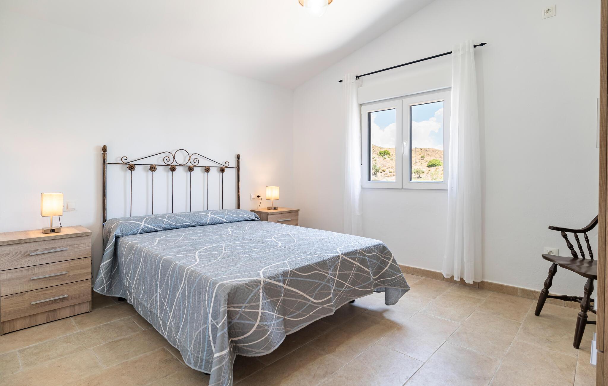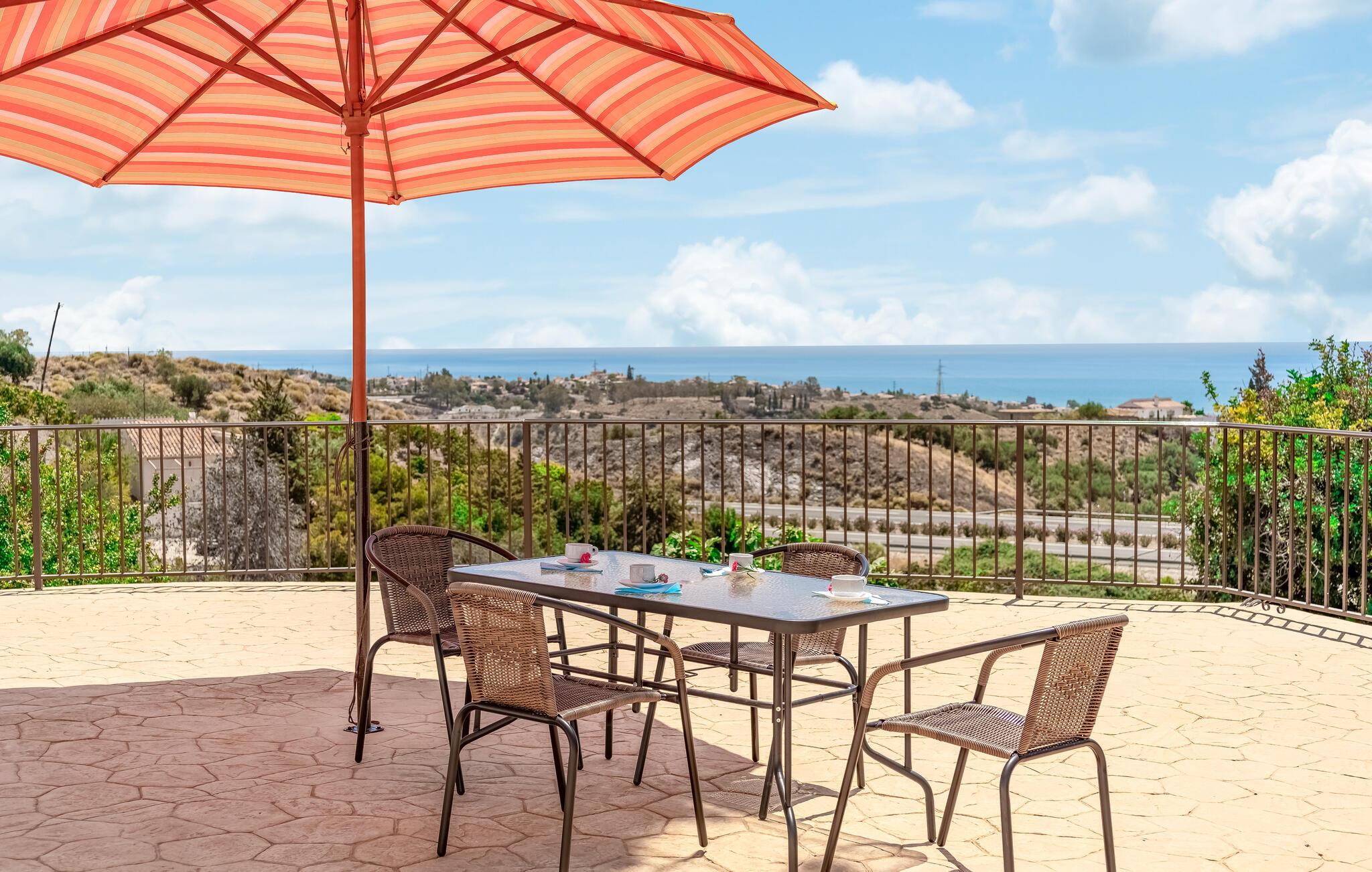 Oplev dette idylliske feriehus, der giver jer en perfekt blanding af komfort og hygge. Det smagfulde interiør udstråler en indbydende atmosfære, mens den store terrasse med havudsigt lægger op til at nyde livet og have det rart. Nyd panoramaudsigten over det glitrende hav, mens I slapper af ved poolen i den beskyttede have eller nyder et lækkert måltid på den overdækkede terrasse. Dette hus giver jer en privat oase, optimal til afslappende dage under den andalusiske sol.