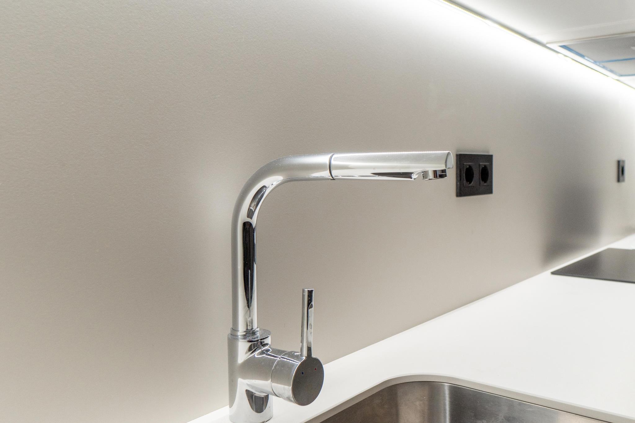 På 1. etage: (åbent køkken(brødrister, komfur, kaffemaskine, ovn, mikrobølgeovn, opvaskemaskine , køle-fryseskab, Saftpresser), Stue/soveværelse(dobbeltsovesofa, Fjernsyn, spisebord, sofahjørne, gaspejs), soveværelse(enkeltseng, enkeltseng, enkeltseng), Soveværelse med badeværelse(dobbeltseng, bruser, håndvask, toilet), badeværelse(håndvask, toilet), bruser, bruser, vaskemaskine, vaskemaskine)