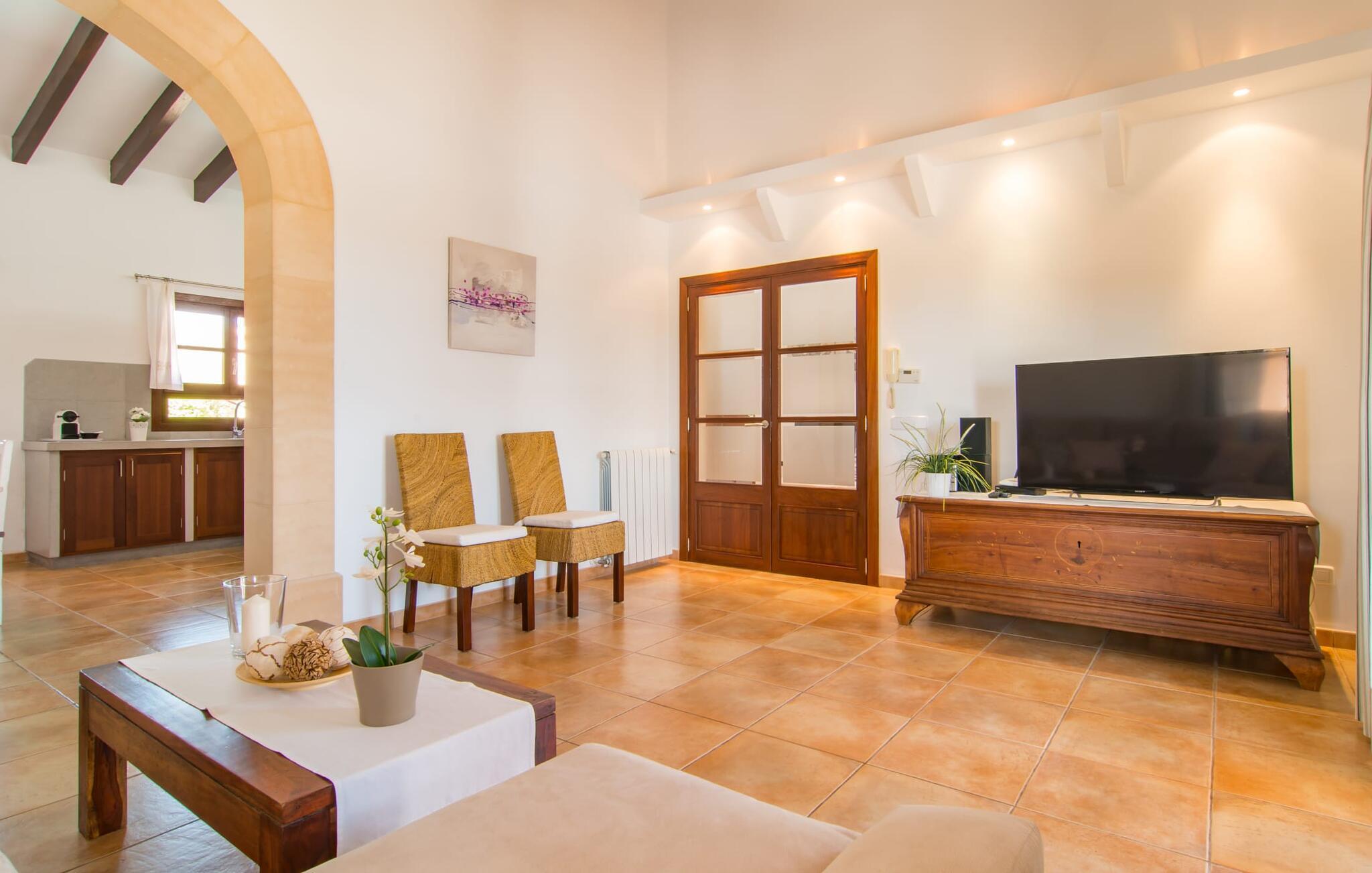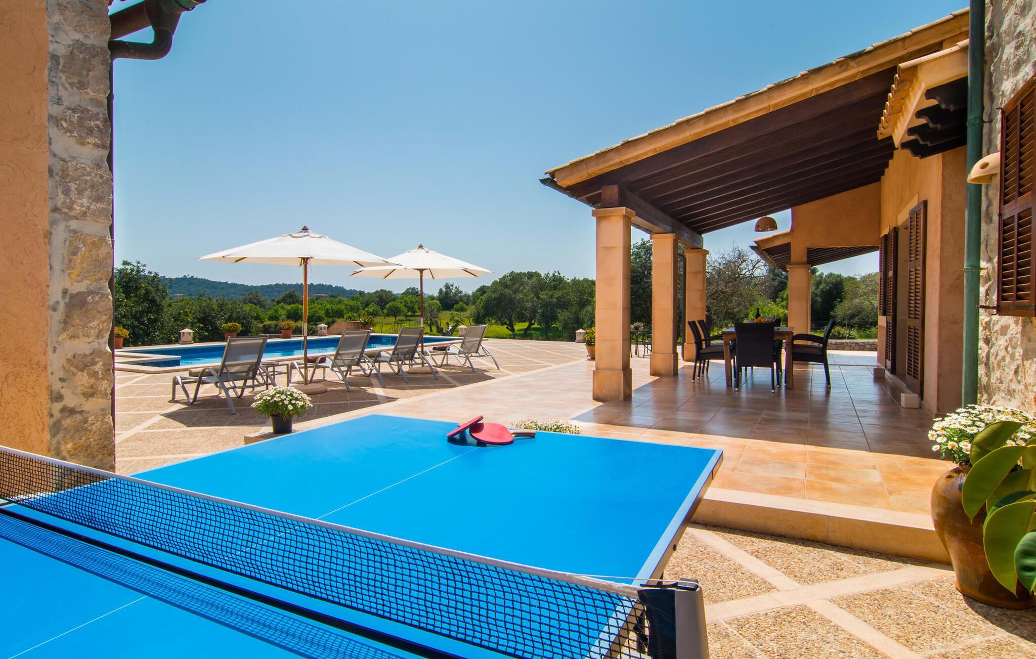Villa "Benet" er en fantastisk blanding af rustik charme og moderne komfort i en smuk beliggenhed nær Artà. Med en traditionel stenkonstruktion og imponerende uderum er den perfekt til en gruppeferie med venner eller familie. Dette er et feriehus i Fincallorca. Den rummelige overdækkede terrasse byder på skygge og læ, mens poolområdet med solterrasse, talrige siddepladser og udekøkken inviterer dig til at slappe af og have det sjovt. Nyd dine måltider ved det store spisebord eller tilbered en grill med friske lokale råvarer. For mere aktive øjeblikke kan du prøve bordtennisbordet eller blot slappe af på liggestolene. Indenfor udstråler villaen varme og karakter med en blanding af mørke træmøbler i antik stil, hvidkalkede vægge og synlige træbjælker. Den åbne stue fører til et fuldt udstyret køkken med moderne bekvemmeligheder. De tre soveværelser, to med enkeltsenge og et med dobbeltseng, er designet til komfort og privatliv. Badeværelserne, med elegante hvide og grå fliser, har badekar og/eller bruser. Omgivet af frodige grønne områder og med udsigt over Llevant-bjergene tilbyder Villa "Benet" både privatliv og en spektakulær udsigt, der garanterer et uforglemmeligt ophold. Den absolut moderne, fremragende villa ligger i en fabelagtig, afsondret beliggenhed mellem det dejlige samfund Artà og kystbyen Capdepera. Skulle du have brug for at shoppe, kan både Artà og Capdepera samt Cala Rajada nås hurtigt og nemt. På få minutter kan du nå fantastiske strande som Platja de Son Mol og Cala Agulla, samt helt naturlige strande som Cala Mesquida.