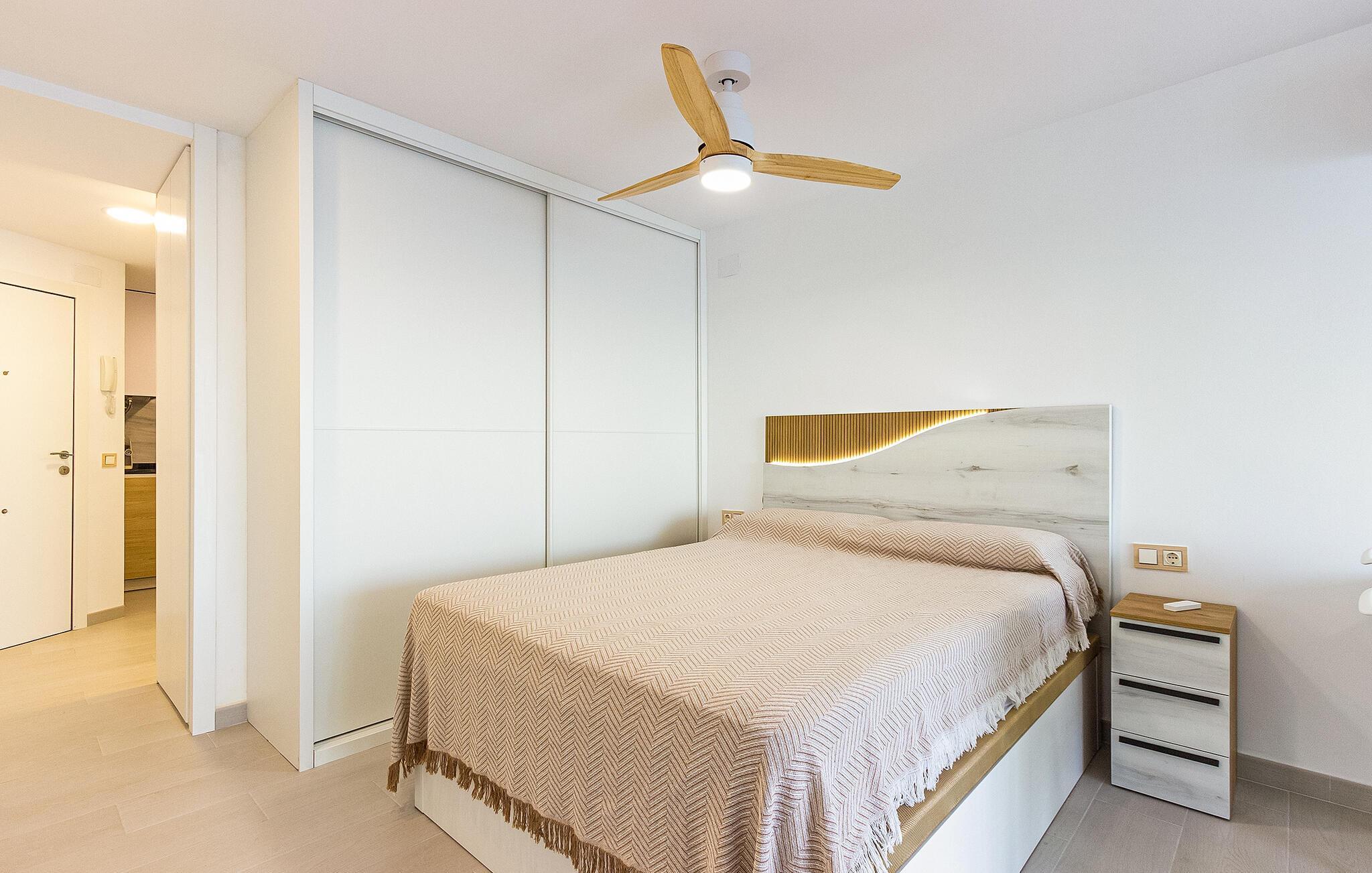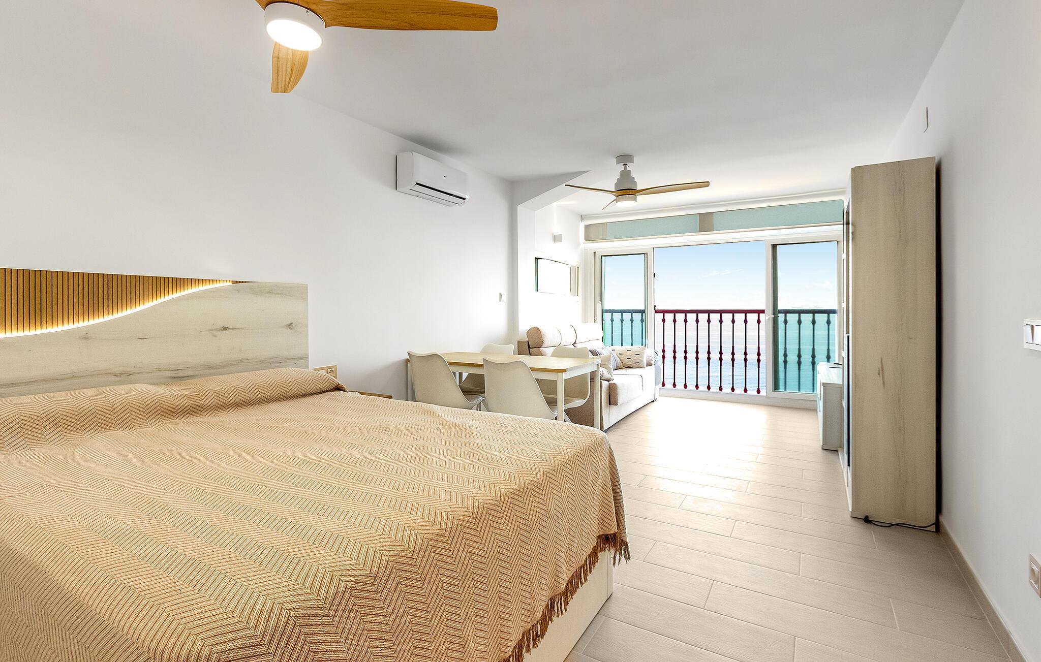 Den lyse og smagfuldt indrettede lejlighed emmer af stemning og en afslappende atmosfære. Boligen er indrettet i creme- og hvide farver, der giver den et dejligt, varmt udtryk, hvor I med det samme vil føle jer hjemme. Når I slår glasskydedørene op i stuen, venter jer en vidunderlig, panoramisk havudsigt. Efter morgenmaden kan I hoppe i den fælles pool, men hvis I vil dyppe jer i det friske havvand, skal I bare gå de få skridt til stranden.