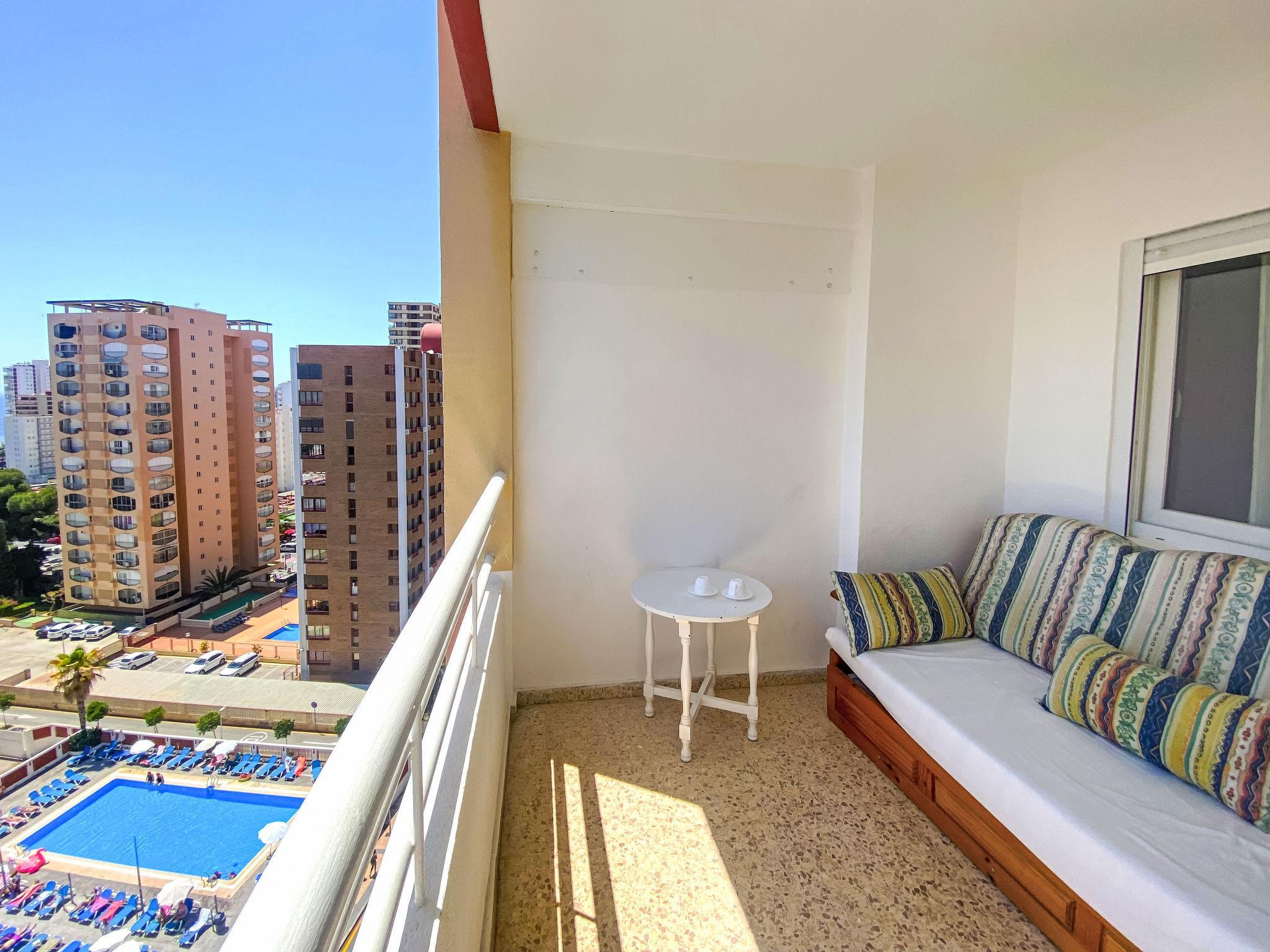 Playa Levante: Apartment block "Amsterdam", 14 storeys. In the district Rincon de loix, in a busy, sunny position on a slope, 800 m from the sea, 800 m from the beach. For shared use: property (fenced), swimming pool (12 x 6 m, depth 120 - 180 cm, seasonal availability: 15.Jun. - 30.Sep.). In the complex: lift. Public parking. Supermarket 50 m, restaurant 100 m, bus stop "Benidorm" 200 m, railway station "Benidorm" 4 km. Golf course (18 hole) 6 km. Nearby attractions: Aqualandia 2 km, Mundomar 2 km, Benidorm Palace 2 km, Terra Mitica 6 km, Terra Natura 6 km, Alicante 40 km. Please note: baby equipment on request. The owner does not accept any youth groups. Neighbourhood highly sensitive to noise. Quietness and good behaviour expected.
