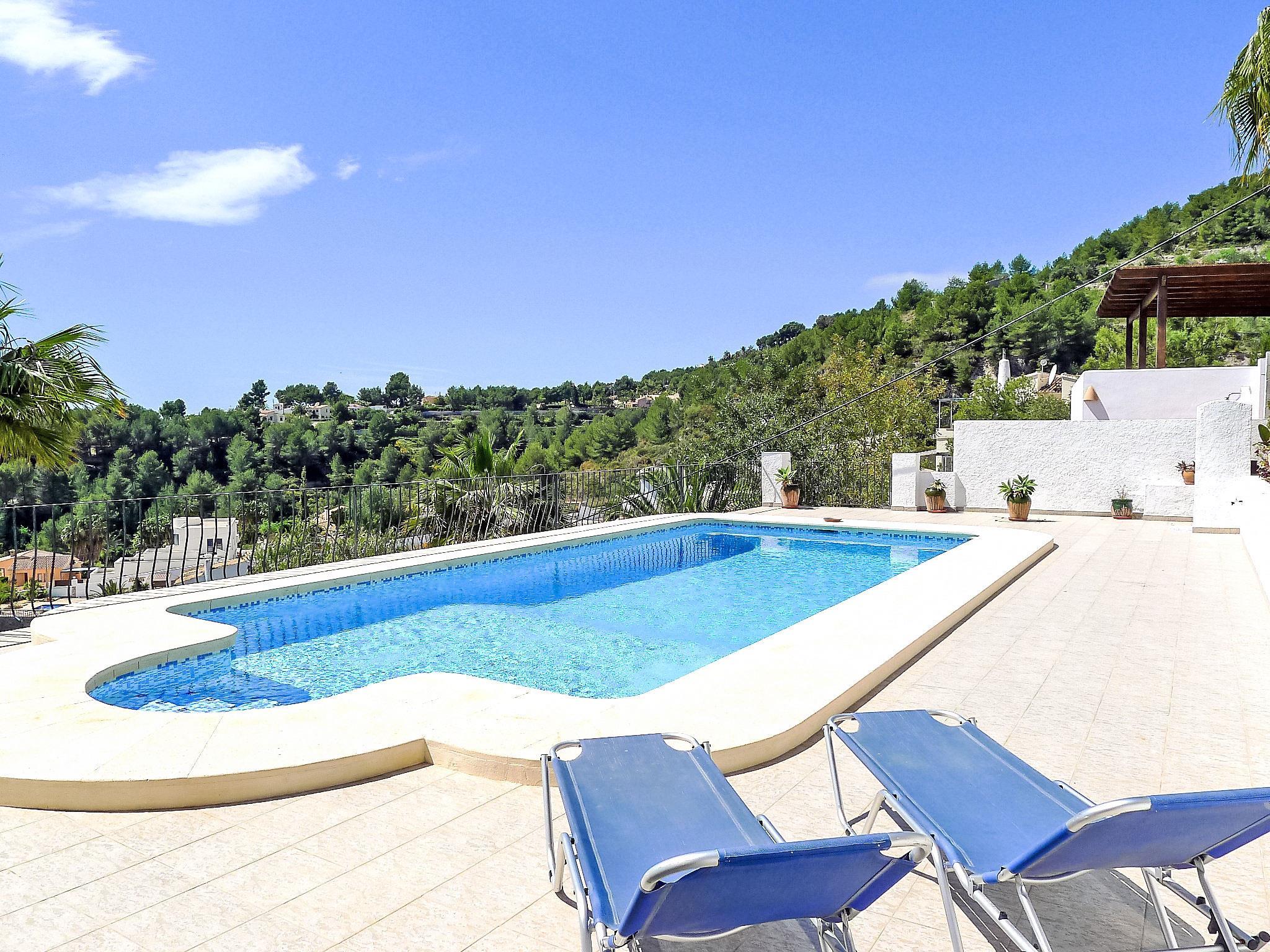 Benissa Costa 12 km from Calpe: Beautiful, cosy house "La Vina". 6.2 km from the centre of Moraira, 11.5 km from the centre of Calpe, in the district La Viña, in a quiet, sunny position residential area (villas), 2.2 km from the sea, 4.8 km from the beach. Private: property 1'135 m2, garden, swimming pool (9 x 4 m, seasonal availability: 01.Jan. - 31.Dec.). Outdoor shower, terrace (83 m2), barbecue. In the house: WiFi, washing machine. Parking (limited number of spaces). Shop 2 km, supermarket 2 km, restaurant 2 km, bus stop 4 km, sandy beach "Playa de la Fustera" 5.4 km, swimming bay 2.2 km. Sports harbour 7.4 km, marina 7.4 km, golf course (9 hole) 9.6 km, surf school 7.4 km, sailing school 7.4 km, tennis 1.3 km. Nearby attractions: Aqualandia, Mundomar, Terra Mítica, Terra Natura, y Benidorm Palace (Benidorm). Hiking paths: Sierra de Bernia 28 Km. Please note: car recommended. Suitable for families, baby equipment on request (extra).