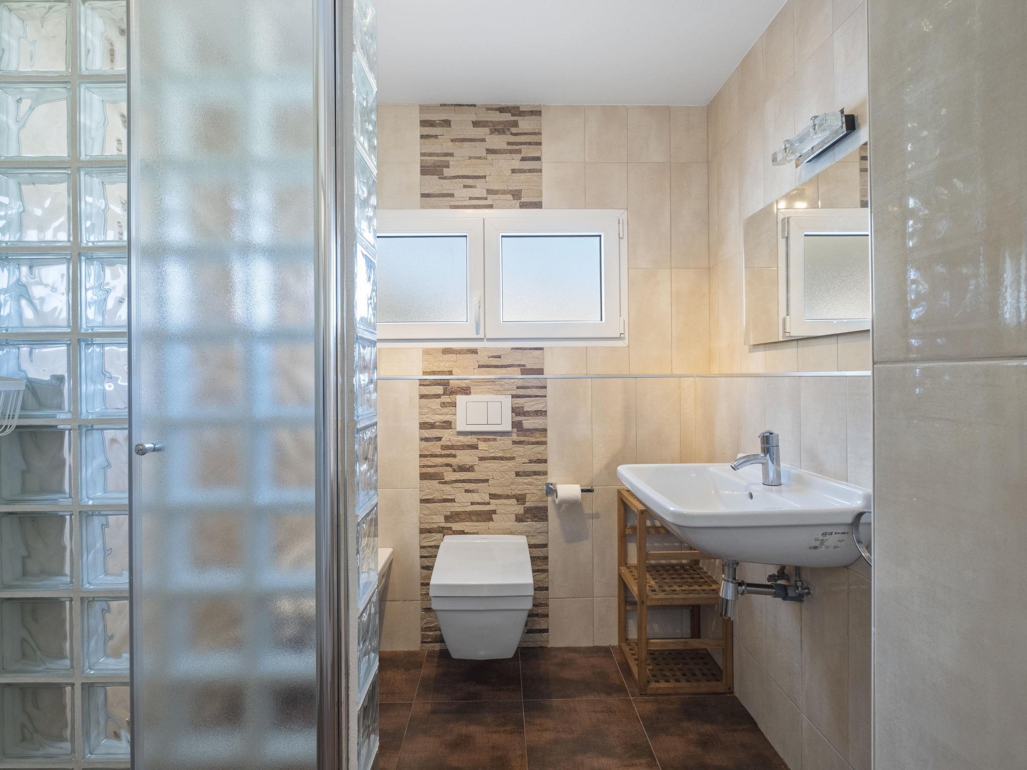 "La Vista", 6-room villa 160 m2 on 2 levels. Spacious and bright, comfortable and beautiful furnishings: open living/dining room with satellite TV, air conditioning and forced-air heating. Exit to the terrace. 1 room with 1 french bed (180 cm, length 200 cm), air conditioning and forced-air heating. 1 room with 1 french bed (150 cm, length 190 cm), air conditioning and forced-air heating. 1 room with 1 french bed (180 cm, length 200 cm), shower/WC, double hand-basin, air conditioning and forced-air heating. Exit to the terrace. Open kitchen (oven, dishwasher, 5 ceramic glass hob hotplates, toaster, kettle, microwave, freezer, electric coffee machine, Capsules for coffee machine (Nespresso) extra). Exit to the terrace. Shower/bidet/WC. On the lower ground floor: (exterior staircase) living room with satellite TV, air conditioning and forced-air heating. Exit to the terrace. 1 room with 2 beds (90 cm, length 200 cm), air conditioning and forced-air heating. Small, open kitchen (oven, dishwasher, 3 ceramic glass hob hotplates, freezer, electric coffee machine). Shower/bidet/WC. Large terrace. Terrace furniture, barbecue, deck chairs (6), sitting area. Partial view of the sea and the valley. Facilities: washing machine, iron, children's high chair, baby cot for up to 2 year olds, hair dryer. Internet (WiFi, free). Parking (3 cars) at the house. Please note: suitable for families. Non-smoking house. VT-492147-A // Reg. Nr.: ESFCTU0000030290000925530000000000000CV-VUT0492147-A0