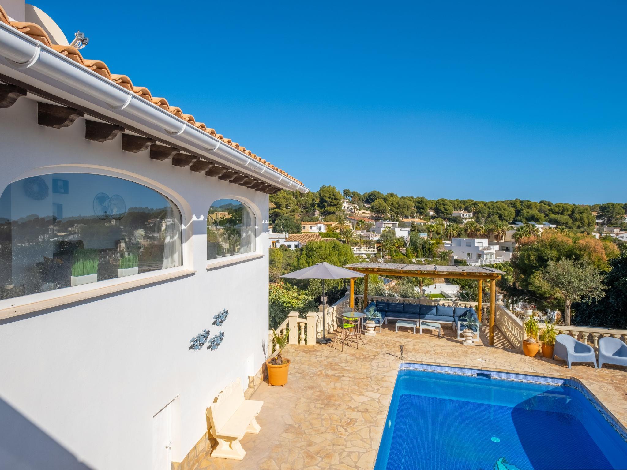 La Fustera: Beautiful, cosy villa "La Vista", 2 storeys. In the resort 5.5 km from the centre of Calpe, 8.5 km from the centre of Benissa, in a quiet, sunny position residential area (villas), 1.2 km from the sea, 1.2 km from the beach. Private: property 1'200 m2 (fenced), garden, swimming pool (8 x 4 m, depth 50 - 210 cm, seasonal availability: 01.Jan. - 31.Dec.) with internal staircase. WC in the pool area, outdoor shower, garden furniture, barbecue, parking (for 3 cars) on the premises. Grocery, supermarket 900 m, restaurant 1.2 km, bar 1.2 km, café 1.2 km, bus stop 1 km, sandy beach "Playa de la Fustera" 1.2 km. Sports harbour 2 km, golf course (9 hole) 7 km. Nearby attractions: Aqualandia, Mundomar, Terra Mítica, Terra Natura, Benidorm Palace (Benidorm), Castillo de Guadalest. The owner does not accept any youth groups.