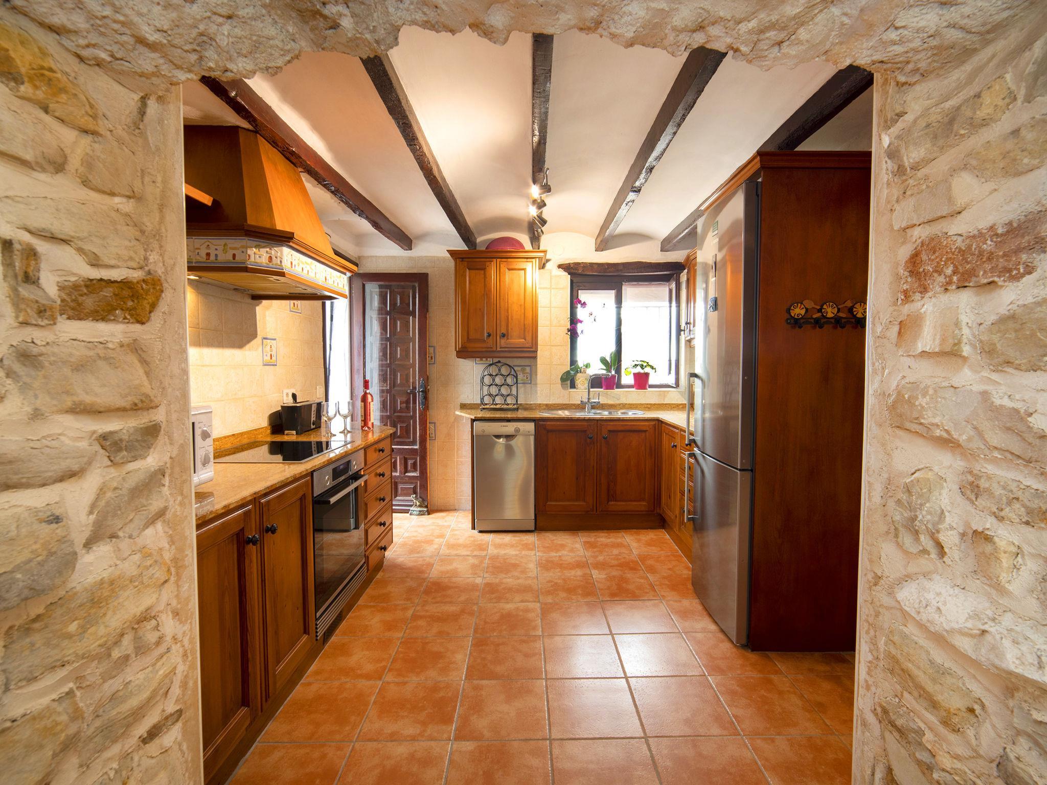 Paratella 2 km from Benissa: Large, beautiful, cosy "rustico" cottage "Los Mulet", 2 storeys. 2 km from the centre of Benissa, 10 km from the centre of Calpe, in the district Paratella, in a quiet, sunny position residential area (villas), 7 km from the sea, 7 km from the beach. Private: garden with trees, swimming pool (11 x 6 m, depth 80 - 160 cm, seasonal availability: 01.Jan. - 31.Dec.). Outdoor shower, arbour, pergola, terrace, barbecue, pool maintenance by the owner/gardener. In the house: hot tub (extra). Parking. Shop 1.4 km, supermarket 1.4 km, restaurant 1.3 km, bar 1.3 km, café 1.3 km, pub garden 1.3 km, bus stop 1.4 km, railway station "Estacion tren Benisa" 2.2 km, sandy beach "Playa de l´Ampolla" 8 km. Sports harbour 8.4 km, marina 8.4 km, golf course (9 hole) 6 km, sailing school 8.4 km. Nearby attractions: Aqualandia, Mundomar, Terra Mítica, Terra Natura, Benidorm Palace (Benidorm), Castillo de Guadalest. Please note: suitable for families.