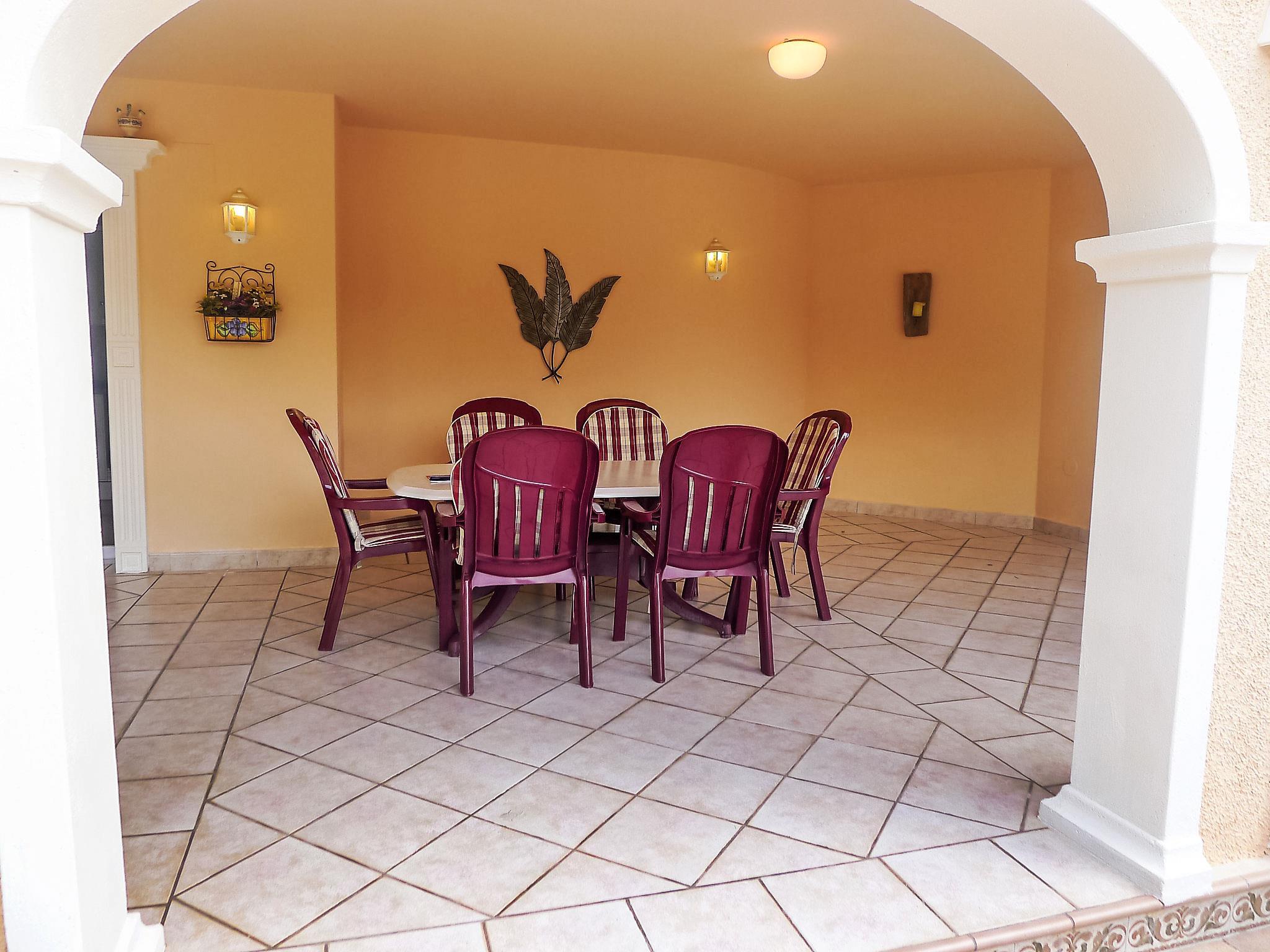 Benissa Costa: Cosy, comfortable single-family house "Calina". 5.7 km from the centre of Moraira, 10.3 km from the centre of Calpe, in the district Buenavista, in a quiet position, 1.8 km from the sea, in a cul-de-sac. Private: property 1'000 m2 (fenced), garden with lawn, swimming pool (seasonal availability: 01.Jan. - 31.Dec.). Unconventional pool shape. WC in the pool area, outdoor shower, patio, garden furniture, barbecue. In the house: WiFi, roof terrace, central heating system, air conditioning, washing machine, tumble dryer. Parking. Supermarket 1.3 km, restaurant 1.3 km, bar 1.3 km, bus stop 2.9 km, sandy beach 5.3 km, swimming bay 1.8 km. Nearby attractions: Aqualandia, Mundomar, Terra Mítica, Terra Natura, y Benidorm Palace (Benidorm). Please note: 1st floor is closed and not occupied. Private garden.