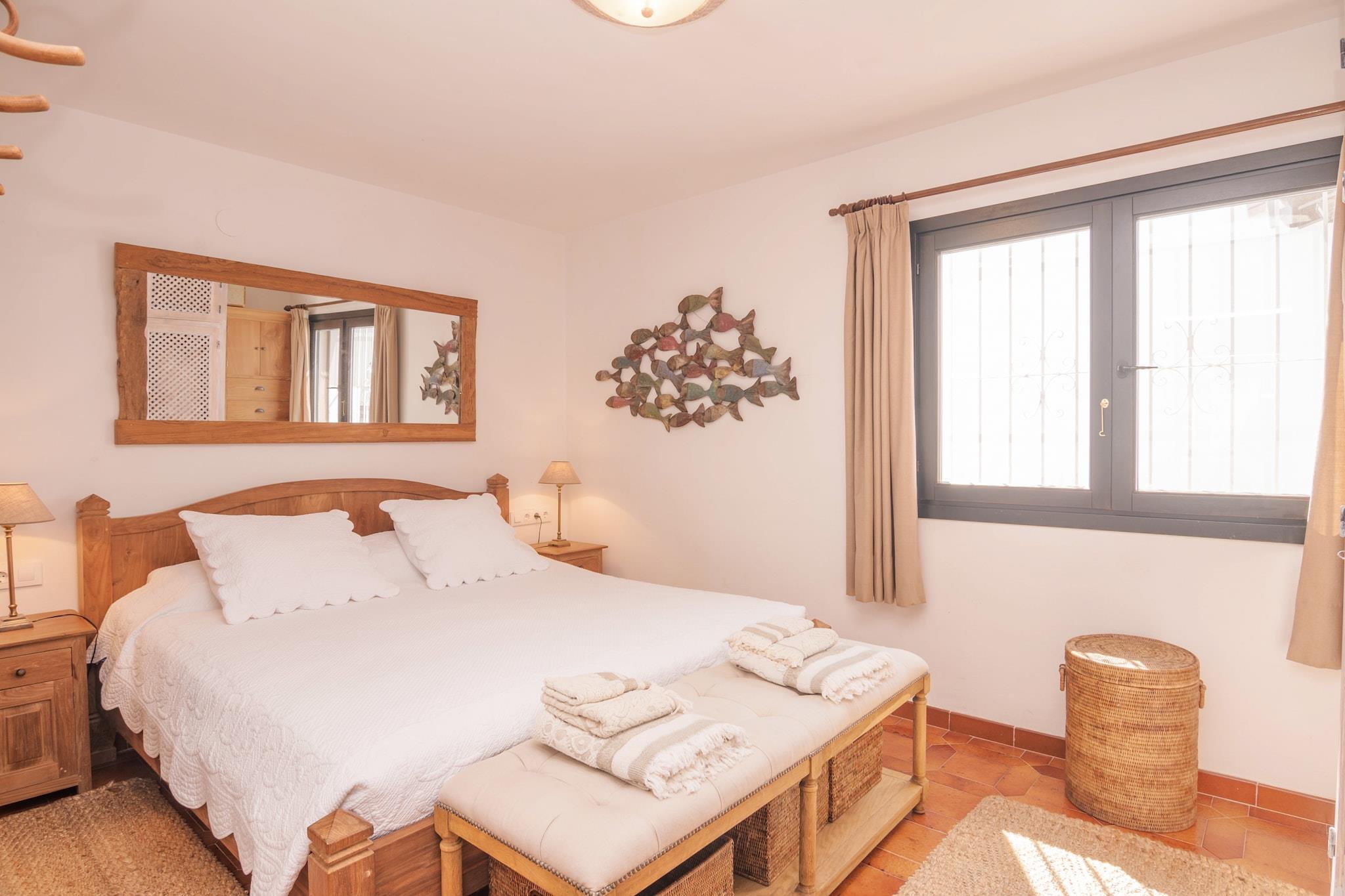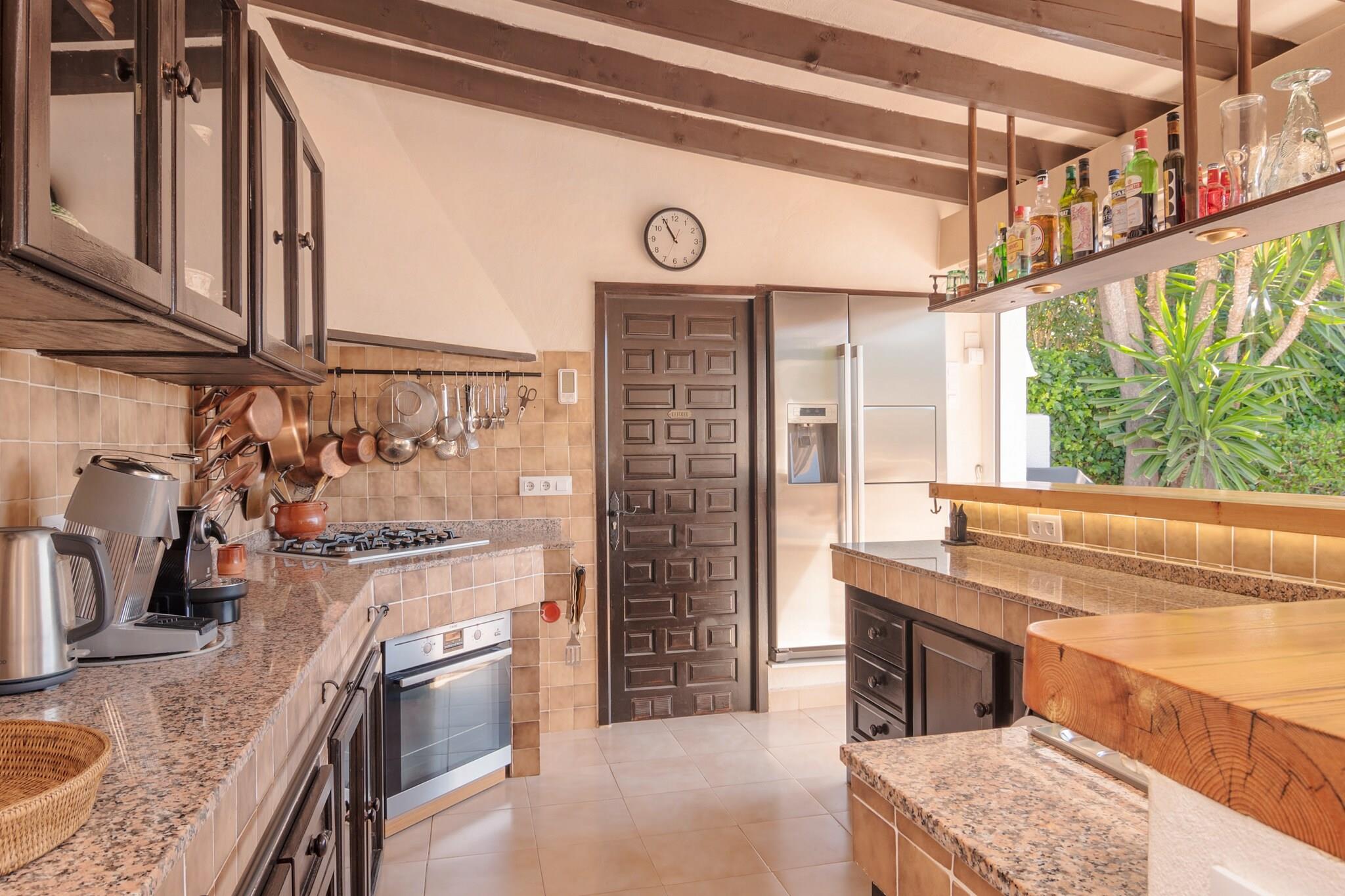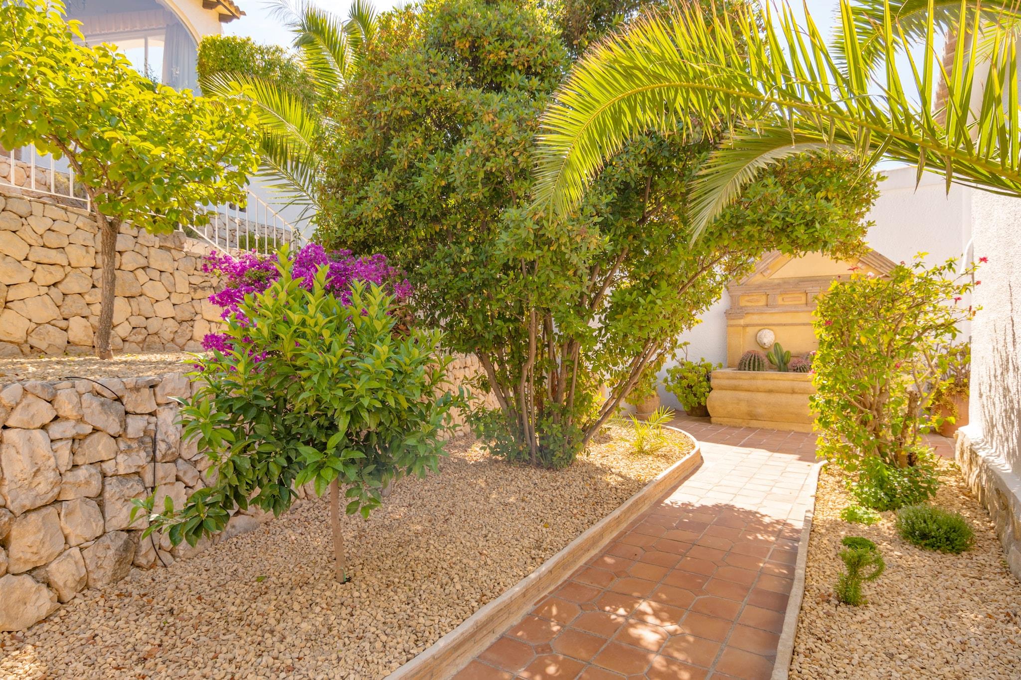 Helt renoveret villa, en af en slags, i en næsten helt privat beliggenhed, i kanten af et roligt og sikkert kvarter. Bare et par minutter i bil fra stranden, nær levende Moraira / Calpe / Benissa og det smukke spanske bagland. En time i bil fra både Valencia og Alicante. Virkelig en top beliggenhed! Villaen er lys, åben og meget rummelig (mere end 260 m2) med en vidunderlig åben veranda på over 100 m2). Bygget i original spansk stil og meget smagfuldt indrettet, både indenfor og udenfor. Velegnet til de ældre, fordi hovedetagen har kun få skridt. Villaen er beliggende i en stor 1500 m2 have. Delvist stenhave, delvist græsplæne, palmer, citruses, smukke bougainvillea og oleander. Ved siden af huset finder du en smuk terrasse med en stor og dyb swimmingpool med belysning, luksuriøst lounge sæt, liggestole og udendørs bruser. Udsigten er smuk og solnedgangen kan virkelig kaldes spektakulær. Den anden delvis overdækkede terrasse har et lounge sæt, et aftensmad og et fantastisk udendørs køkken med grill. Denne terrasse giver den nødvendige afkøling og masser af sjov indtil de dejlige timer. Villaen har et separat pensionat på et lavere niveau, som kan nås ved hjælp af Villaen har også et separat vaskerum med vaskemaskine, tørretumbler og strygefaciliteter.