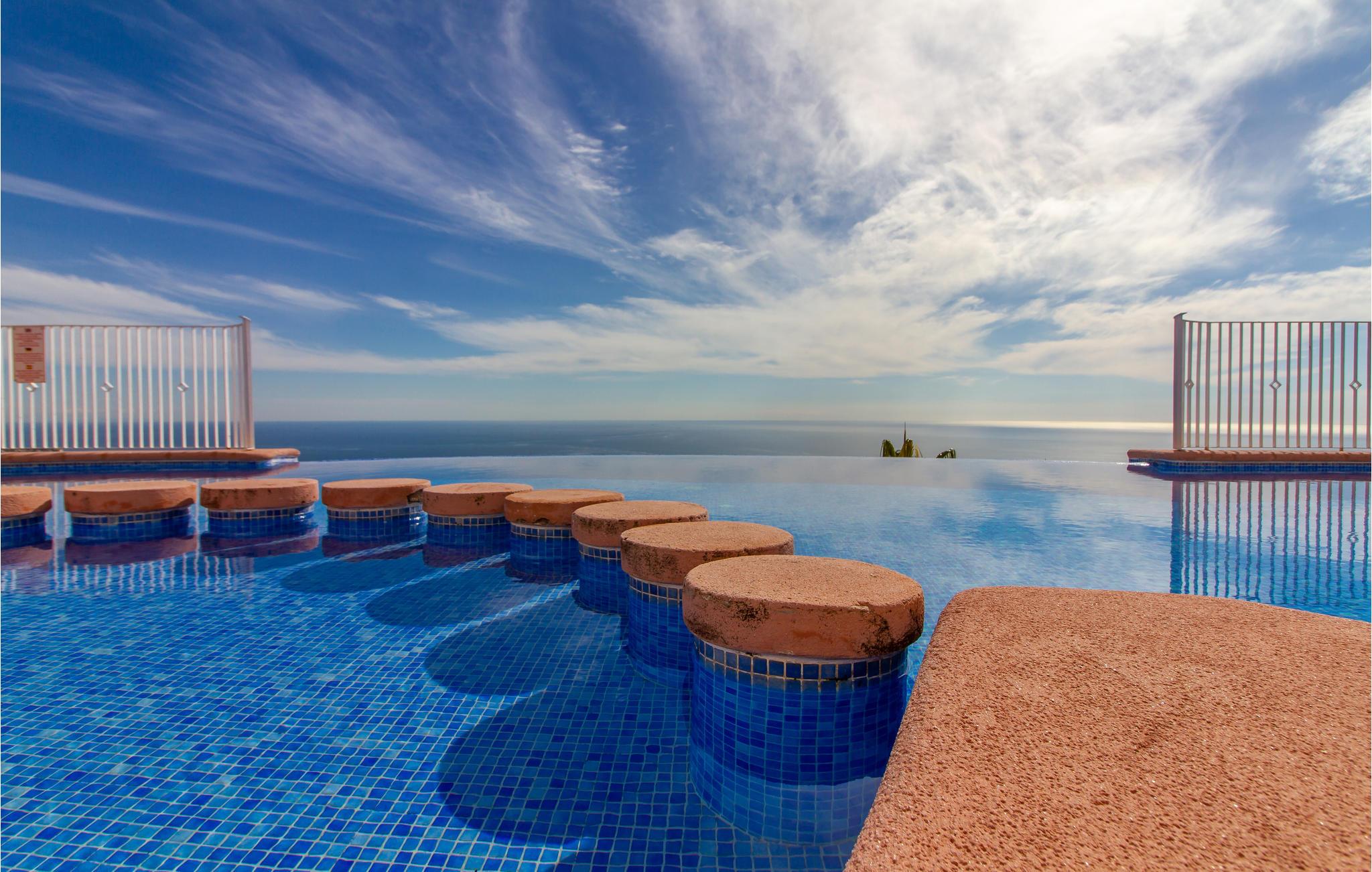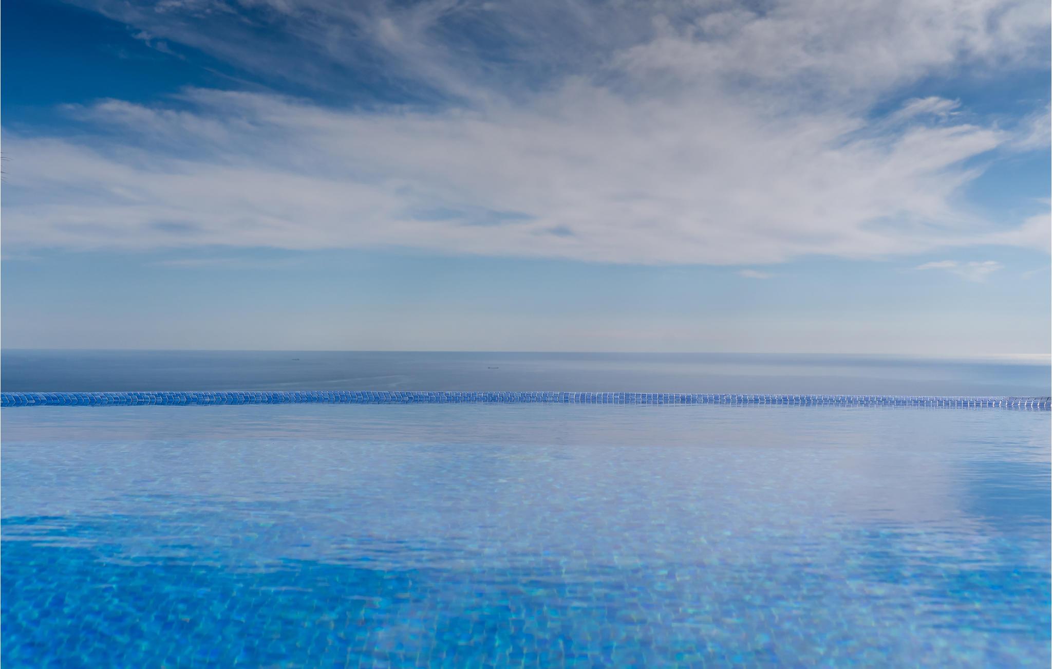 Den fælles pool, der smelter sammen med havet i baggrunden som en infinity-pool, er særdeles skøn og byder på en god atmosfære , mens I bader.