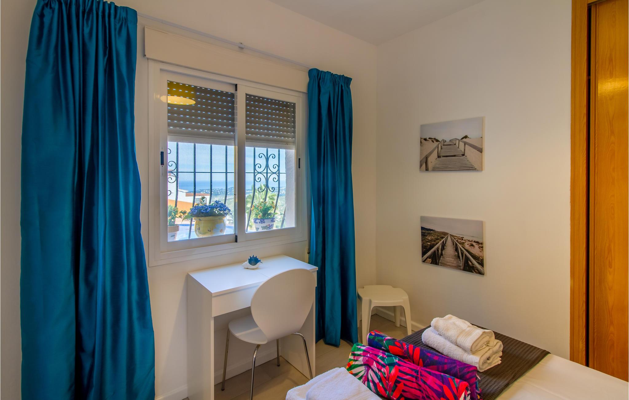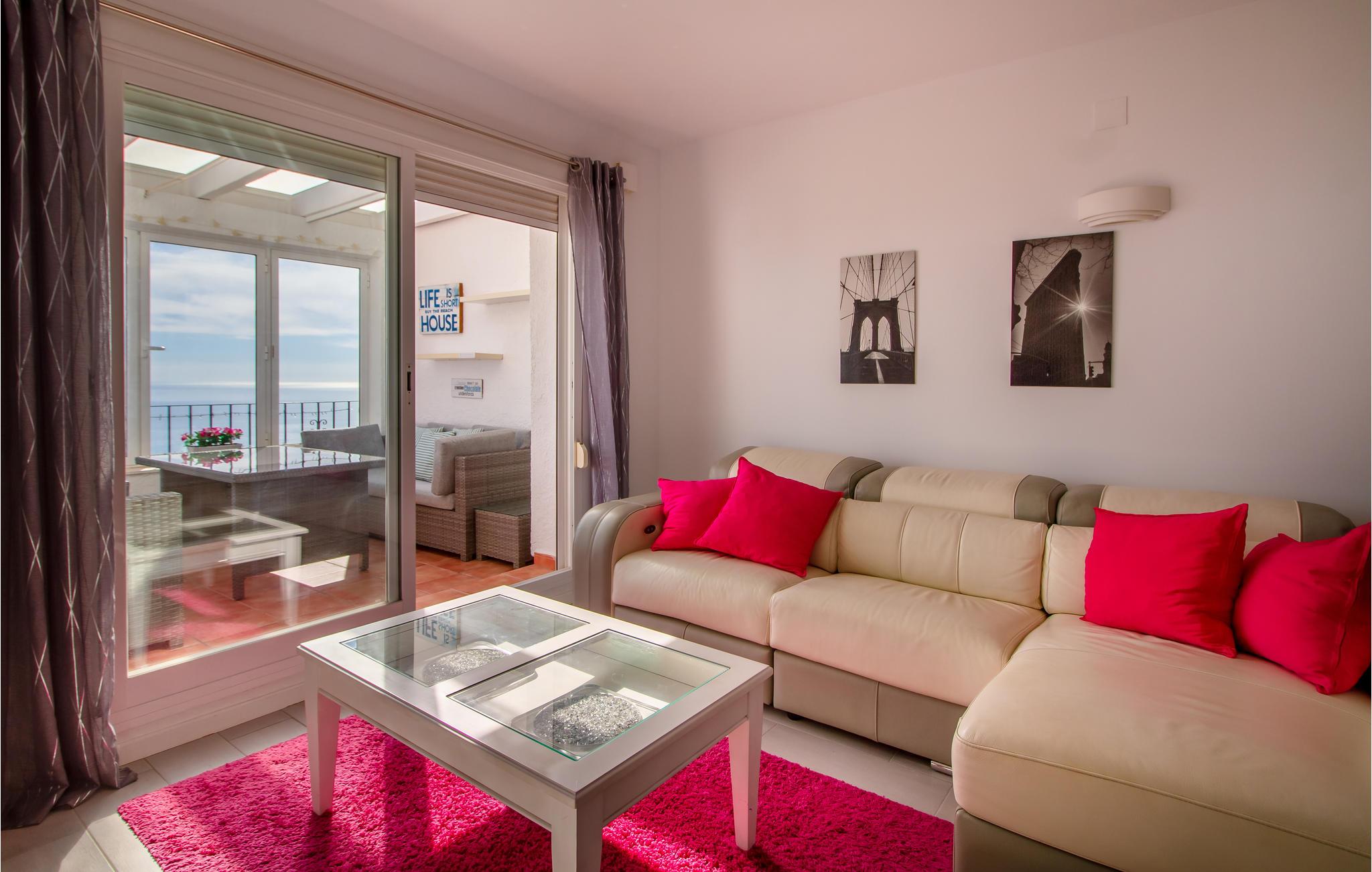 Tilbring en afslappende ferie med jeres elskede i dette skønne og komfortable feriehus i Benitachell. Lejligheden er meget veludstyret og er det rigtige sted at slappe af fra jeres stressede hverdag. Lav mad sammen i køkkenet, slap af i sofaen eller nyd dagens måltider på den vejrbeskyttede terrasse. Men I kan også solbade på den åbne del af terrassen, lytte til jeres yndlingspodcast og nyde udsigten.