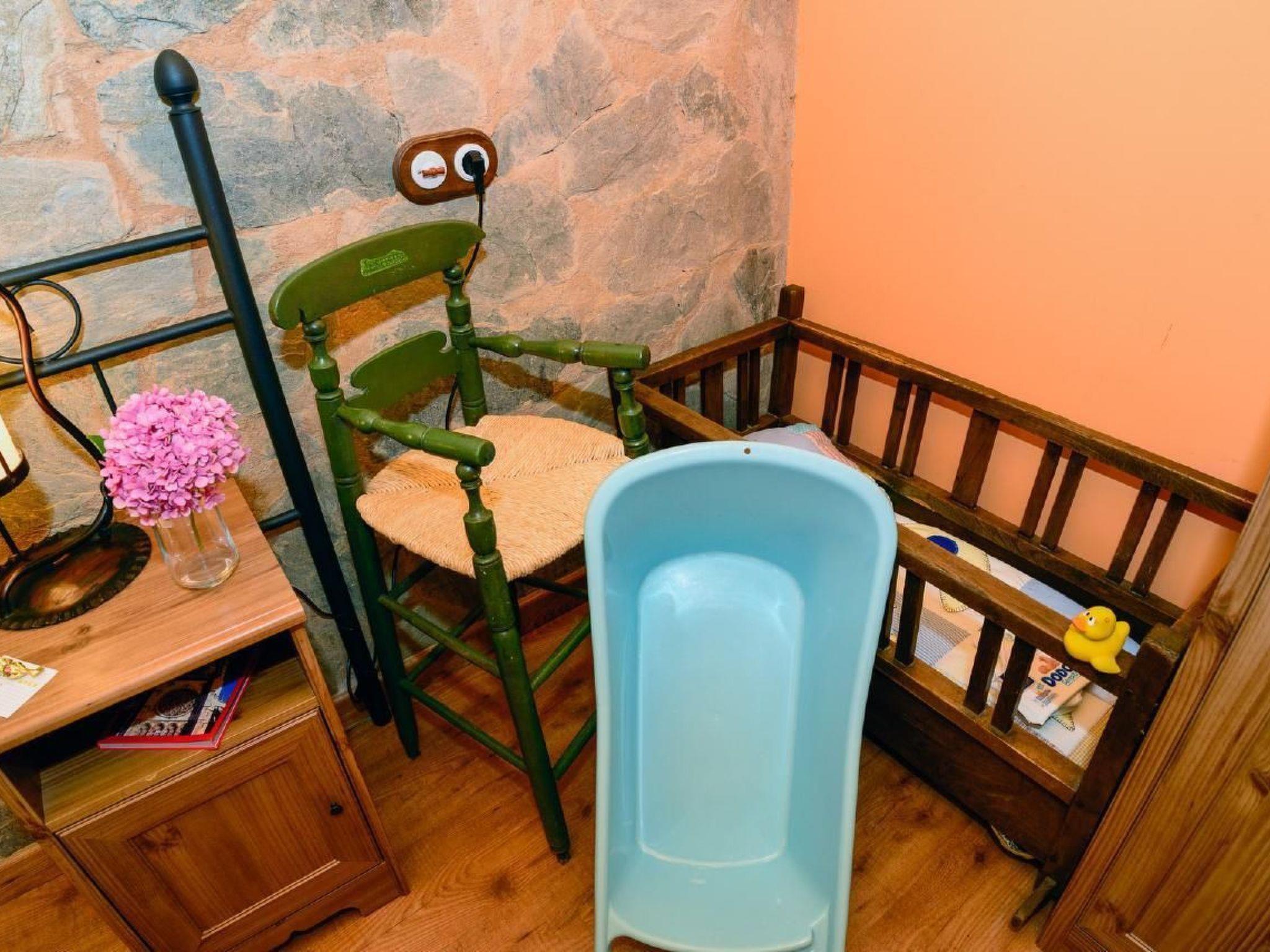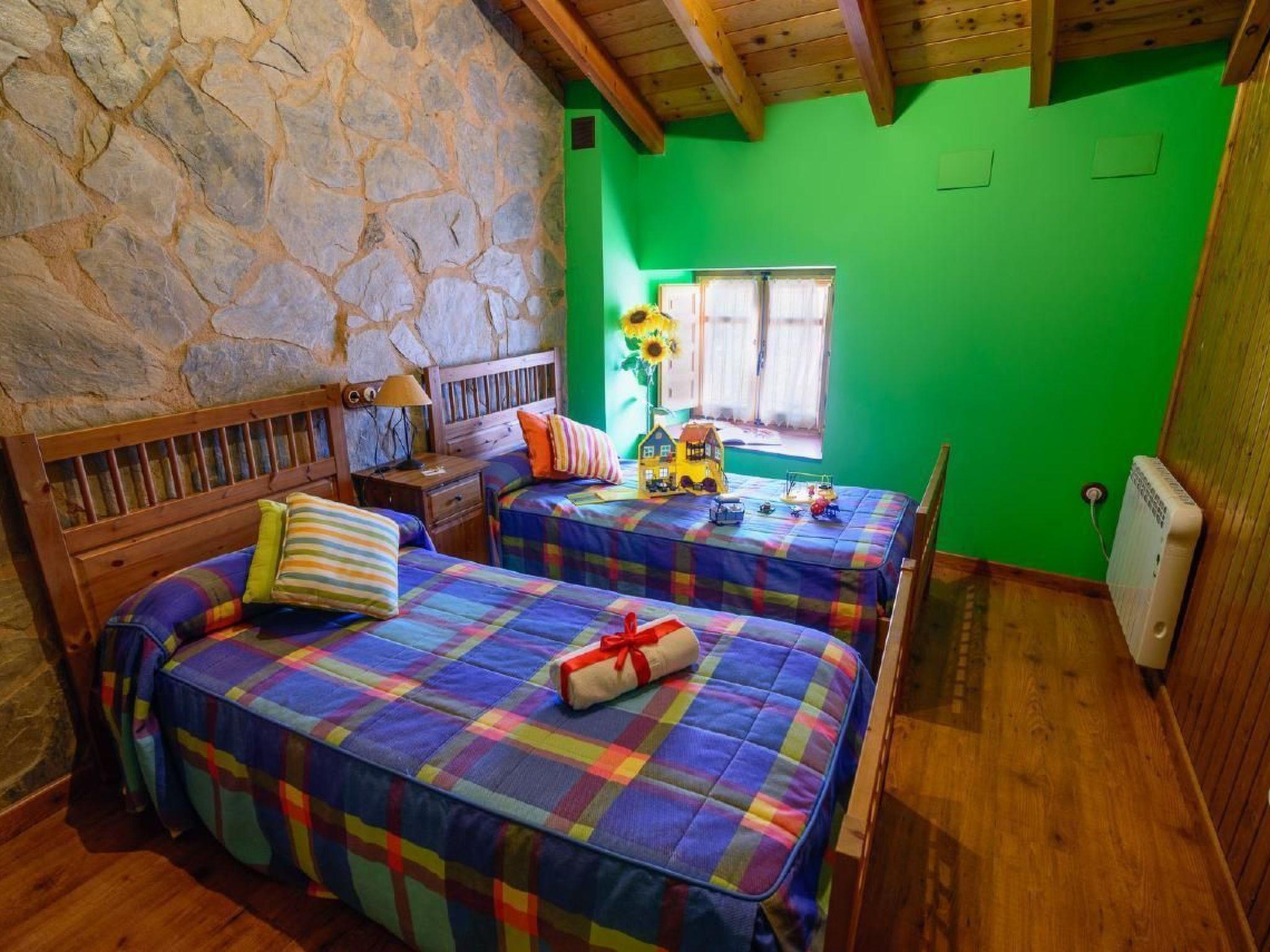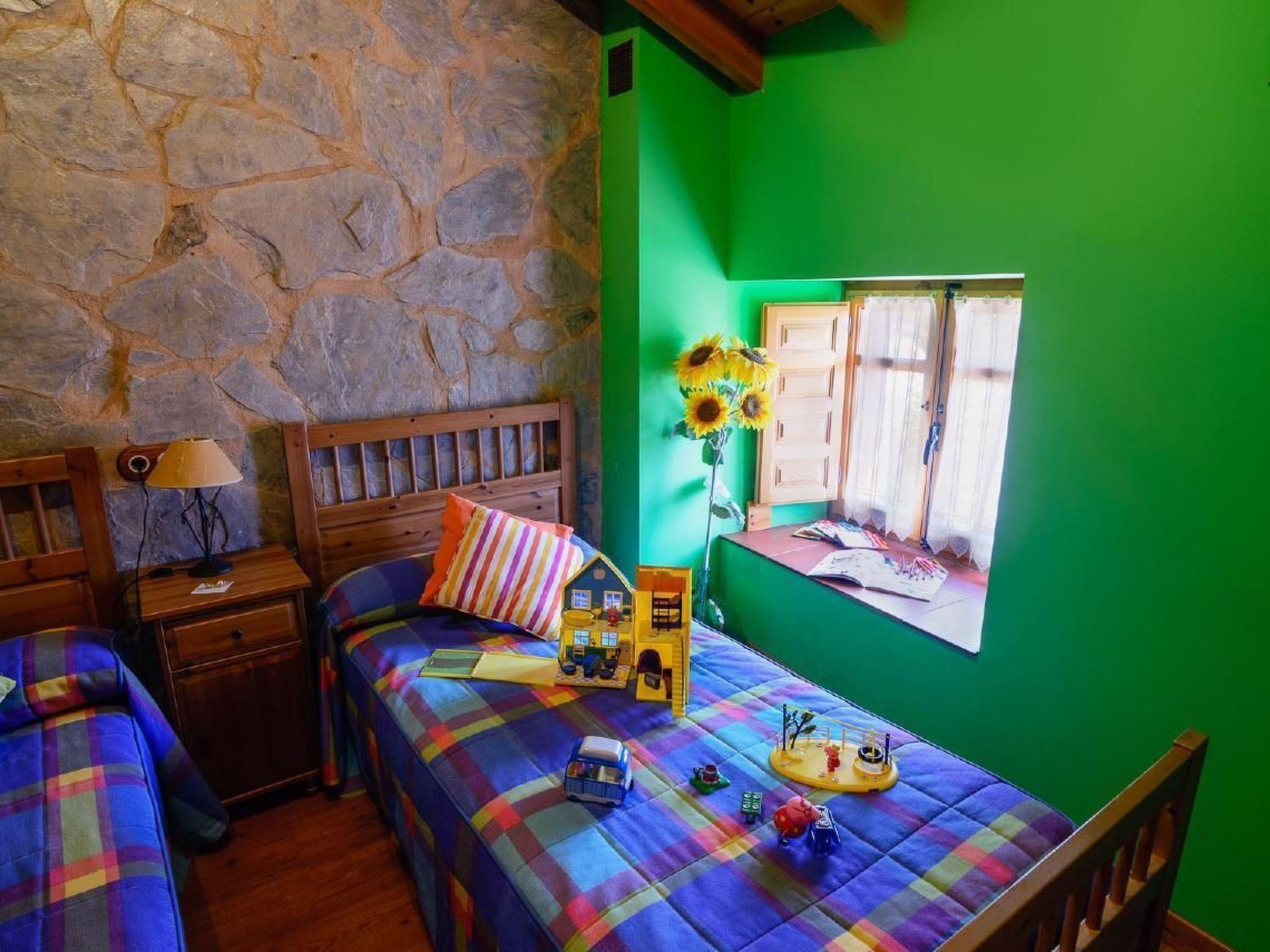 The rooms , located on the top floor are attic , letting us see the wooden beams and stone. Rustic furniture and functional . One room has a double bed and the other with two beds with the possibility of putting a crib in the home .