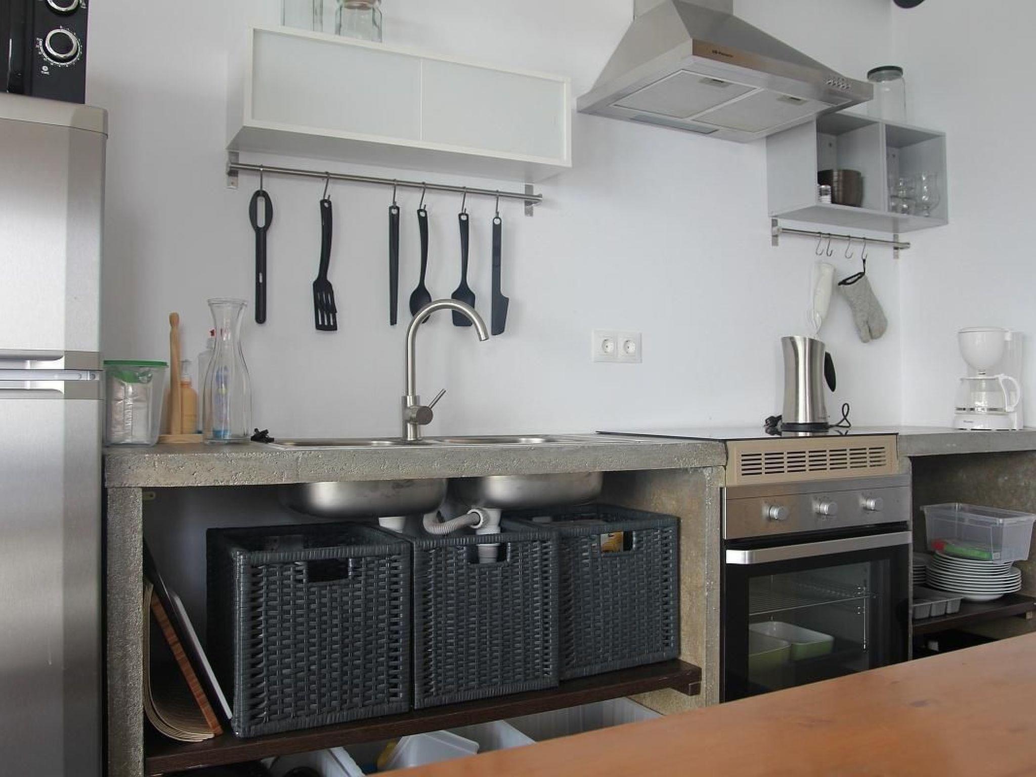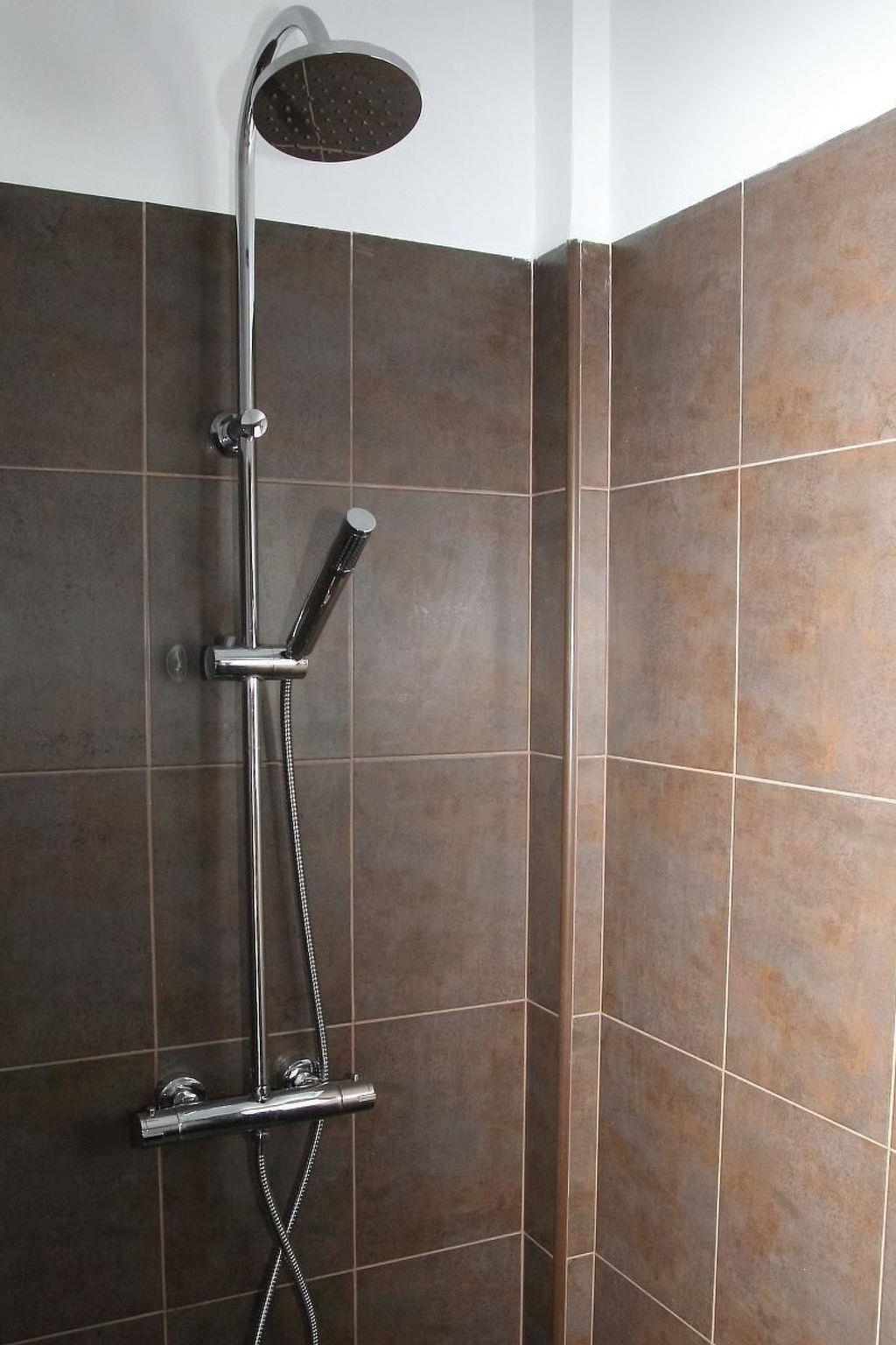 The living room is furnished with a seating area, a TV (with reception of Spanish channels), a DVD player, a fireplace, a dining area and an open kitchen. The kitchen is equipped with a fridge-freezer, two sinks, an oven, a cooker, a microwave, a coffee machine, a blender, a kettle, a toaster and plenty of cooking and eating utensils. The first bedroom is about 15 m² and is furnished with a double bed (150 x 200 cm), a bedside table and a lamp. The second bedroom can be equipped with a double bed (if you book with four adults), or with two bunk beds for four children (if you book with two adults and four children). The dimensions of the beds are 90 x 200 cm each. The modern bathroom has a walk-in shower with rain shower, a washbasin with cabinet and mirror, a toilet and a window. Thanks to the large sliding door, the living room is very bright. Through this door you reach the covered terrace. There is also a sun terrace at the front. You can also sunbathe on the terrace by the communal pool.