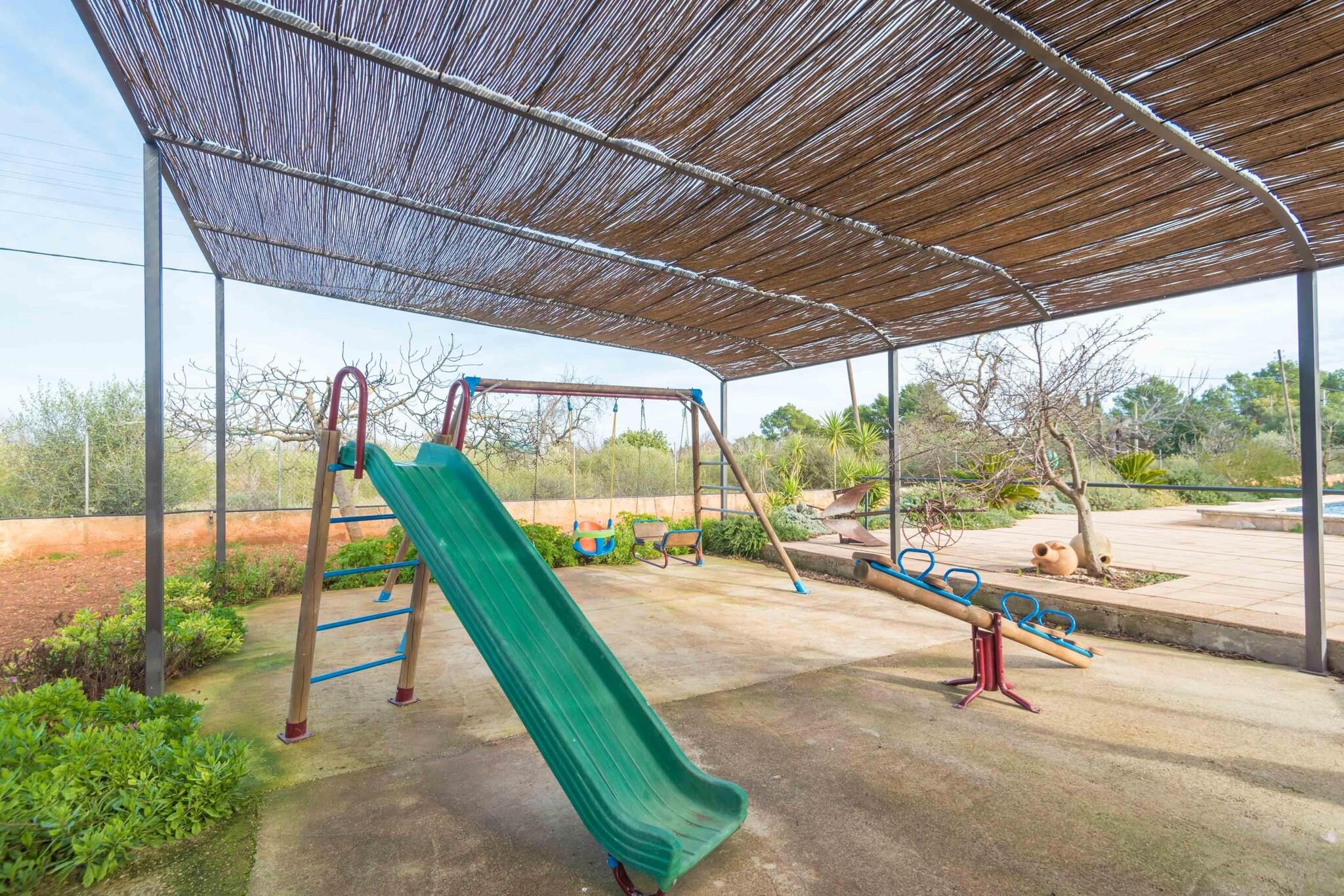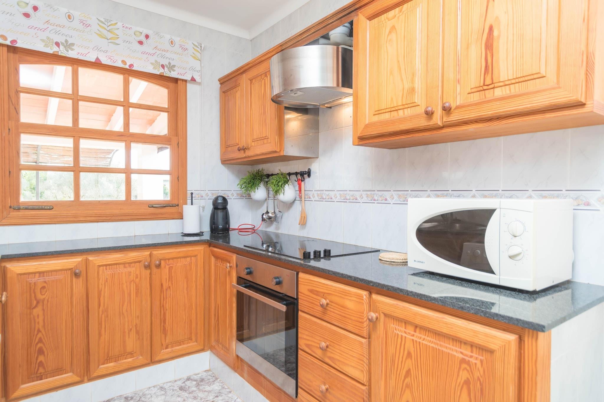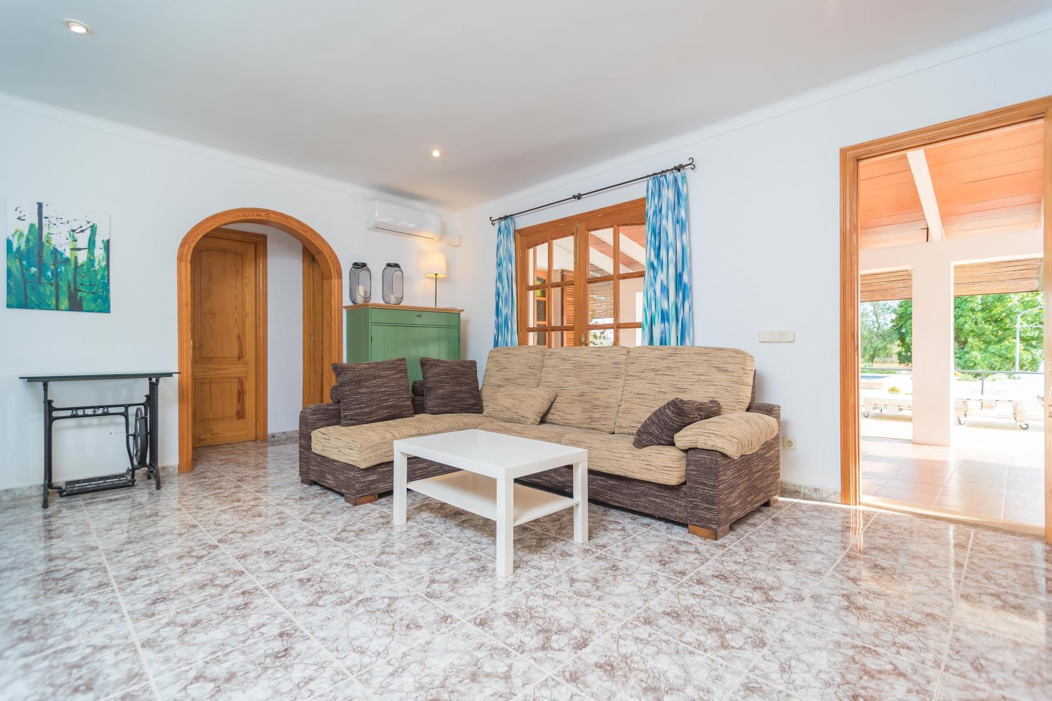Afslappet udendørsliv Træd udenfor for at nyde den rummelige terrasse, komplet med en privat 10x5m pool, liggestole og en skyggefuld veranda til morgenkaffe eller aftensmåltider. Grillen indbyder til lange sommeraftener, mens det omkringliggende landskab danner en fredelig kulisse. Med plads til udendørs spisning og sikker parkering på stedet, balancerer villaen komfort og bekvemmelighed for et afslappende ophold på øen. Kæledyr er ikke tilladt, hvilket sikrer, at omgivelserne forbliver rolige og velholdte. Komfortabelt interiør Indenfor tilbyder opholds-, spise- og køkkenområdet i åbent plan et indbydende sted at samles. En sofa inviterer dig til at slappe af med en bog eller film, mens køkkenet er udstyret med det nødvendige, såsom en kaffemaskine, ovn, opvaskemaskine og mere til nem selvforplejning. To lyse soveværelser - det ene med en dobbeltseng og AC, det andet med to enkeltsenge - tilbyder udsigt over landskabet. Et moderne badeværelse fuldender layoutet, og familievenlige funktioner som barneseng og høj stol er tilgængelige efter anmodning. Autentisk lokal smag Kun 2 km væk byder Binissalem dig velkommen med sin vintradition, fredagsmarked og livlige landsbyatmosfære. Gå en tur gennem bodegaer for at prøve regionale vine eller nyd et afslappet måltid på lokale restauranter, der serverer autentiske mallorcanske smage. Dagsture er inden for rækkevidde: Palmas kulturelle vartegn, sandstrande som Playa de Palma og naturskønne landsbyer som Sóller ligger alle mindre end 30 minutter væk.