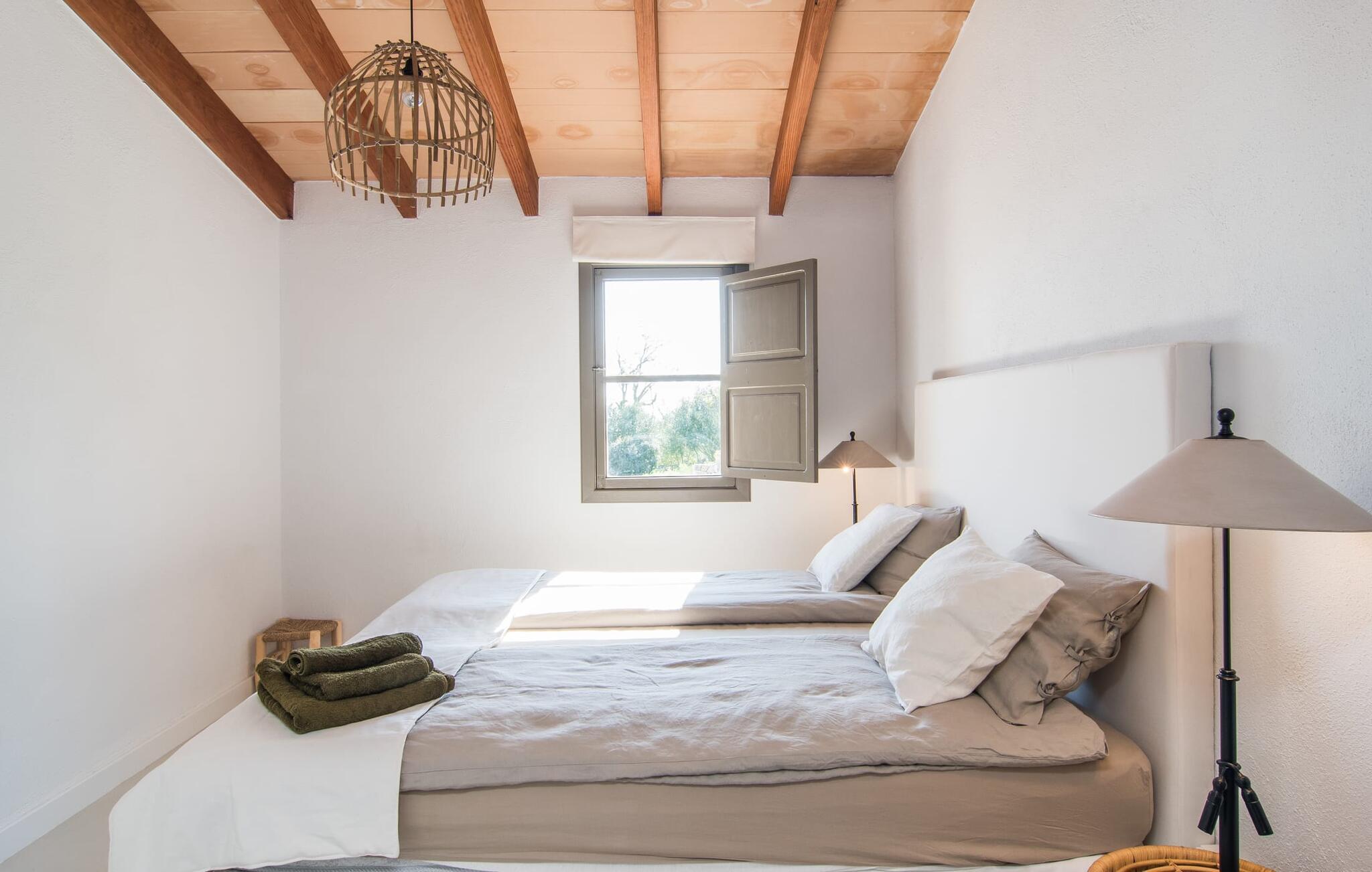 Denne ejendom på 14.000 m² udstråler et strejf af hippiestil fra Ibiza, især den lyse hvide bygning og udhus med livlige og farverige skodder. Det er ikke bare smukt at se på; Det huser også en hyggelig overdækket terrasse med vidunderlig panoramaudsigt. Herfra er der ikke langt til det kølige vand - bare hop over en lille sten - og ikke langt til terrassen lige ved siden af huset - kun fem trin og et strejf af lavendelbedet på vej. Udover en bænk, spisebord og stole samt et lille grillhus byder denne terrasse frem for alt på en utrolig panoramaudsigt over det dejlige landskab på den østlige del af øen. For at komme tilbage til poolen: Den behageligt trappede gulvbelægning mellem 1 m og 1,70 m samt den behageligt brede indgangstrappe gør den til et rigtigt hit for store og små på en varm sommerdag, uanset om det er dig selv eller dig selv, der ønsker at slappe af. med en kølig drink. Suset efter gyngestolen vil være særligt stort på disse varme dage - men liggestolene og det lille siddeområde er gode alternativer og kan også blive dit yndlingssted. Den afsondrede beliggenhed og rummelige ejendom betyder, at du virkelig kan nyde dit privatliv - måske er det lige det, du har brug for? Dette er et Fincallorca feriehus. Det indre af dette 90 m² store hus inviterer dig til at slappe af. Den smukt lyse stue ligger kun et skridt væk fra terrassen og har de basale faciliteter til afslapning i form af en stor sofa og satellit-tv. Dette område, inklusive det rustikke spisebord, flyder problemfrit ind i køkkenet, som er moderne og fuldt udstyret, men udstråler et strejf af charmerende nostalgi takket være den åbne pejs. Enhver, der hjælper dig med at vaske op, vil blive belønnet med en fantastisk udsigt over den omkringliggende natur! To hyggelige soveværelser med dobbeltsenge fortsætter stilen i stuen, men med små accenter gennem nøje udvalgt og sparsomt men smart brugt indretning. I dagslysebadeværelset med hvide klinker og rummeligt bruseniche med stengulv kan du følge den daglige fremgang i din feriebrun i det store spejl. Den østlige del af Mallorca har ry for at være et roligt område, hvor du på trods af sin nærhed til kysten stadig kan opdage mange traditionelle små byer. Vi anbefaler, at du besøger caféerne på de smukke pladser i nærheden af kirkebygningerne, som også er populære blandt lokalbefolkningen, og nyder den autentiske atmosfære. Porto Cristo byder på masser af karakter med sin havn, gamle bydel, sandstrand og promenade kun omkring 20 minutter væk i bil. Manacor er perfekt til en souvenir eller to, mens venlige bodegaer og det futuristiske Rafa Nadal Sports Museum er gode måder at bruge din tid på. Enhver interesseret i dyreliv og natur bør cykle eller vandre langs Via Verde, en nedlagt jernbanelinje. Et andet forslag til strandfans er Cala Bona (16 km), som har to mindre bugter og en smuk fiskerihavn. Villaen "Bolero Sa Real" er et idyllisk ø-tilflugtssted: den landlige ejendom strækker sig mod syd med sin pool og terrasser, og havet glimter endda i det fjerne. San Lorenzo ligger kun tre minutters kørsel væk for at shoppe eller spise, og den nærmeste større by, Manacor, ligger kun 10 km væk. Fra Cala Ratjada til Porto Cristo inviterer små havne og smukke promenader dig til at slentre, og strande som Colònia de Sant Pere og Cala Millor er kun en halv time væk.