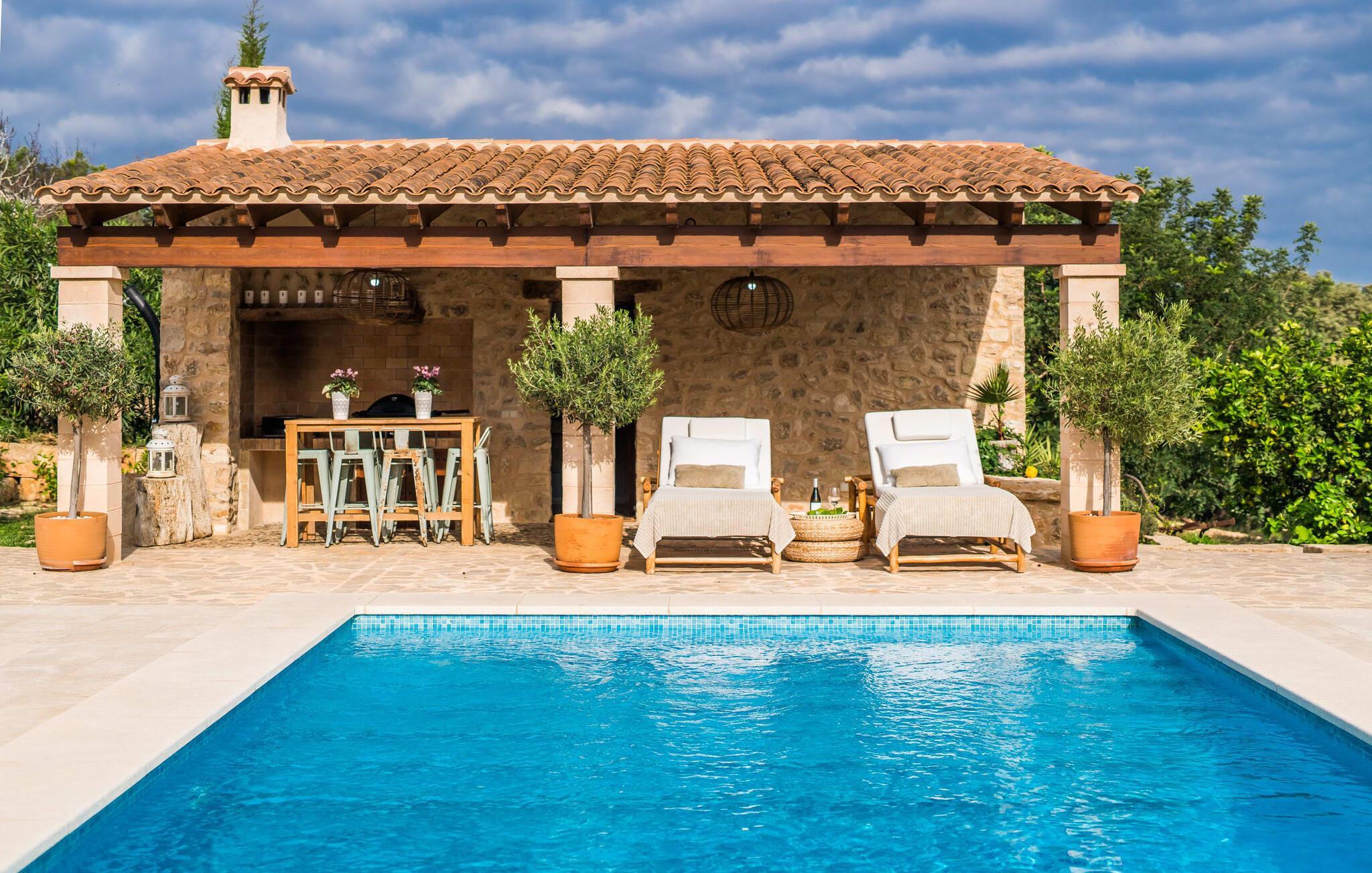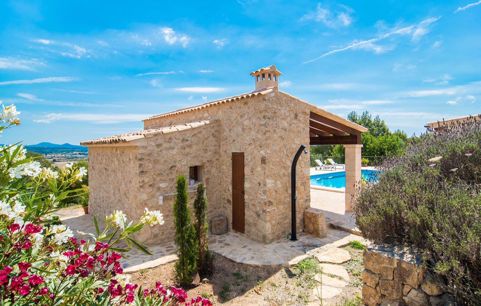 dag aflægger vi et besøg i villaen “Bon Any” via veludviklede villagader. Vi inviterer dig til at tage med os på en rundvisning i denne fantastiske ejendom. Ved første øjekast fremstår stenbrudskonstruktionen meget traditionel; Vi kan forsikre dig om, at der er tale om en nybygget villa med en fremragende beliggenhed, men som holder tæt til den traditionelle mallorcanske arkitektoniske stil. Huset er beliggende på en rummelig 30.000 m² grund i en høj bjergbeliggenhed. Udviklerne var i stand til at udnytte beliggenheden optimalt og placere både poolområdet og de overdækkede terrasser, så du i fuldstændig fred kan nyde denne uforglemmelige panoramaudsigt, omgivet af al den skønne middelhavsnatur. Den store pool ligger på en smuk, lys terrasse og er adskilt fra det omkringliggende område med talrige oliven- og johannesbrødtræer af en skråning. Seks liggestole af høj kvalitet i aluminium er tilgængelige til din daglige solbadning. Hvis du føler dig for varm i solen, skal du blot flytte liggestolen under skyggen af den bambusbeklædte “toldo” eller baldakin – der er plads til mindst fem liggestole. Hvis du har lyst til et spil backgammon, er der et lille bistro-stil bord og stole i den fjerne ende af poolen. Selve den mosaikbeklædte pool tilbyder bred, lavvandet og børnevenlig trinadgang. Nu forlader vi poolen og går ud på den overdækkede terrasse ved siden af huset. Mens I sidder sammen ved spisebordet med dets komfortable kurvestole og nyder jeres middag, kan I se ud over poolen og nyde udsigten over sletten omkring Petra – en udsigt der strækker sig til bjergkæden i horisonten. Ved siden af spisepladsen er der et integreret loungeområde, der inviterer dig til at slappe af på sine bløde sædehynder. Et ideelt sted for et godt glas vin med vennerne om aftenen eller en morgenkaffe for at starte dagen i fred og ro i naturen. Fra den overdækkede terrasse får vi adgang til villaens indre; Det er en glædelig overraskelse, at dette stenbrudshus, der fremstår så delikat, byder os velkommen med et så overdådigt og lyst interiør. Lad os gå til stuen; Det ekstremt høje loft giver hele boligarealet en smuk atmosfære af bevægelsesfrihed. På venstre side, bag en skærm, er det hyggelige beige sofahjørne ved siden af den hyggelige pejs og det moderne LCD-tv. De abstrakte, men alligevel subtile billeder giver dette lysfyldte rum en moderne, moderne følelse. En stor kurvebue beklædt med sandsten fører ind i det let adskilte køkkenområde. Et fuldt udstyret landhuskøkken lavet af rustikt træ byder os velkommen; Præcis hvad du håbede på for at give dig afslappet selvforsyning på din villaferie. Dette værelse er udstyret med blandt andet et stort komfur og en antik kakkelovn. Midt i rummet er der et spisebord i træ. Køkkenet har også en dør, der fører til det udendørs område - især nyttigt til spisning under åben himmel. I alt er der tre komfortable, rummelige soveværelser; Dine indbyggede skabe med massive trælåger tilbyder nok opbevaringsplads til hele din feriegarderobe. De hyggelige soveværelser er udstyret med enten to enkeltsenge på 1,05 x 2 m eller 1 x 2 m eller en dobbeltseng på 1,80 m bred. Enkeltværelset er særligt velegnet til børn og to babysenge er også tilgængelige for vores yngste gæster. To elegante badeværelser deles af alle gæster - et med badekar og et med bruser. Når du besøger husets indre og ydre, vil du opdage adskillige dekorative elementer, der bidrager til stemningen i denne finca. Alt er arrangeret med så stor kærlighed til gæsterne, ned til mindste detalje, at når du kommer ind, føler du dig straks hjemme og kan nyde freden og den harmoniske charme fra "Bon Any". Trods den helt idylliske beliggenhed ligger denne villa kun ca. 1,9 km fra den nærmeste landsby - Petra. Petra er synlig fra adskillige udsigtspunkter i den stærkt anbefalede villa "Bon Any". Petra er en stille by langt fra stress og jag, med en autentisk karakter, der afspejles i de små gader mellem de gyldenbrune stenbrudshuse. Landsbyen er stille, men alligevel uimodståelig smuk, med en række små barer, caféer og restauranter. Hver onsdag er der et farverigt ugentligt marked på Placa Ramon Llull, hvor du kan surfe rundt og se travlheden, mens du nyder en café cortado. Den centrale beliggenhed giver nem adgang til større byer som Manacor, som er ideelle til shopping. Når alt kommer til alt, har du allerede bestilt lejebilen i lufthavnen for at opdage alle seværdighederne, byerne, bjergene og sidst men ikke mindst strandene. Nu er det op til dig, om du besøger Alcúdia-bugten med dens 30 km lange strande eller udforsker de naturlige, halvvilde "calas" i det østlige kystområde. Vi hos Fincallorca ønsker dig en afslappende ferie i den absolutte fred og ro i den rustikke og stilfulde villa "Bon Any", hvor den venlige ejer byder dig hjertelig velkommen. Takket være sin bjergbeliggenhed byder den kærligt indrettede nye villa "Bon Any" på en betagende udsigt over bjergene i horisonten. Udsigten strækker sig til Petra, kun 1,9 km væk, som emmer af en særlig charme med sine smalle gader og gyldenbrune stenhuse. Butikkerne er ikke langt væk til hverdagens fornødenheder. De smukke sandstrande i Alcúdia-bugten samt andre østvendte naturstrande - såsom Cala Varques - kan nemt nås med lejebil. Dette er et Fincallorca feriehus.