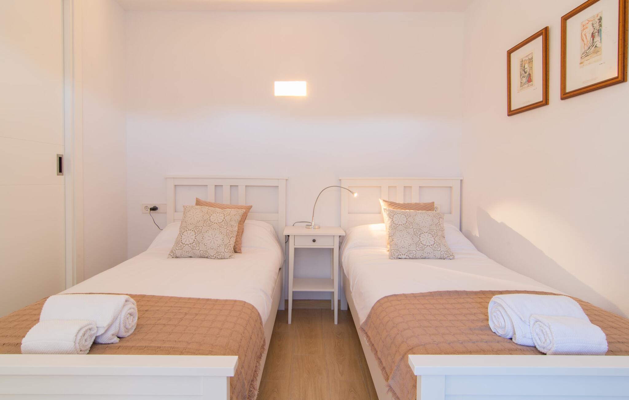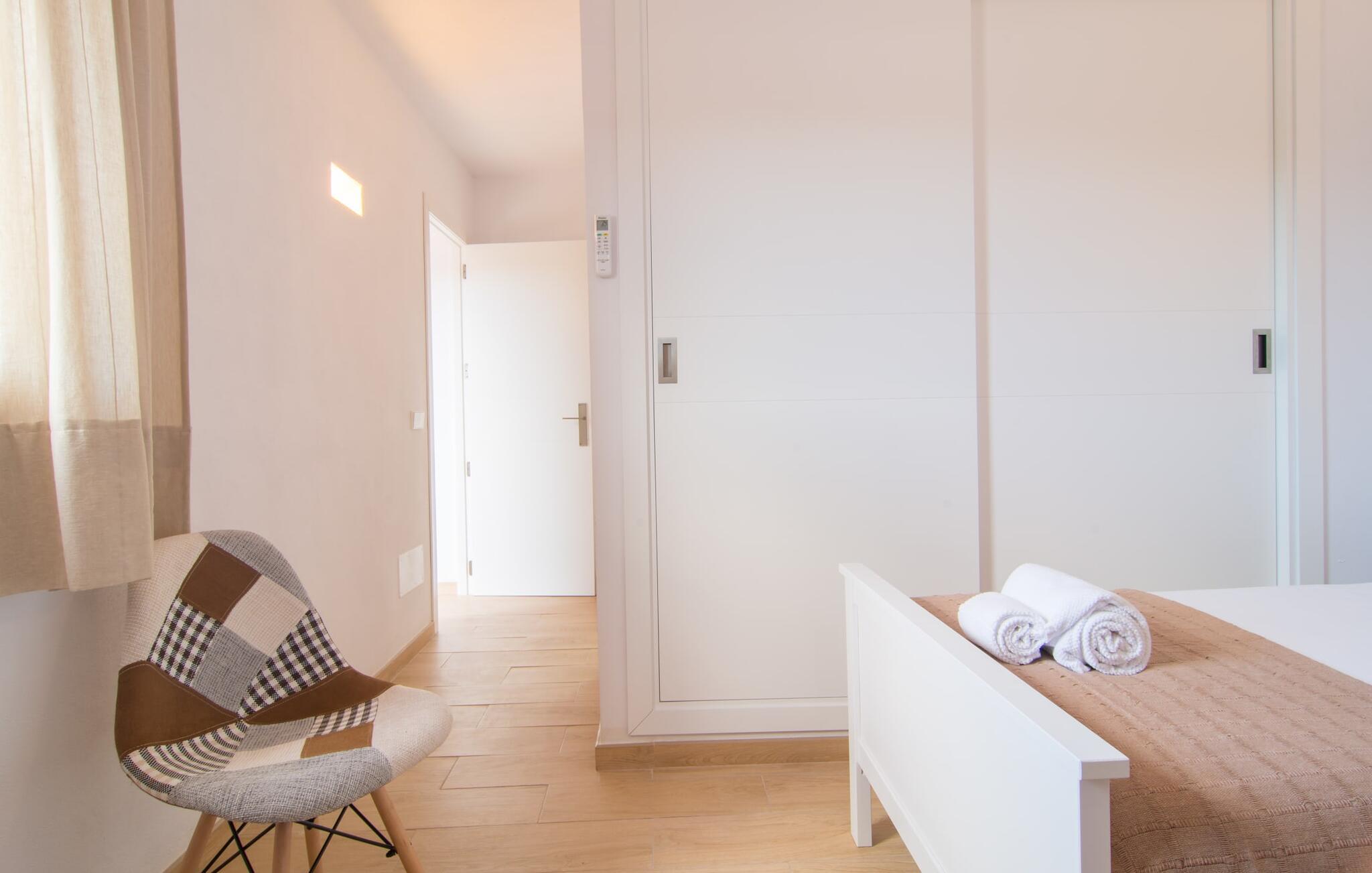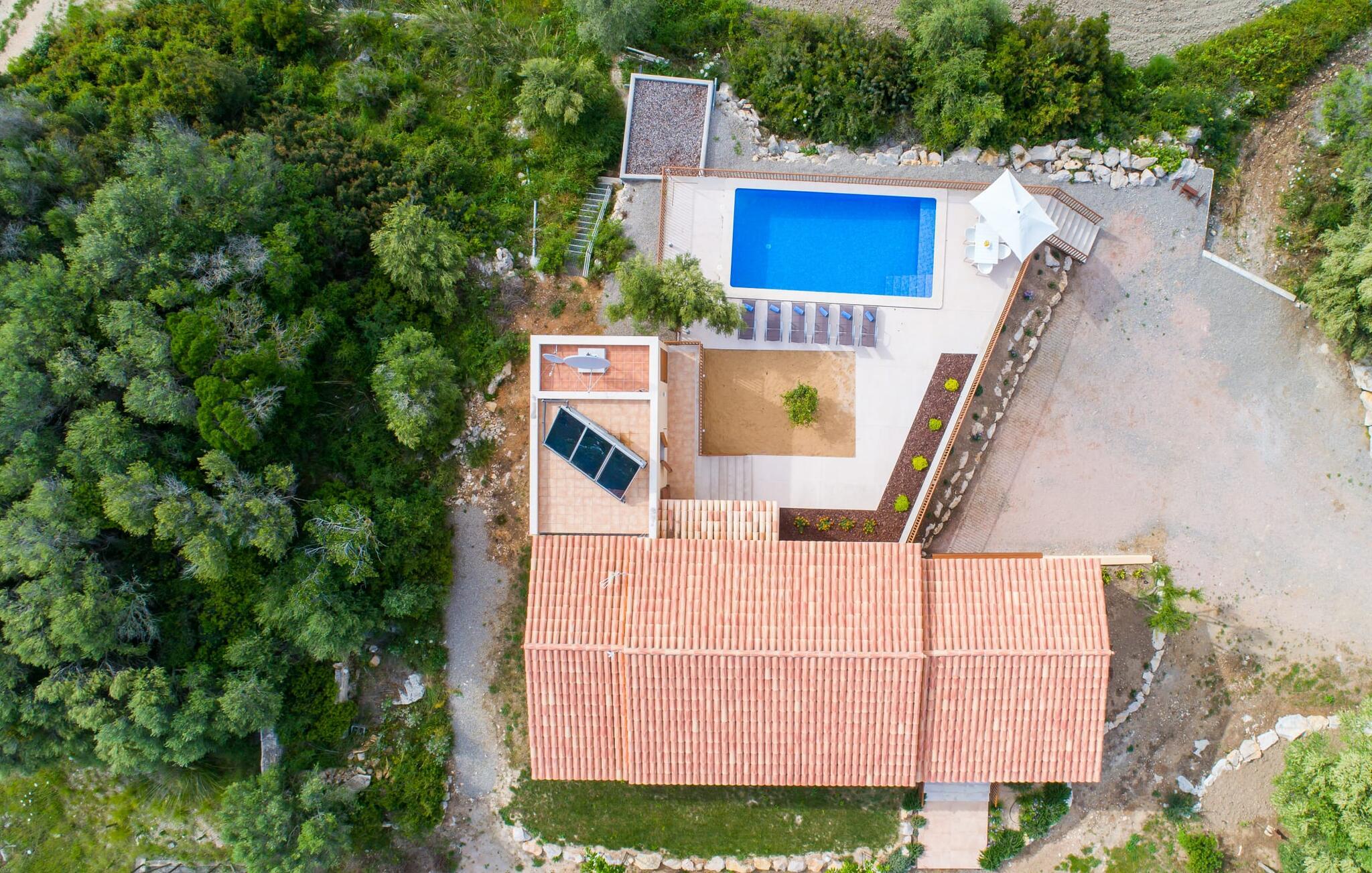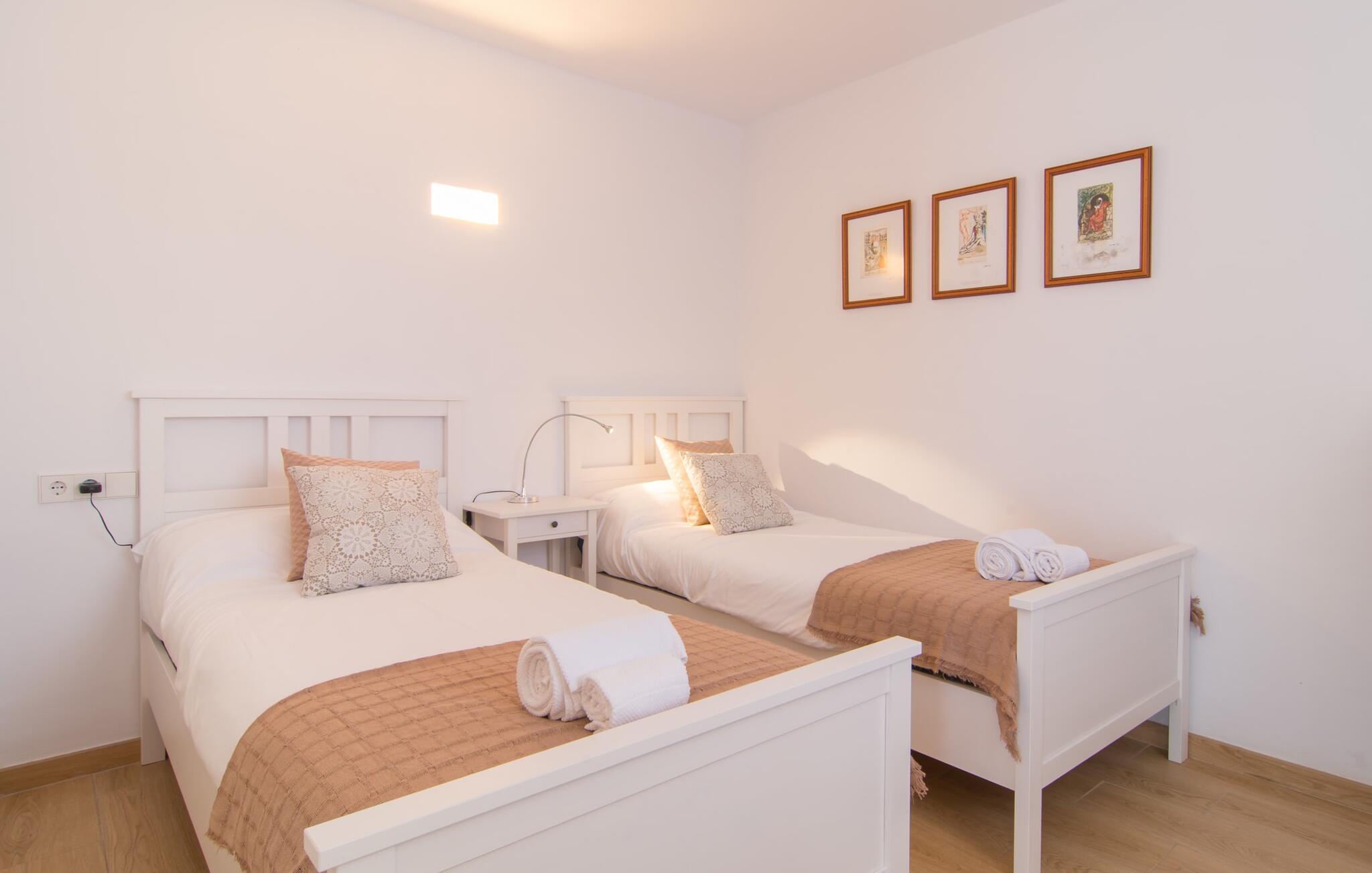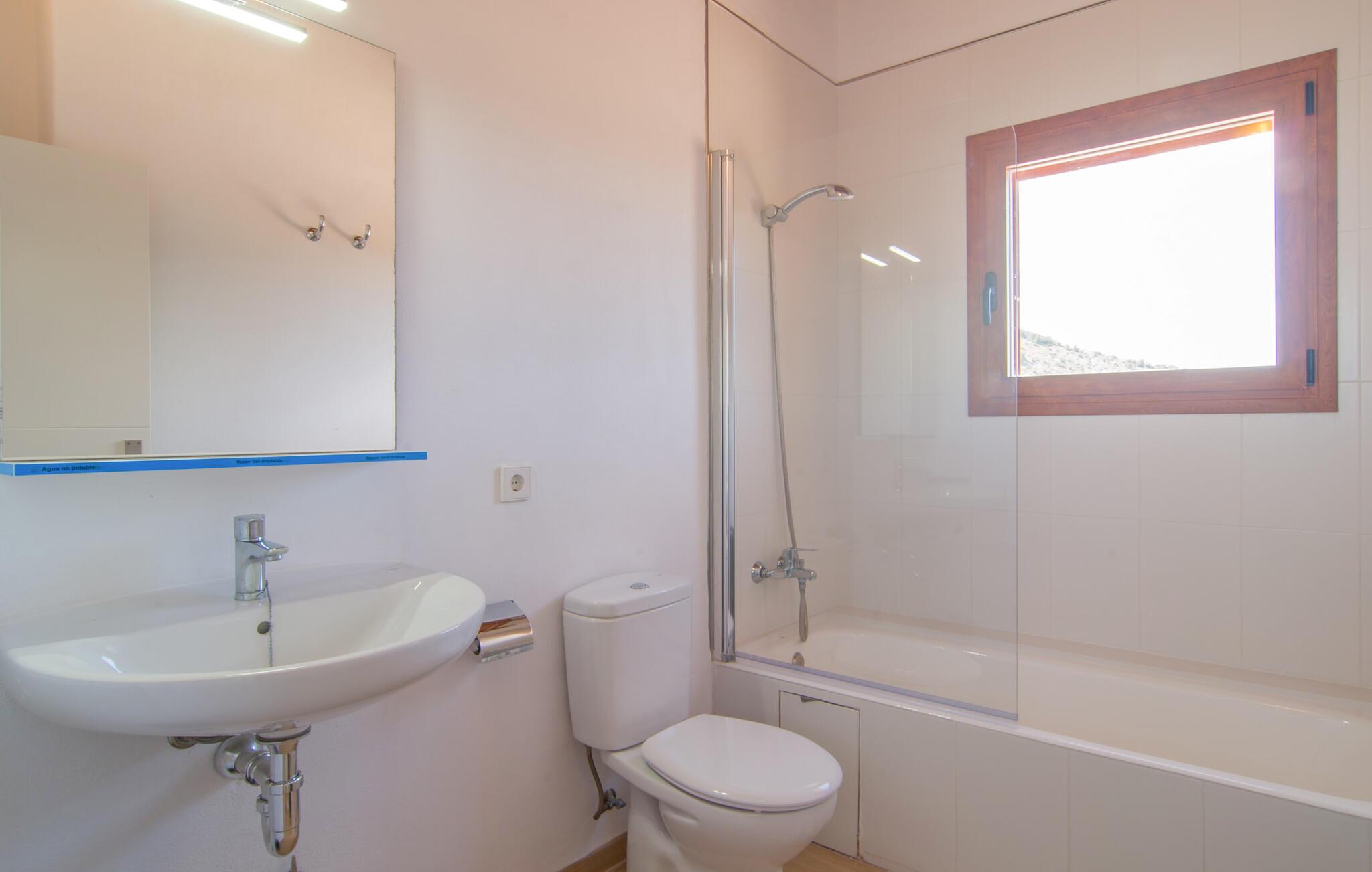 Villaen "Bon Temps Pula Rustic" ligger på en kæmpe 15.000 m² stor grund. I kan parkere jeres bil lige ved siden af huset; En lille trappe fører op til hoveddøren. Lad os først tage et kig på det udendørs område: Fra den store solterrasse har I en fantastisk udsigt over ejendommen og det maleriske landskab. En 8 x 4 m pool med trappetrin byder på velkommen afkøling og vandsjov for hele familien, især på varme sommerdage. Lige ved siden af poolen finder I komfortable liggestole, hvor I kan solbade af hjertens lyst. Det store spisebord, i skyggen af en parasol, er et hyggeligt sted til morgenmad. Det er særligt smukt om aftenen, når I kan se solnedgangen over Serres de Llevant-bjergkæden med en kølig drink. Til huset hører også en kulgrill, ideel til at grille frisk fisk og andre lækre delikatesser. En trappe fører fra terrassen ned til en indre gårdhave, som er velegnet til eksempelvis fodbold. Ejendommen har adgang til smukke vandrestier, der fører gennem uberørt natur. Alle værelser i denne 150 m² store ejendom ligger i stueetagen. Opholdsstuen med lyst, moderne design, komfortabel sofagruppe og stort spisebord er direkte forbundet med det åbne køkken. Træbjælkelofter, hvide møbler, beige og grå nuancer og indirekte lyskilder skaber en indbydende atmosfære. Et stort fladskærms-tv er også tilgængeligt. Hvis I foretrækker at surfe på internettet uden datavolumen, kan I nyde WLAN-forbindelsen: Det betyder, at I kan dele jeres feriebilleder med jeres kære derhjemme. Køkkenet med barområde har køleskab i fuld størrelse, ovn og mikroovn. Villaens tre soveværelser er indrettet i lyse farver. To soveværelser har dobbeltsenge, private badeværelser og små terrasser. Det andet soveværelse har to enkeltsenge og et badeværelse med bruseniche. Takket være klimaanlægget kan I regulere temperaturen i alle soveværelser, så I ikke sveder, selv når det er varmt. jeres feriehus ligger i landlige omgivelser, indlejret i smuk natur: Duften af vild fennikel, rosmarinplanter, fyrretræer og oleandere kombineres med den salte middelhavsluft for at skabe den umiskendelige duft af Serres de Llevant, som løber parallelt med den østlige del af kysten. Nærheden til havet og en række smukke små byer og landsbyer, der har bevaret essensen af Mallorca, gør denne ejendom særligt attraktiv for aktive feriegæster, der gerne vil pakke meget ind. Takket være gode transportforbindelser kan I være på den smukke Costa dels Pins på mindre end 10 minutter. Der kan I slentre gennem en drømmende kystby forbi imponerende villaer eller nyde det turkise vand og den utrolige sandstrand. Den populære Canyamel Bay med liggestole og brusere er heller ikke langt væk. I det nærliggende feriested San Lorenzo er der et helt særligt ugentligt marked hver torsdag: Økologiske produkter er i fokus på dette økologiske marked, men også kunsthåndværk og lokalt dyrket vin. Der er også flere golfbaner med varierede fairways i regionen. Villaen "Bon Temps Pula Rustic", bygget i 2017, er omgivet af smukke naturomgivelser i en afsondret landlig beliggenhed nær feriebyen Son Servera på Mallorcas østkyst. På mindre end 10 minutter i bil kan I nå Coasta dels Pins med dets turkise vand, fine sand og den legendariske Bar Playa. Den populære Pula Golf er endda i nærheden, en af de mest udfordrende golfbaner på øen. Der er talrige butikker og vidunderlige ugentlige markeder i de omkringliggende byer.
