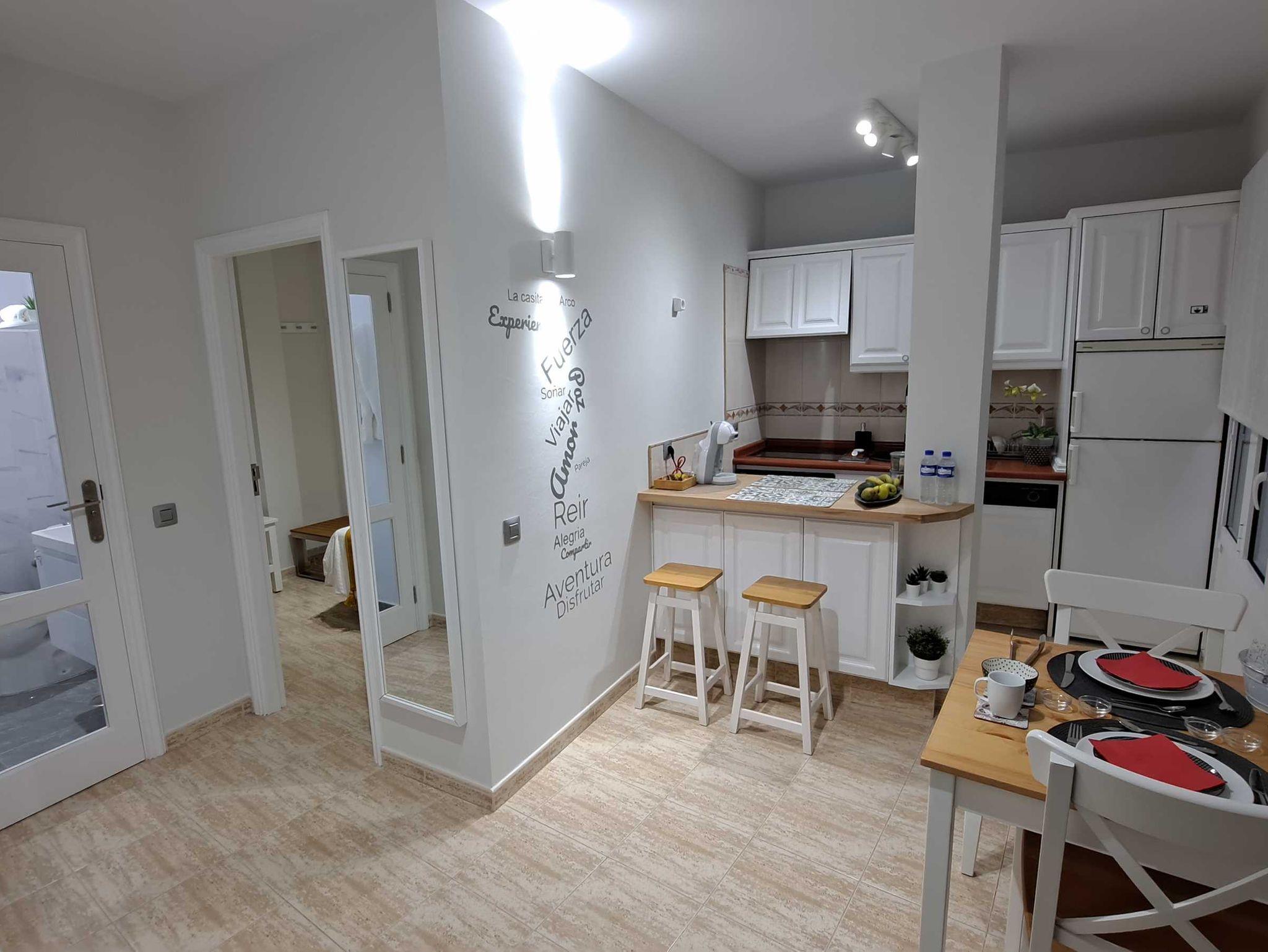 La Casita del Arco ist ein im Februar 2022 komplett renoviertes Penthouse mit minimalistischer Einrichtung und angenehmer und gemütlicher Atmosphäre. Alle Einrichtungsgegenstände sind brandneu, modern und mit viel Liebe zum Detail ausgewählt. Die Penhousewohnung ist sehr hell, mit Fenstern in allen Zimmern und Panoramafenster in der Küche und im Wohnzimmer. Man hat einen schönen Blick über San Pedro bis zum Meer. Dank einer guten Wärmedämmung und doppelt verglasten Fenstern ist die Wohnung gut temperiert und man bekommt im Inneren der Wohnung nichts vom Trubel der Stadt mit.