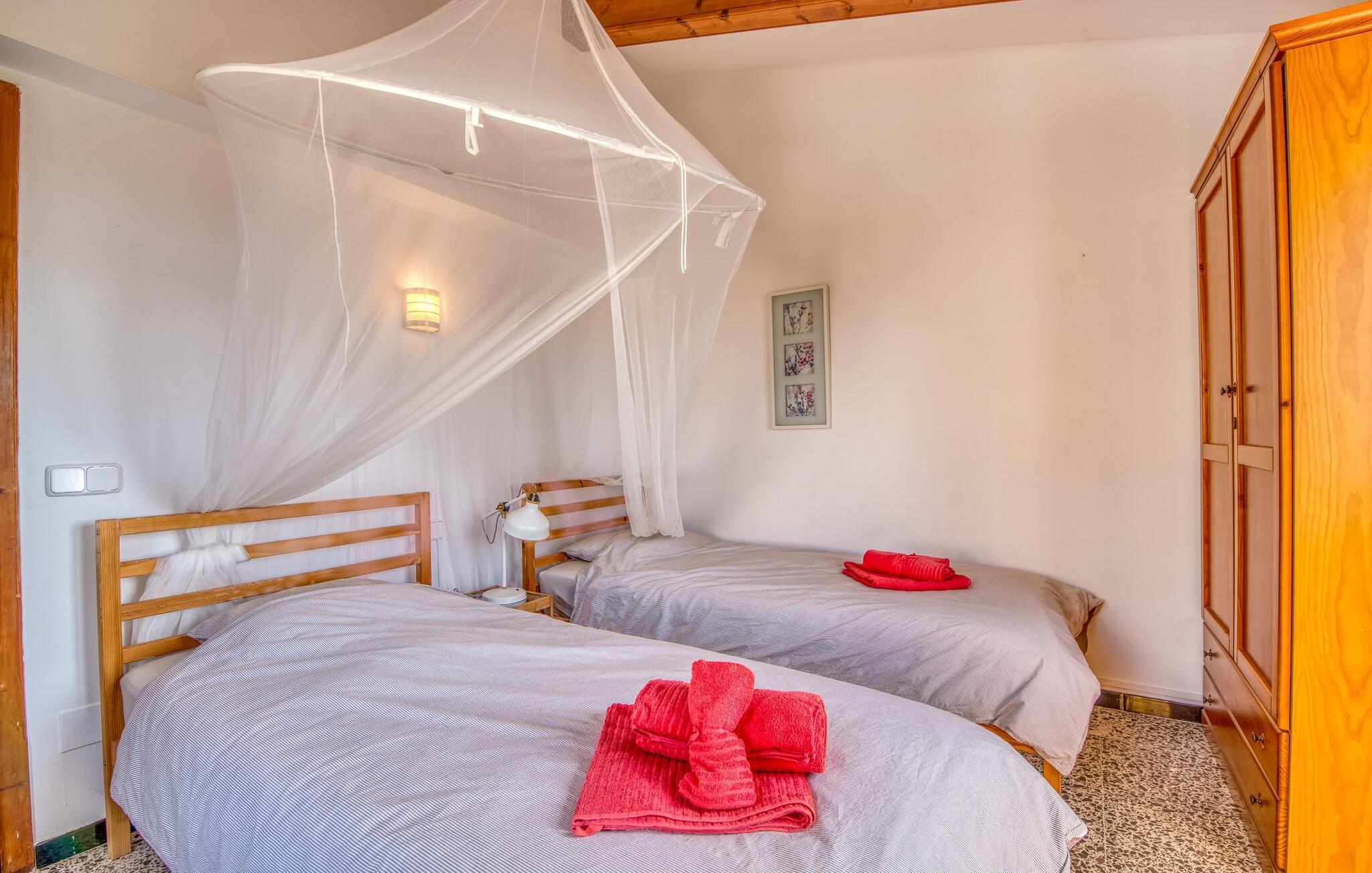 Den hyggelige villa "Buena Vista de Cala Pi" imponerer med sin vidunderlige beliggenhed på den anden kystlinje i den sydlige del af øen. Ligesom byen Cala Pí med sine 650 indbyggere, der ligger langt væk fra masseturismen, men stadig byder på en lang række turistattraktioner, er det familievenlige feriehus behageligt reserveret. Selvom villaen er omgivet af ligesindede boliger, imponerer den stadig med sin uforstyrrede havudsigt, som du kan nyde fra altanen og tagterrassen. Feriehusets pool byder på behagelig afkøling for hele familien. Terrasseområdet byder også på plads nok til omfattende og uforstyrret solbadning. Talrige udendørs siddepladser lokker dig på ethvert tidspunkt af dagen: Det hyggelige hjørne med caféstemning er omgivet af en række middelhavsblomster, og selvfølgelig er den overdækkede terrasse et must. Så du er garanteret at finde dit personlige yndlingssted ved solopgang, efter grillen eller til en solnedgang. Dette er et Fincallorca feriehus. Men atmosfæren i denne kompakte villa er også meget harmonisk. Omdrejningspunktet er den åbne stue og spisestue med absolut komfortable sofasæder i en lys strandstil. Dette er dygtigt suppleret med kombinationen af højkvalitets naturstensgulve, varmt træ og typisk mallorcansk rusticitet. Resultatet er et charmerende traditionelt, men moderne feriehus. Det fuldt udstyrede køkken er forbundet med spisepladsen via en bue. Også her er landstedslooket og hyggen perfekt kombineret. Villaen med havudsigt er ideel for op til seks personer eller to familier. Du finder hyggelige soveværelser i to etager, med enten dobbeltseng eller to børnevenlige enkeltsenge. For din komfort finder du baldakiner over sengerammen, som også fungerer som myggenet. To individuelt flisebelagte bruserum fuldender ensemblet. Den fabelagtige villa "Buena Vista de Cala Pi" er ikke kun velegnet til en ferie på Mallorca om sommeren, men også i lavsæsonen - og til meget attraktive lejepriser i en smuk beliggenhed. Havudsigtsvillaen “Buena Vista de Cala Pi” med sin spektakulære udsigt ligger på anden række i en velholdt urbanisering i den smukke kystby Cala Pí på Mallorca. Her kan du gøre alt til fods: shoppe, besøge restauranter, gå ture i de smukke omgivelser til fantastiske udsigtspunkter eller slentre til stranden. Den krystalklare, azurblå badebugt er særdeles børnevenlig og lavvandet og kan nås via en gangsti på kun 10 minutter eller i bil på 3 minutter.