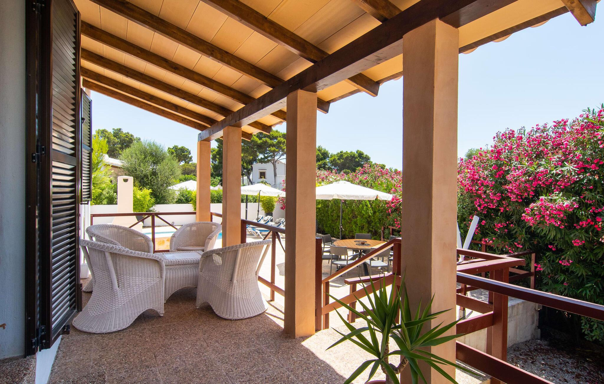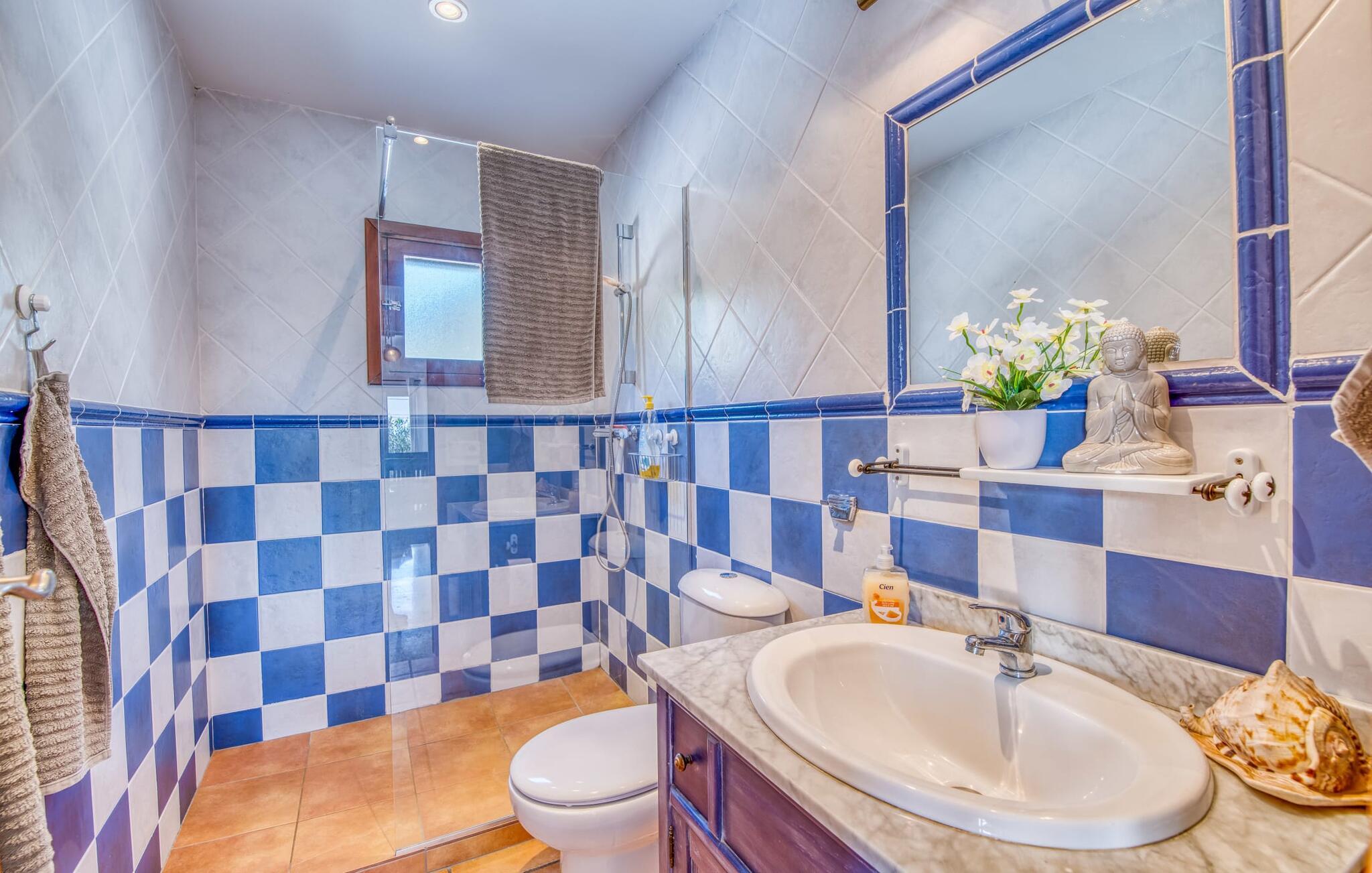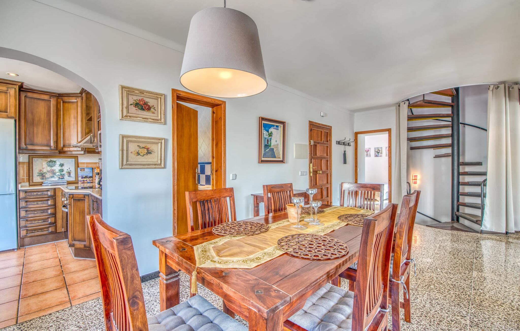 Den hyggelige villa "Buena Vista de Cala Pi" imponerer med sin vidunderlige beliggenhed på den anden kystlinje i den sydlige del af øen. Ligesom byen Cala Pí med sine 650 indbyggere, der ligger langt væk fra masseturismen, men stadig byder på en lang række turistattraktioner, er det familievenlige feriehus behageligt reserveret. Selvom villaen er omgivet af ligesindede boliger, imponerer den stadig med sin uforstyrrede havudsigt, som I kan nyde fra altanen og tagterrassen. Feriehusets pool byder på behagelig afkøling for hele familien. Terrasseområdet byder også på plads nok til omfattende og uforstyrret solbadning. Talrige udendørs siddepladser lokker jer på ethvert tidspunkt af dagen: Det hyggelige hjørne med caféstemning er omgivet af en række middelhavsblomster, og selvfølgelig er den overdækkede terrasse et must. Så I er garanteret at finde jeres personlige yndlingssted ved solopgang, efter grillen eller til en solnedgang. Men atmosfæren i denne kompakte villa er også meget harmonisk. Omdrejningspunktet er den åbne stue og spisestue med absolut komfortable sofasæder i en lys strandstil. Dette er dygtigt suppleret med kombinationen af højkvalitets naturstensgulve, varmt træ og typisk mallorcansk rusticitet. Resultatet er et charmerende traditionelt, men moderne feriehus. Det fuldt udstyrede køkken er forbundet med spisepladsen via en bue. Også her er landstedslooket og hyggen perfekt kombineret. Villaen med havudsigt er ideel for op til seks personer eller to familier. I finder hyggelige soveværelser i to etager, med enten dobbeltseng eller to børnevenlige enkeltsenge. For jeres komfort finder I baldakiner over sengerammen, som også fungerer som myggenet. To individuelt flisebelagte bruserum fuldender ensemblet. Den fabelagtige villa "Buena Vista de Cala Pi" er ikke kun velegnet til en ferie på Mallorca om sommeren, men også i lavsæsonen - og til meget attraktive lejepriser i en smuk beliggenhed. Havudsigtsvillaen “Buena Vista de Cala Pi” med sin spektakulære udsigt ligger på anden række i en velholdt urbanisering i den smukke kystby Cala Pí på Mallorca. Her kan I gøre alt til fods: shoppe, besøge restauranter, gå ture i de smukke omgivelser til fantastiske udsigtspunkter eller slentre til stranden. Den krystalklare, azurblå badebugt er særdeles børnevenlig og lavvandet og kan nås via en gangsti på kun 10 minutter eller i bil på 3 minutter.