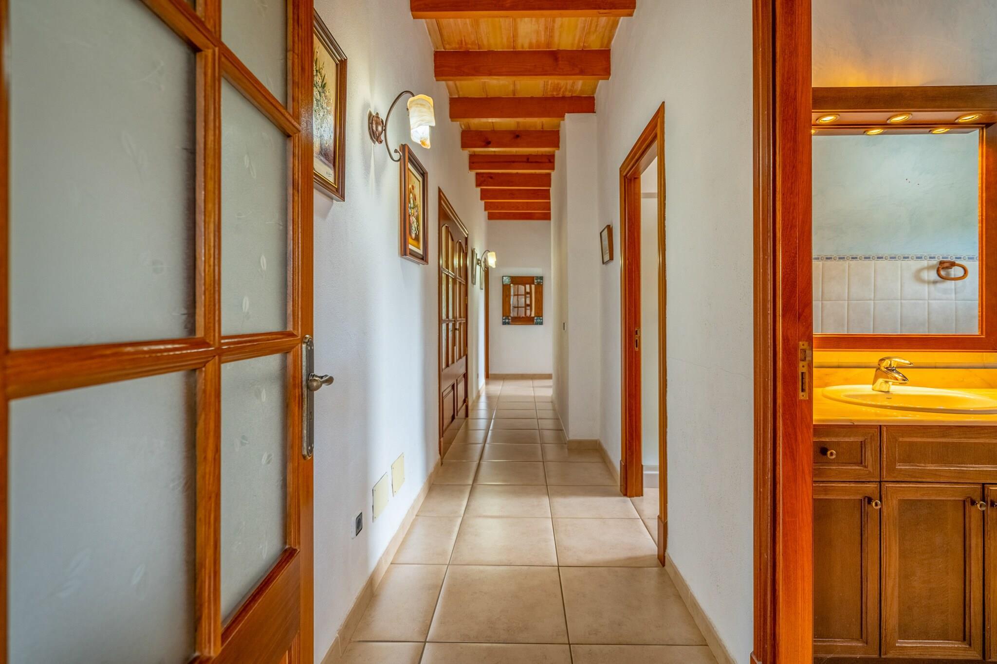 Dette charmerende landsted Dofi Blau tilbyder et fredeligt tilflugtssted for op til 8 voksne med 5 soveværelser med dobbeltsenge og 5 badeværelser, hvilket giver rigelig plads til, at alle kan nyde et afslappende ophold. Huset er udstyret med moderne bekvemmeligheder, herunder aircondition, gratis Wi-Fi og en hyggelig pejs, hvilket sikrer komfort under hele dit ophold. Ejendommen kan prale af en rummelig have med en fantastisk 42m² damformet pool, omgivet af frodige græsplæner, træer og en smart træterrasse. Et stort grillområde med ekstra madlavningsfaciliteter gør det ideelt til udendørs spisning, perfekt til at samles med venner og familie. Beliggende i den idylliske landsby Búger, i det nordlige Mallorca, tilbyder denne finca en fredfyldt flugt fra hverdagens stress og jag. Ejendommen er omgivet af en fantastisk udsigt over Albufera, Alcúdia-bugten og Tramuntana-bjergene, og ligger kun en kort køretur fra den smukke Platja de Muro-strand, hvor du kan nyde turkisblåt vand og blødt sand. Selve landsbyen er kendt for sit charmerende ugentlige marked, der afholdes hver lørdag foran rådhuset, og tilbyder nem adgang til nærliggende supermarkeder og andre lokale attraktioner. Huset kombinerer rustik charme med moderne bekvemmeligheder. Boligarealet på 400 m² omfatter et stort rustikt køkken, hyggelige opholdsområder og en blanding af moderne og antikke møbler, der tilføjer hjemmets karakter. Den øverste etage har 4 rummelige soveværelser med dobbeltsenge, hver med eget badeværelse, hvilket sikrer privatliv og komfort. Lejelicensnummeret er ETV/887