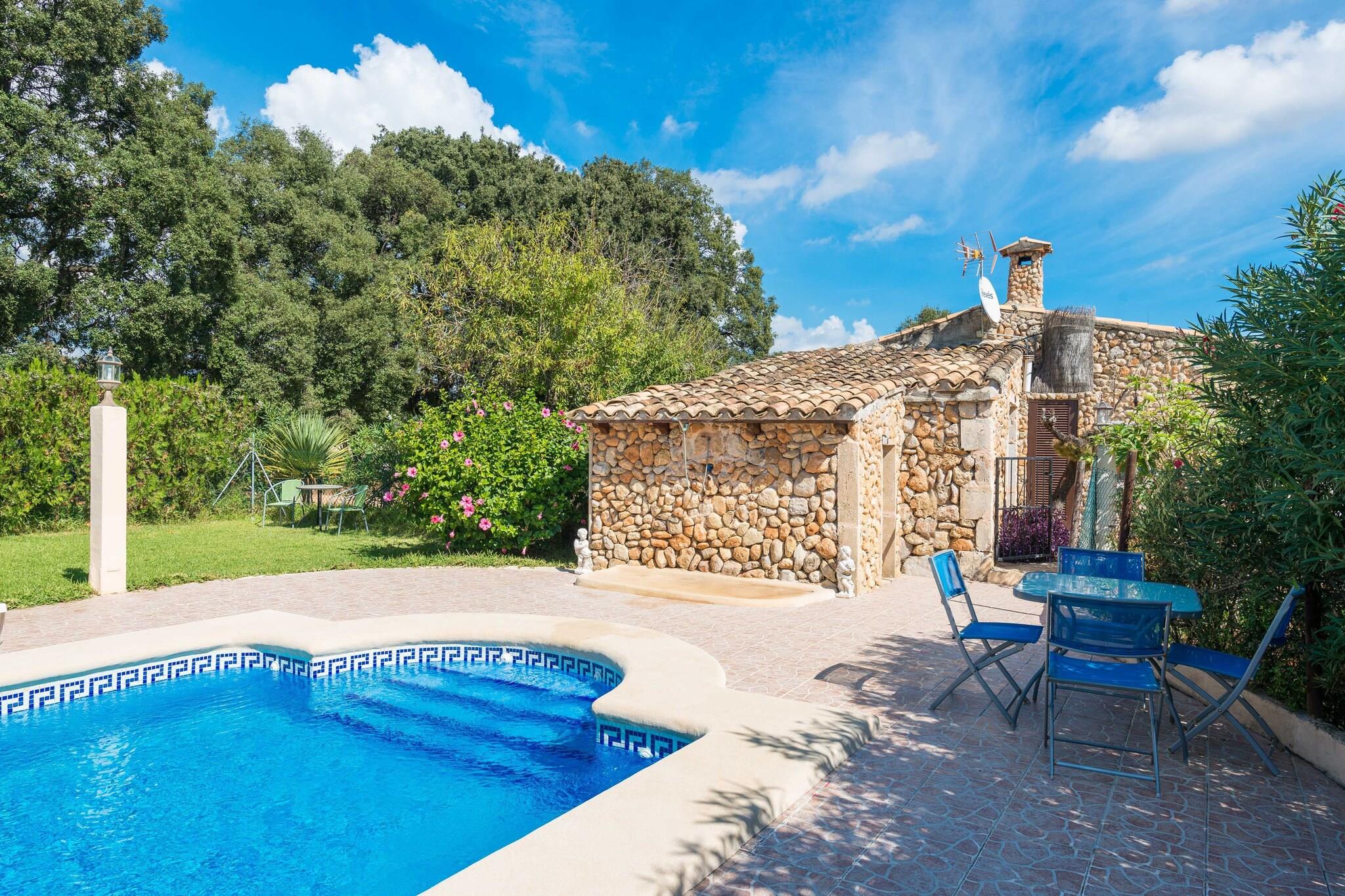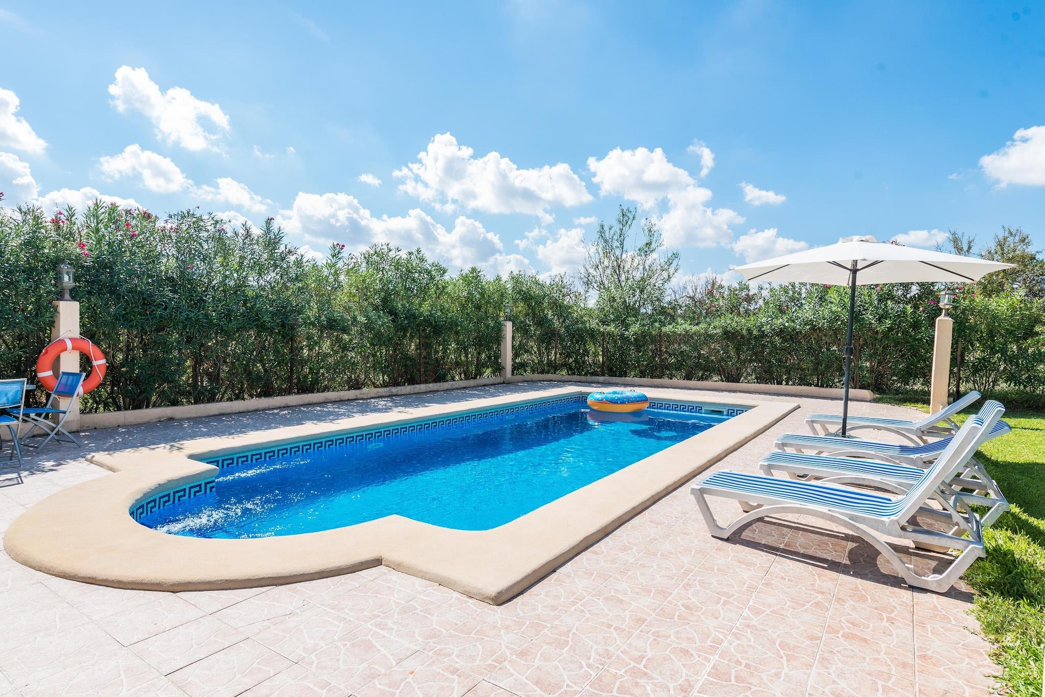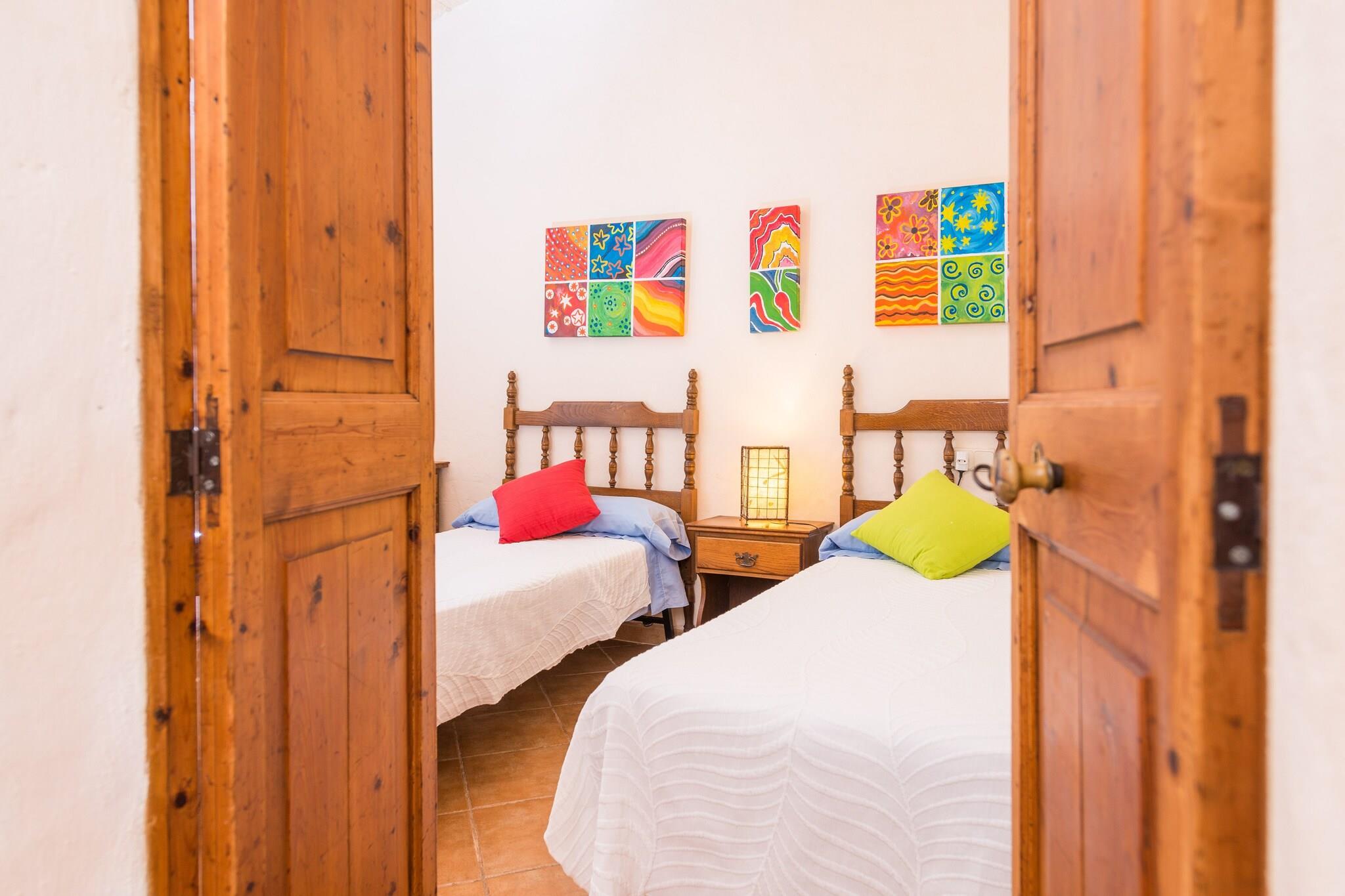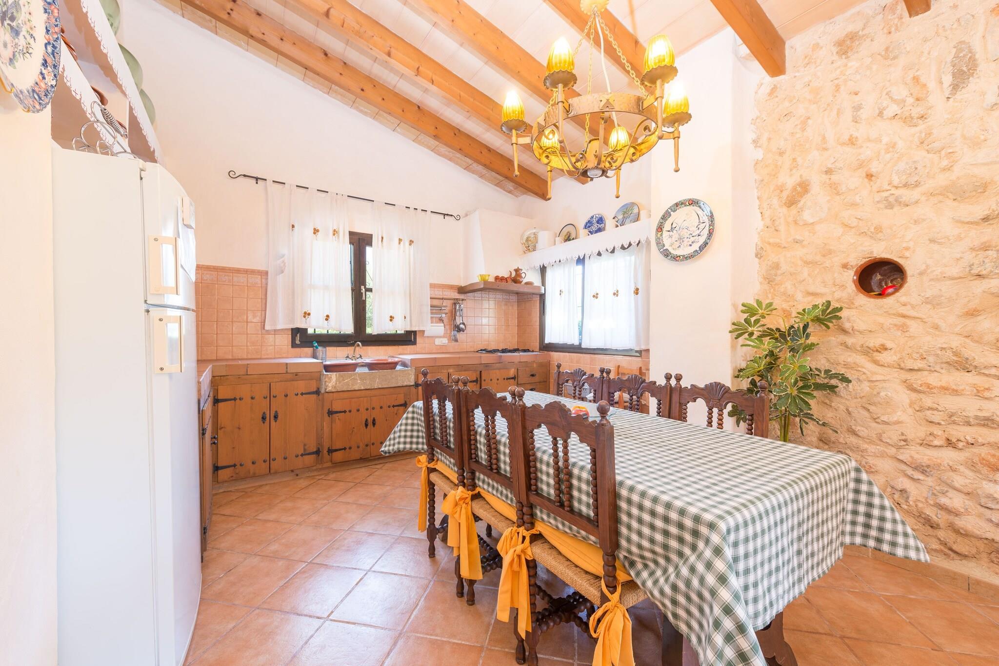 Villa med fredfyldt charme, denne bolig tilbyder en rolig have prydet med frodige grønne områder, ideel til afslapning. Ejendommen har en saltvandspool, der måler 9 x 4 meter, med en dybde fra 1,2 til 1,9 meter, omgivet af fire liggestole, en parasol og en udendørs bruser. Gæsterne kan nyde udendørs spisning på den rummelige veranda, der er udstyret til grillmad, mens en svingende sofa giver et hyggeligt sted at slappe af med et glas vin. Denne villa kan rumme op til fire gæster komfortabelt og er ikke kæledyrsvenlig. Villaen ligger i hjertet af Mallorca og har nem adgang til forskellige attraktioner. Den nærliggende by Búger, som ligger kun 2,4 km væk, byder på vigtige faciliteter, herunder supermarkeder, barer og restauranter. For dem, der søger stranddage, ligger fantastiske kyster som Puerto de Alcúdia og Playa de Muro cirka 18,5 km væk, kendt for deres krystalklare vand og bløde sand. De maleriske landsbyer Pollensa og Alcúdia er også inden for rækkevidde, hvilket gør det nemt at fordybe sig i den lokale kultur. Ejendommen er bekvemt placeret 43,6 km fra Son Sant Joan Lufthavn og har adgang til offentlig transport, med det nærmeste busstoppested kun 1,9 km væk. Indvendigt fremviser villaen traditionel mallorcansk arkitektur med naturstensvægge og moderne bekvemmeligheder. Den rummelige opholdsstue har en pejs og er kombineret med spise- og køkkenpladsen, hvilket fremmer en fælles atmosfære. Køkkenet er udstyret med gaskomfur, perfekt til at tilberede måltider, mens du nyder satellit-tv. Som reaktion på Coronavirus (COVID-19) er yderligere sikkerheds- og sanitære foranstaltninger i kraft på denne ejendom.