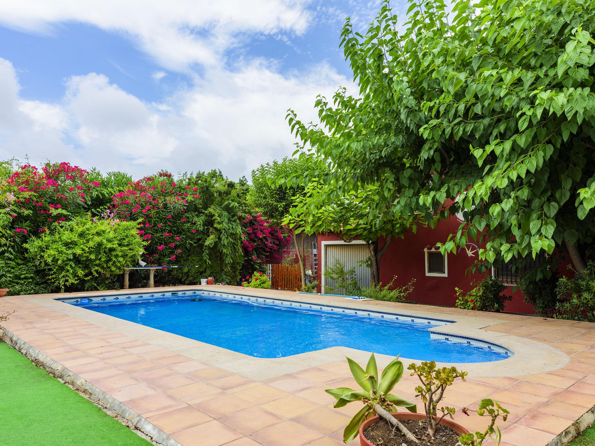 Comfortable house "La Alqueria de Jordi". In the district of Playa de Burriana, in a quiet, sunny position, 700 m from the sea, 700 m from the beach. For shared use: garden (fenced) with trees, swimming pool (8 x 4 m, depth 50 - 200 cm, seasonal availability: 01.Jun. - 30.Sep.). Outdoor shower, parking at the house. Supermarket 1 km, restaurant, bar, café 400 m, bus stop 250 m, railway station 9 km, sandy beach "Playa L'Arenal". On the estate animal husbandry. Please note: the owner lives on the same property.