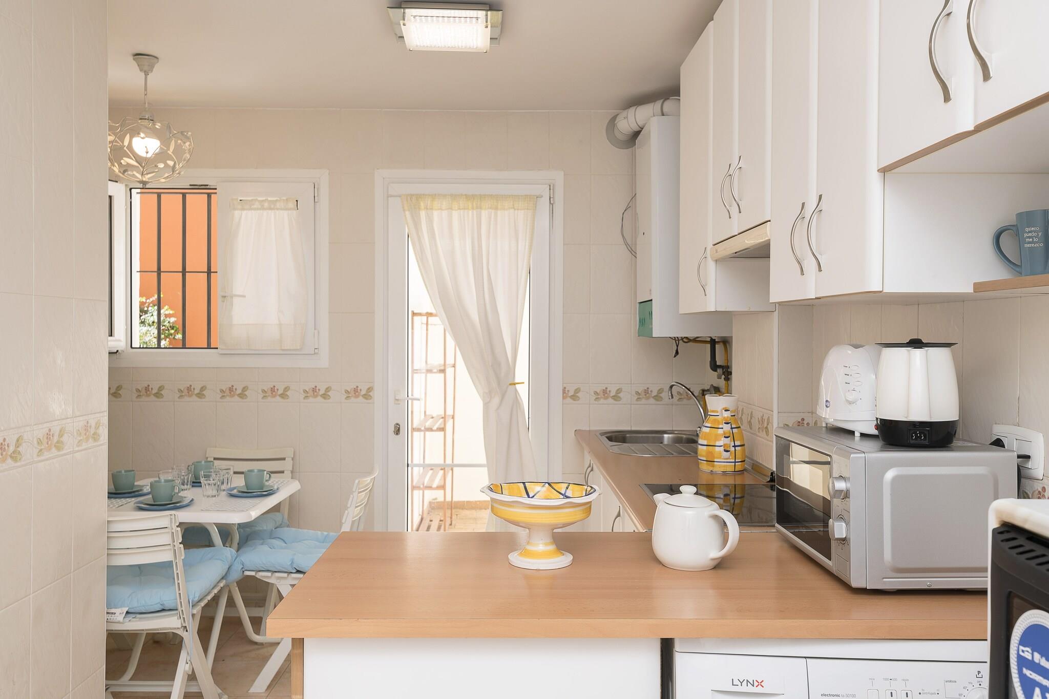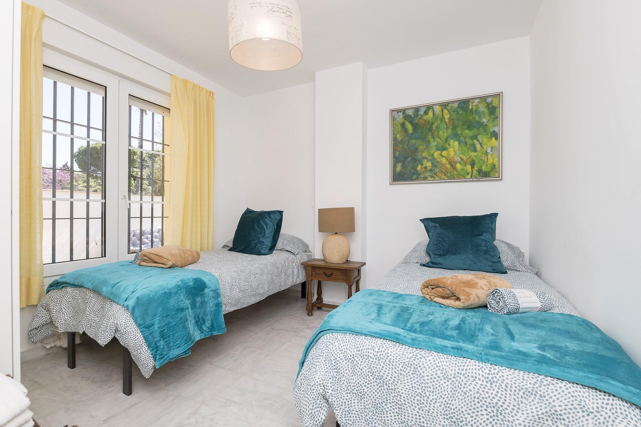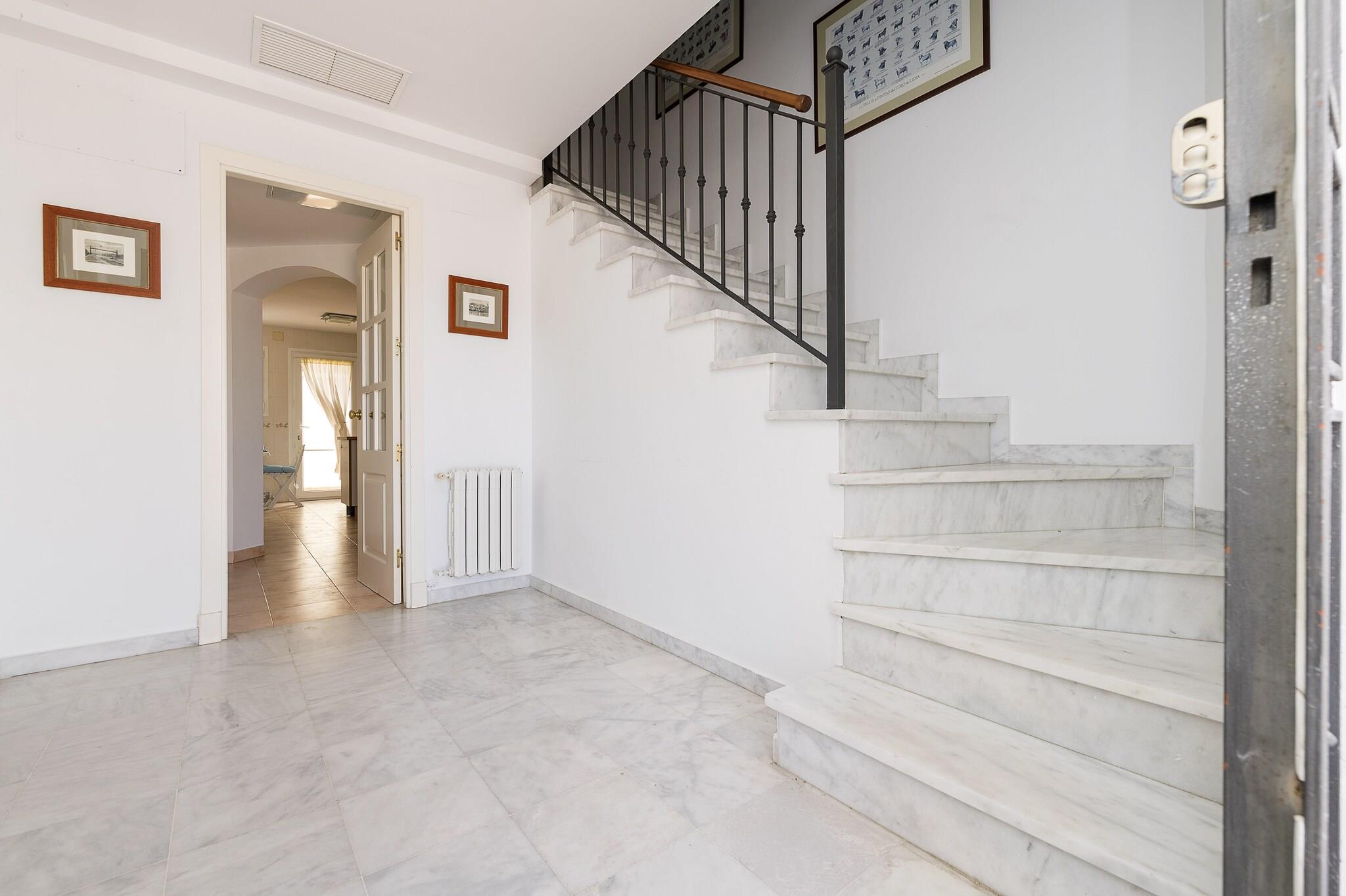 Afslappet kystliv Dette rummelige rækkehus i tre niveauer kombinerer komfort med et indbydende design, og byder på en møbleret terrasse til udendørs spisning og en fælles sæsonåben pool kun få skridt væk. Interiøret er omhyggeligt indrettet med en lys stue med Smart TV, aircondition og en sovesofa til ekstra gæster. Det fuldt udstyrede køkken gør måltidet enkelt, mens de fem airconditionerede soveværelser giver fleksibilitet - ideel til familier eller grupper. Flere badeværelser sikrer bekvemmelighed, herunder to med badekar og to med bruser. Strande og attraktioner Beliggende kun 2,5 km fra Playa de las Redes og tæt på Valdelagrana, tilbyder huset nem adgang til gyldent sand, sejlads og afslappede vandreture ved vandet. En kort køretur tager dig til det historiske slot San Marcos, vingården Osborne og de pulserende gader i Cádiz, kun 20 minutter væk. Golfspillere kan nyde den nærliggende Rota Club de Golf, mens vinentusiaster vil sætte pris på Jerez-vinruten. Med parkering til to biler og nærliggende busforbindelser er det nemt og stressfrit at udforske Costa de la Luz. Lokale smagsoplevelser i nærheden Kvarteret bringer autentisk andalusisk spisning inden for gåafstand, fra frisk fisk og skaldyr og tapasbarer til hyggelige caféer. Gå en tur gennem brostensbelagte gader for at nyde pescaíto frito, eller parre regionale retter med sherry fra lokale bodegaer. Uanset om du slapper af derhjemme eller opdager lokale smagsoplevelser, gør dette rækkehus hver dag af dit ophold mindeværdig.