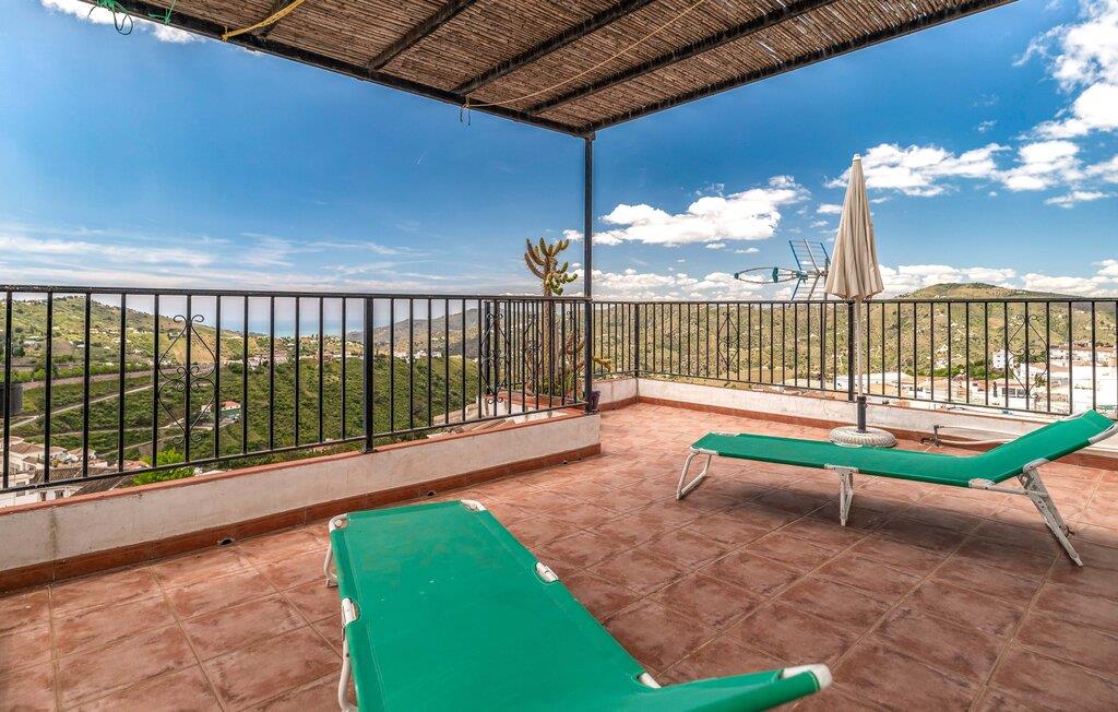 Dette rummelige rækkehus byder jer velkommen med et hyggeligt og individuelt møbleret interiør, hvor en fortryllende udsigt over landskabet venter jer i udkanten af ??naturparken Sierras de Tejeda, Almijara y Alhama. Tilbered lækre tapas med friske råvarer fra markedet, planlæg jeres udflugter i den stilfuldt oplyste spisestue, brug jeres fritid på at slappe af og læse eller afslut en begivenhedsrig dag med en spilleaften på sofaen.