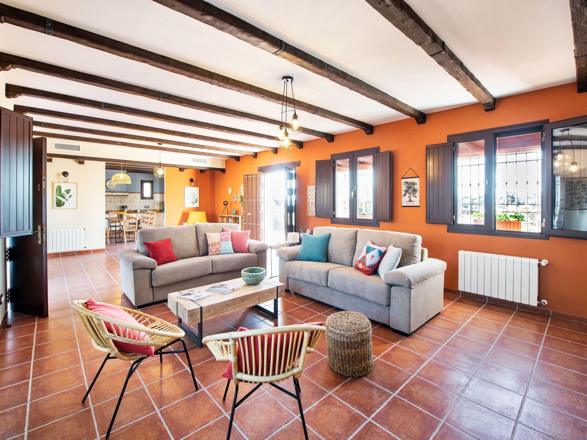 The house has capacity for 8 people, distributed in four double rooms, with the following facilities and services: - Spacious living room with wood-burning fireplace. - Fully equipped kitchen-dining room. - Four bedrooms with their own bathroom. One of them has a bathroom fully adapted for disabled people. - Central heating and air conditioning in every room. - Salt water swimming pool. - Barbecue and wood oven at the back of the house. A second barbecue with wood-burning cooker located in an open space at the front of the house. - Large terrace in front of the kitchen-dining room and living room with wonderful views. - Children's playground. - Football pitch. - Baby bath and high chair for children. - Vegetable garden. - Mobile phone coverage and Internet access via a Wifi network. - Change of bed linen and towels every 3 nights. - Pets allowed (dogs and cats only).