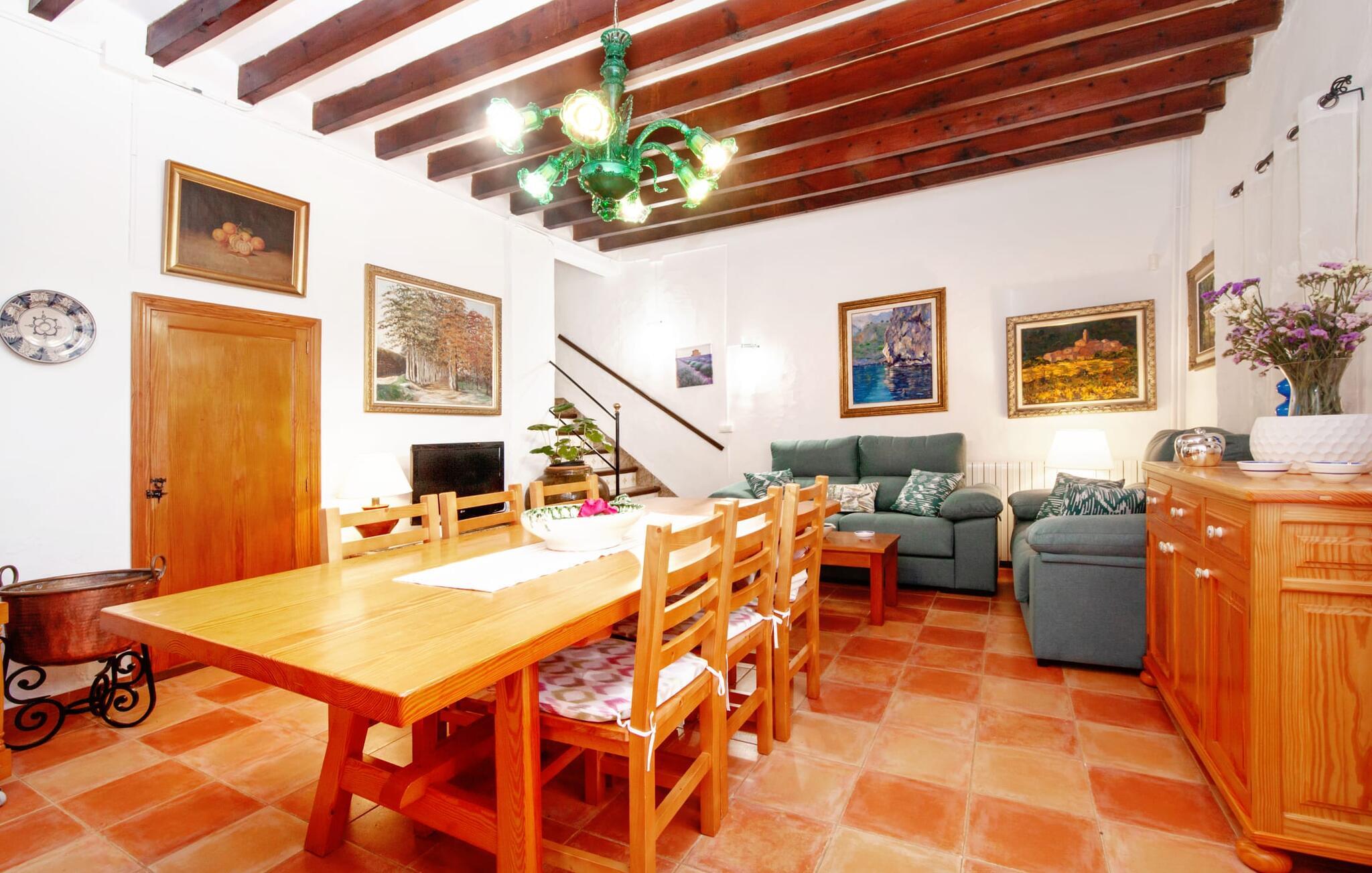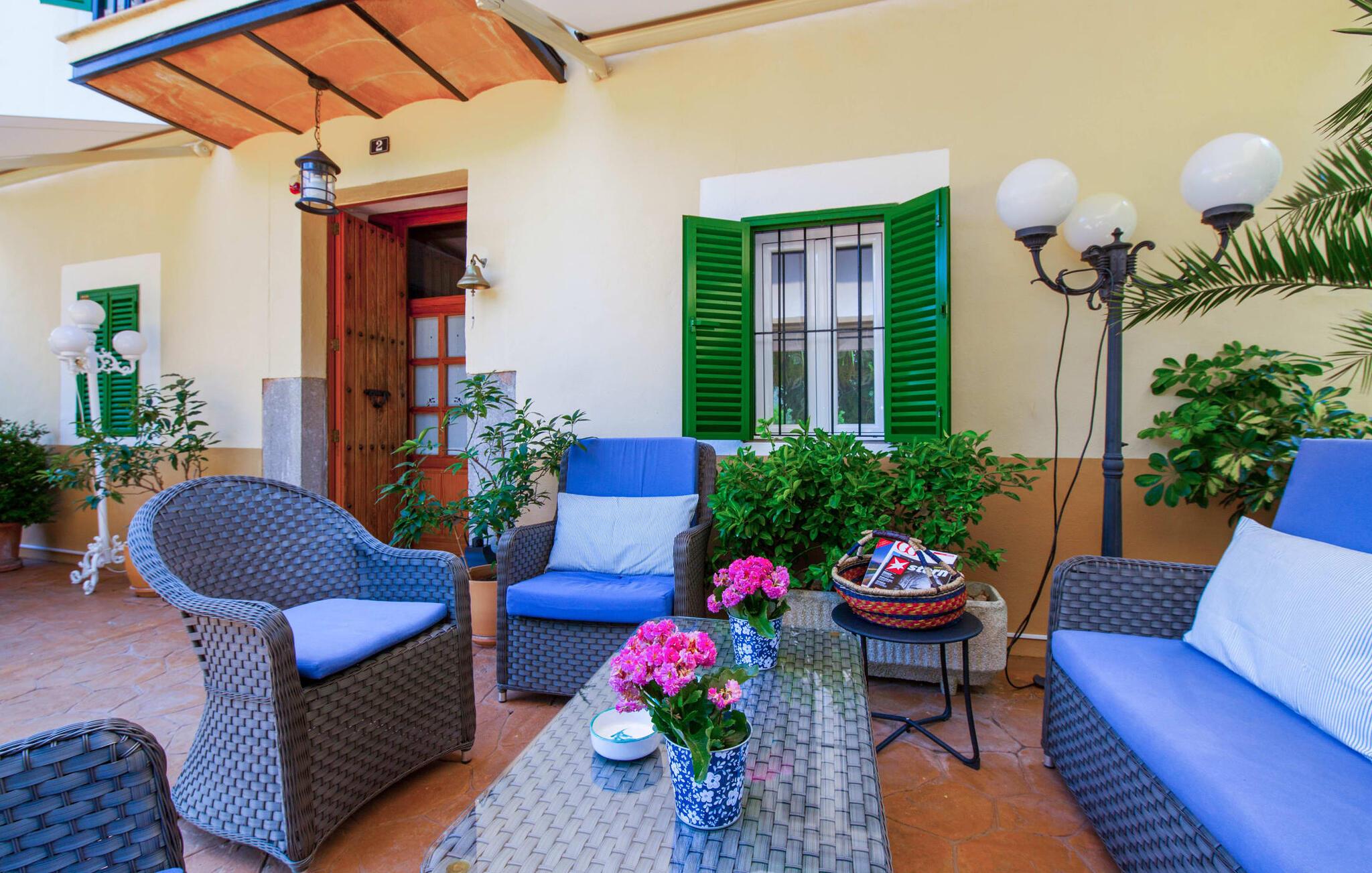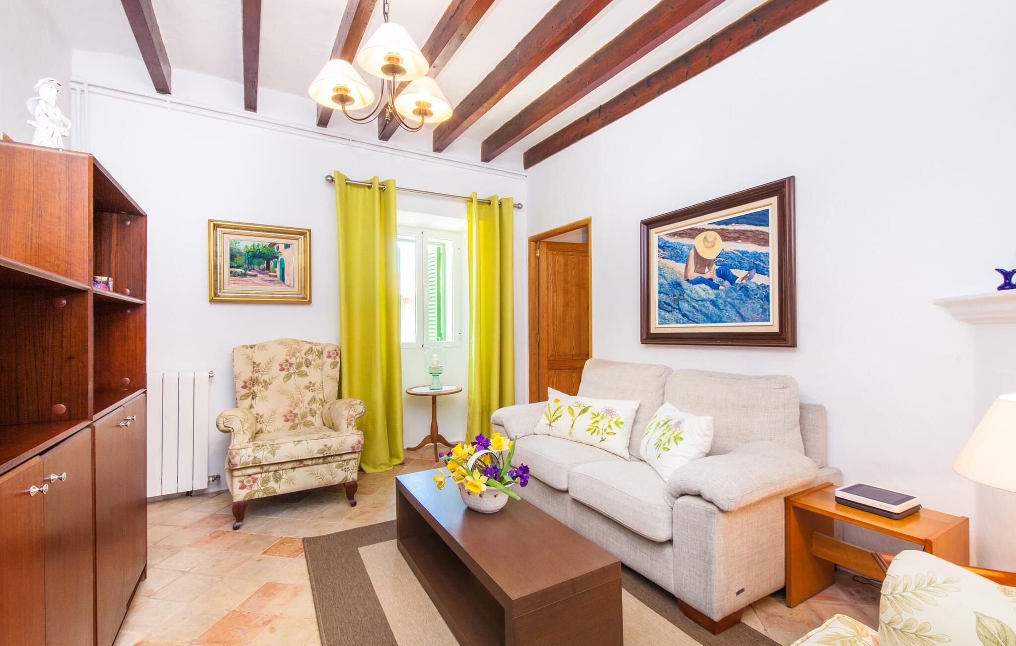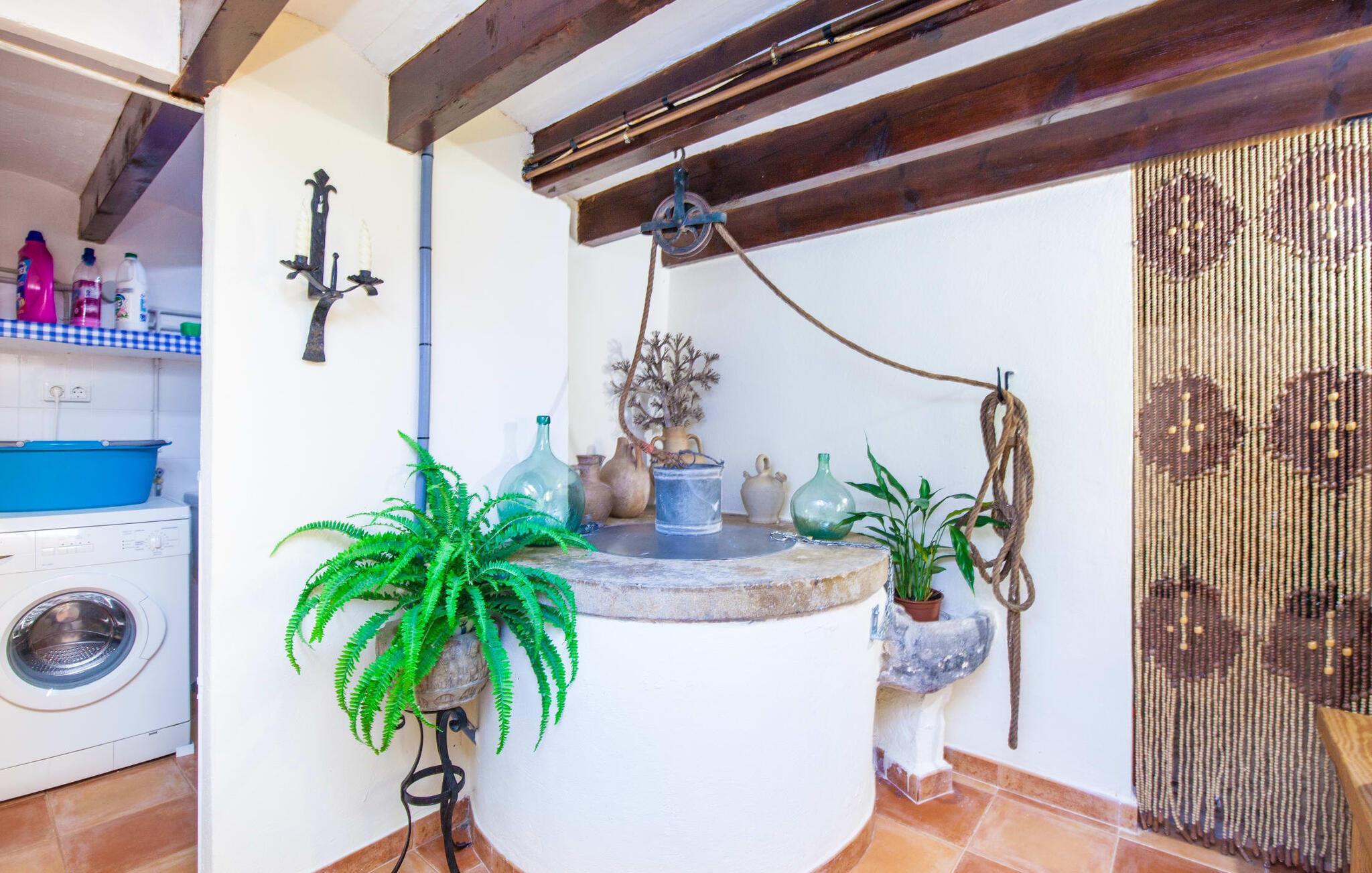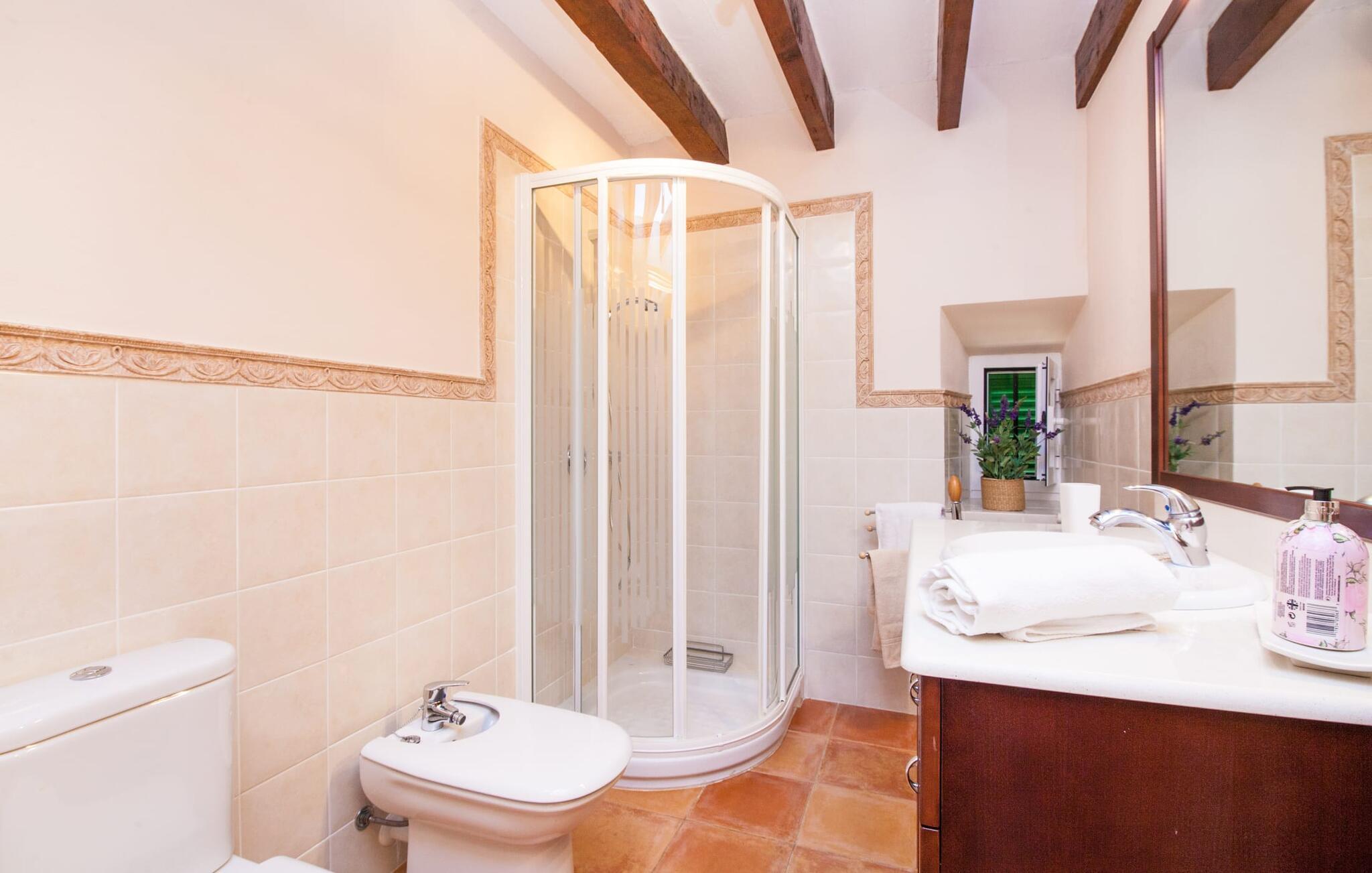 En sand sommerdrøm. Den solgule gamle bygning med hvide trim og æblegrønne skodder ser ud til at observere det afslappede liv i landsbyen Esporles. Det skyldes, at villaen ligger lidt over byen på en bjergskråning, hvilket giver jer en vidunderlig udsigt over den rolige by. Naturstensvægge blander sig i bjerget og skaber et smukt ensemble af terrasserede blomsterbede med frodige buske, buske og høje træer, herunder palmer. Poolen er skjult og skjult kun få meter fra huset. I kan nå det via en romantisk naturlig havesti. Der vil I finde en stor pool med et bugtende mosaikdesign og en omgivende solterrasse. Hvis I gerne vil slappe af på de komfortable liggestole efter en forfriskende svømmetur, er parasoller til rådighed. For enden af poolen er der et skyggefuldt område med en lounge - ideel til at læse en god bog. Det udendørs badeværelse gør det ekstra nemt at opholde sig udenfor hele dagen. Selve huset byder også på adskillige siddemuligheder med polyrattan-møbler og en spiseplads, der komplementerer murstensgrillen. I kan tilberede lækre BBQ-retter uden tidspres ved at bruge de aromatiske ingredienser, som den baleariske ø har at byde på. Det autentiske sommerhus formidler en følelse af mallorcansk ægthed ved at kombinere flair af et landsted med moderne standarder. Det gælder også indretningen, som består af komfortable siddepladser og træ med en varm farve. Dekorative gårdartikler og kærlige detaljer kendetegner den behagelige traditionelle flair. Stueetagen udgør det generelle opholdsrum med stue, stue og spisestue, badeværelse og køkken. Sidstnævnte er fuldt udstyret til jeres personlige komfort - og det lille siddeområde lavet af murstensbænke tilbyder et utroligt hyggeligt hjørne til at chatte med jeres medrejsende. Dette fører til en ubegrænset følelse af at bo og umiddelbar velvære, som også fortsætter i de tre soveværelser på øverste etage. Udover smukke sengerammer er der masser af opbevaringsplads til jeres feriegarderobe. Der er også to yderligere fuldt renoverede bruserum (et en-suite) til rådighed på dette niveau, så en familie eller en gruppe af venner ikke behøver at gå på kompromis. Der er meget mere at opdage på "C'an Pieres" - vi overlader resten til jer. En gotisk kirke, en landejendom med en naturlig kilde brugt som museum, en flod med talrige broer og utallige egeskove inviterer jer til at tage vandreskoene på. Dette er, hvad Esporles inkarnerer, og derfor er den indbydende villa det ideelle udgangspunkt, især for naturelskere, for at udforske Tramuntana-bjergene. Nogle gode restauranter og smukke butikker supplerer den gode infrastruktur. Takket være sin centrale beliggenhed tæt på landevejen, som kun er hørbar i en bestemt vindretning, kan I nå Valdemossa, kunstnerbyen Deià, og kysten med dens rolige havne og maleriske strande via en spektakulært smuk køretur gennem serpentine veje. Med alt, hvad det har at tilbyde, hjælper "C'an Pieres" jer gerne med at opleve skønheden og originaliteten på Mallorca i al dens mangfoldighed. Villaen "C'an Pieres" ligger midt i det romantiske, vilde bjerglandskab over den smukke bjerglandsby Esporles. Herfra kan I nyde en vidunderlig udsigt over bjergene og byen, som også er i gåafstand til jeres indkøb. Det kan selvfølgelig også lade sig gøre ved at besøge det ugentlige marked i det populære Valdemossa. Fantastiske badebugter som Port de Canonge eller Puta de sa Galera ligger 9 km derfra.