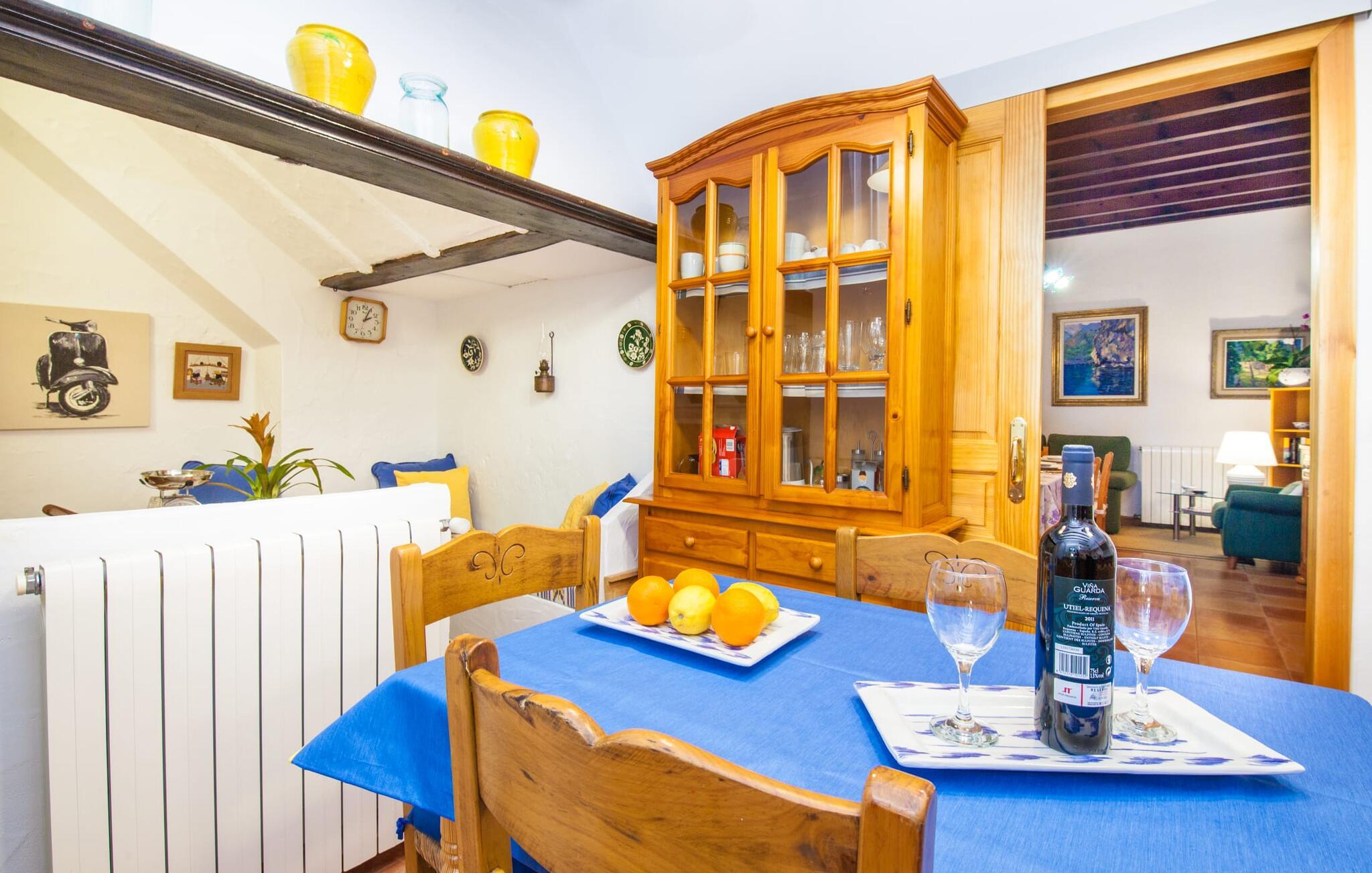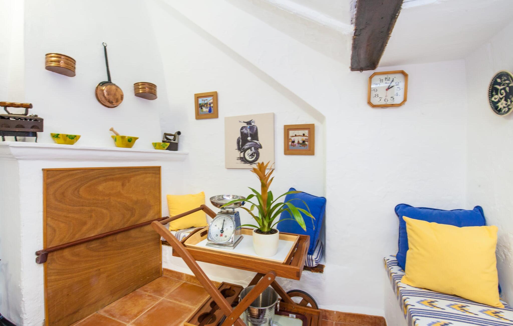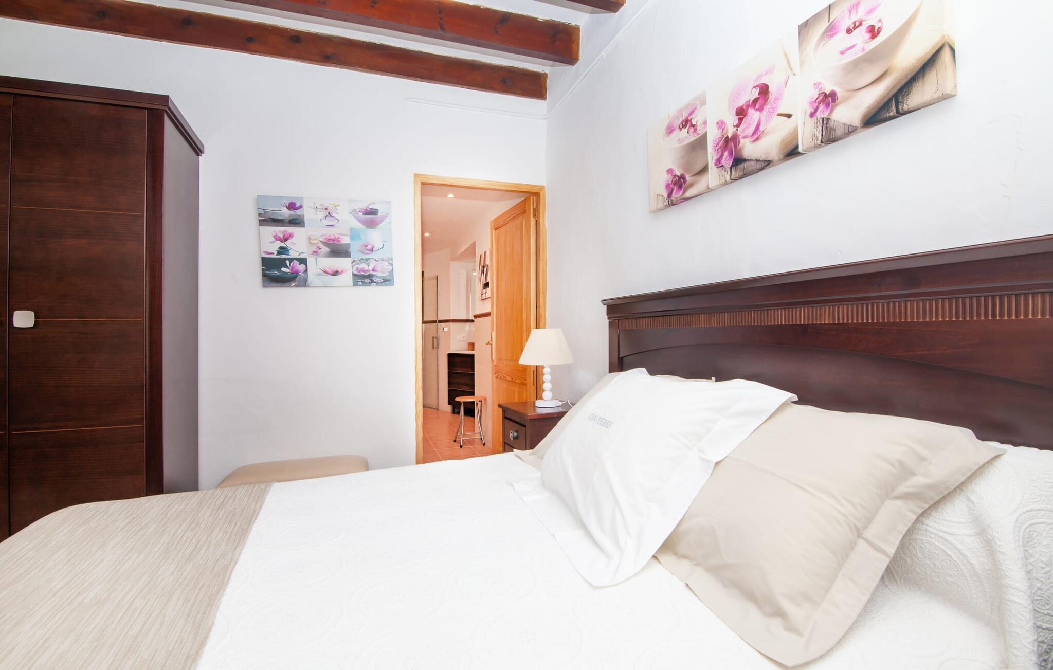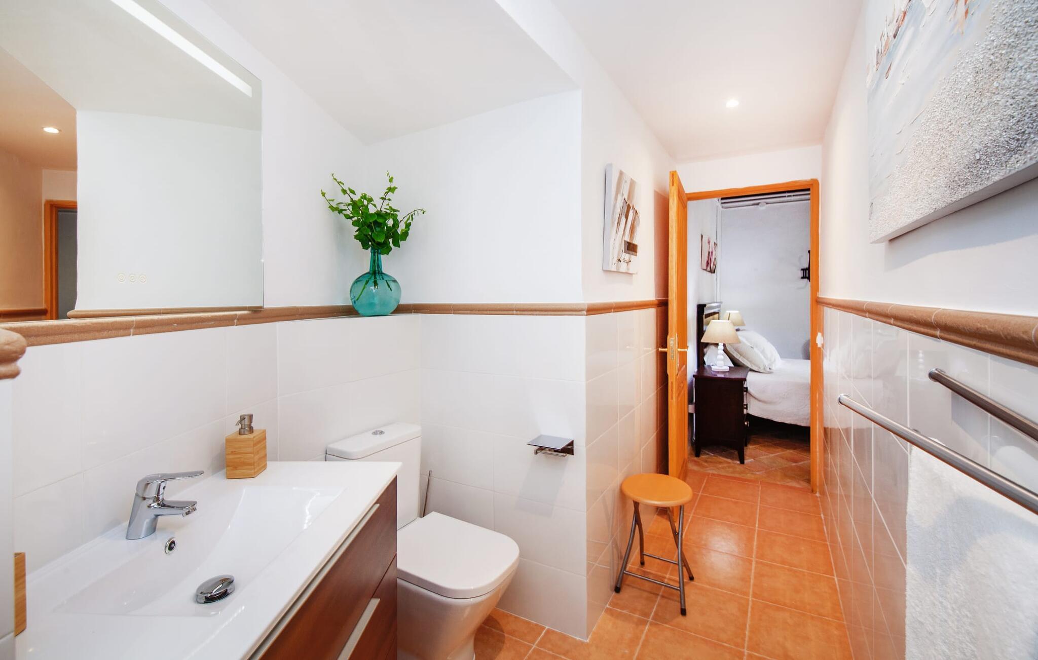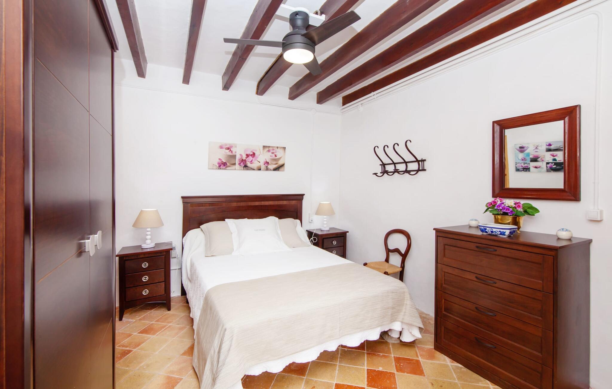 En sand sommerdrøm. Den solgule gamle bygning med hvide trim og æblegrønne skodder ser ud til at observere det afslappede liv i landsbyen Esporles. Det skyldes, at villaen ligger lidt over byen på en bjergskråning, hvilket giver jer en vidunderlig udsigt over den rolige by. Naturstensvægge blander sig i bjerget og skaber et smukt ensemble af terrasserede blomsterbede med frodige buske, buske og høje træer, herunder palmer. Poolen er skjult og skjult kun få meter fra huset. I kan nå det via en romantisk naturlig havesti. Der vil I finde en stor pool med et bugtende mosaikdesign og en omgivende solterrasse. Hvis I gerne vil slappe af på de komfortable liggestole efter en forfriskende svømmetur, er parasoller til rådighed. For enden af poolen er der et skyggefuldt område med en lounge - ideel til at læse en god bog. Det udendørs badeværelse gør det ekstra nemt at opholde sig udenfor hele dagen. Selve huset byder også på adskillige siddemuligheder med polyrattan-møbler og en spiseplads, der komplementerer murstensgrillen. I kan tilberede lækre BBQ-retter uden tidspres ved at bruge de aromatiske ingredienser, som den baleariske ø har at byde på. Det autentiske sommerhus formidler en følelse af mallorcansk ægthed ved at kombinere flair af et landsted med moderne standarder. Det gælder også indretningen, som består af komfortable siddepladser og træ med en varm farve. Dekorative gårdartikler og kærlige detaljer kendetegner den behagelige traditionelle flair. Stueetagen udgør det generelle opholdsrum med stue, stue og spisestue, badeværelse og køkken. Sidstnævnte er fuldt udstyret til jeres personlige komfort - og det lille siddeområde lavet af murstensbænke tilbyder et utroligt hyggeligt hjørne til at chatte med jeres medrejsende. Dette fører til en ubegrænset følelse af at bo og umiddelbar velvære, som også fortsætter i de tre soveværelser på øverste etage. Udover smukke sengerammer er der masser af opbevaringsplads til jeres feriegarderobe. Der er også to yderligere fuldt renoverede bruserum (et en-suite) til rådighed på dette niveau, så en familie eller en gruppe af venner ikke behøver at gå på kompromis. Der er meget mere at opdage på "C'an Pieres" - vi overlader resten til jer. En gotisk kirke, en landejendom med en naturlig kilde brugt som museum, en flod med talrige broer og utallige egeskove inviterer jer til at tage vandreskoene på. Dette er, hvad Esporles inkarnerer, og derfor er den indbydende villa det ideelle udgangspunkt, især for naturelskere, for at udforske Tramuntana-bjergene. Nogle gode restauranter og smukke butikker supplerer den gode infrastruktur. Takket være sin centrale beliggenhed tæt på landevejen, som kun er hørbar i en bestemt vindretning, kan I nå Valdemossa, kunstnerbyen Deià, og kysten med dens rolige havne og maleriske strande via en spektakulært smuk køretur gennem serpentine veje. Med alt, hvad det har at tilbyde, hjælper "C'an Pieres" jer gerne med at opleve skønheden og originaliteten på Mallorca i al dens mangfoldighed. Villaen "C'an Pieres" ligger midt i det romantiske, vilde bjerglandskab over den smukke bjerglandsby Esporles. Herfra kan I nyde en vidunderlig udsigt over bjergene og byen, som også er i gåafstand til jeres indkøb. Det kan selvfølgelig også lade sig gøre ved at besøge det ugentlige marked i det populære Valdemossa. Fantastiske badebugter som Port de Canonge eller Puta de sa Galera ligger 9 km derfra.
