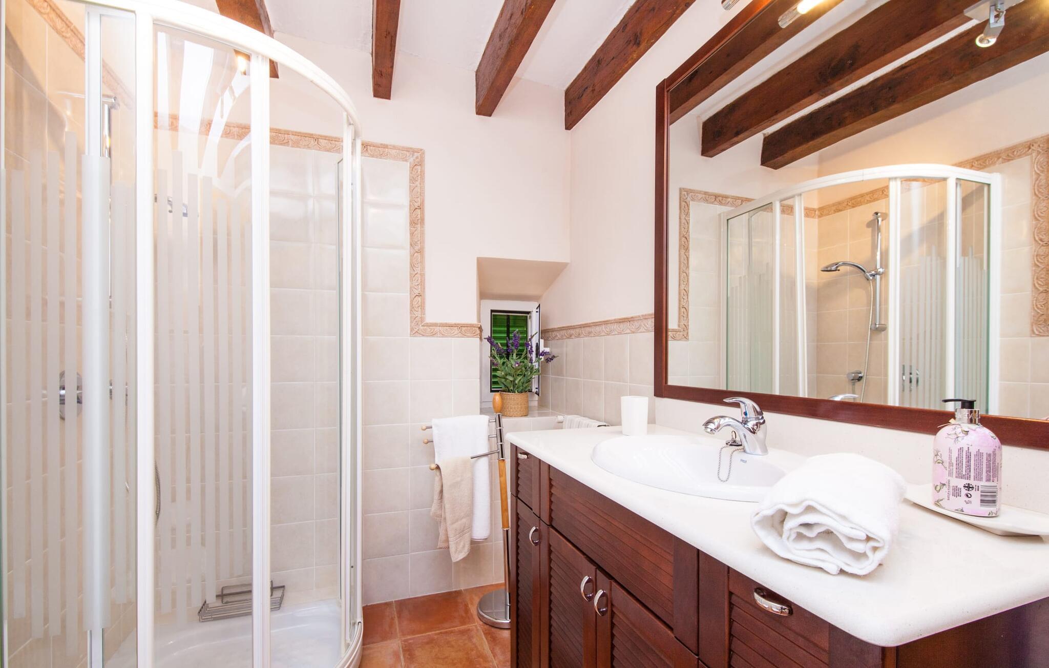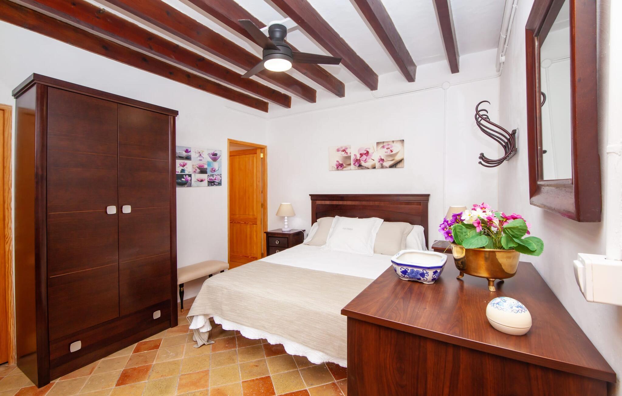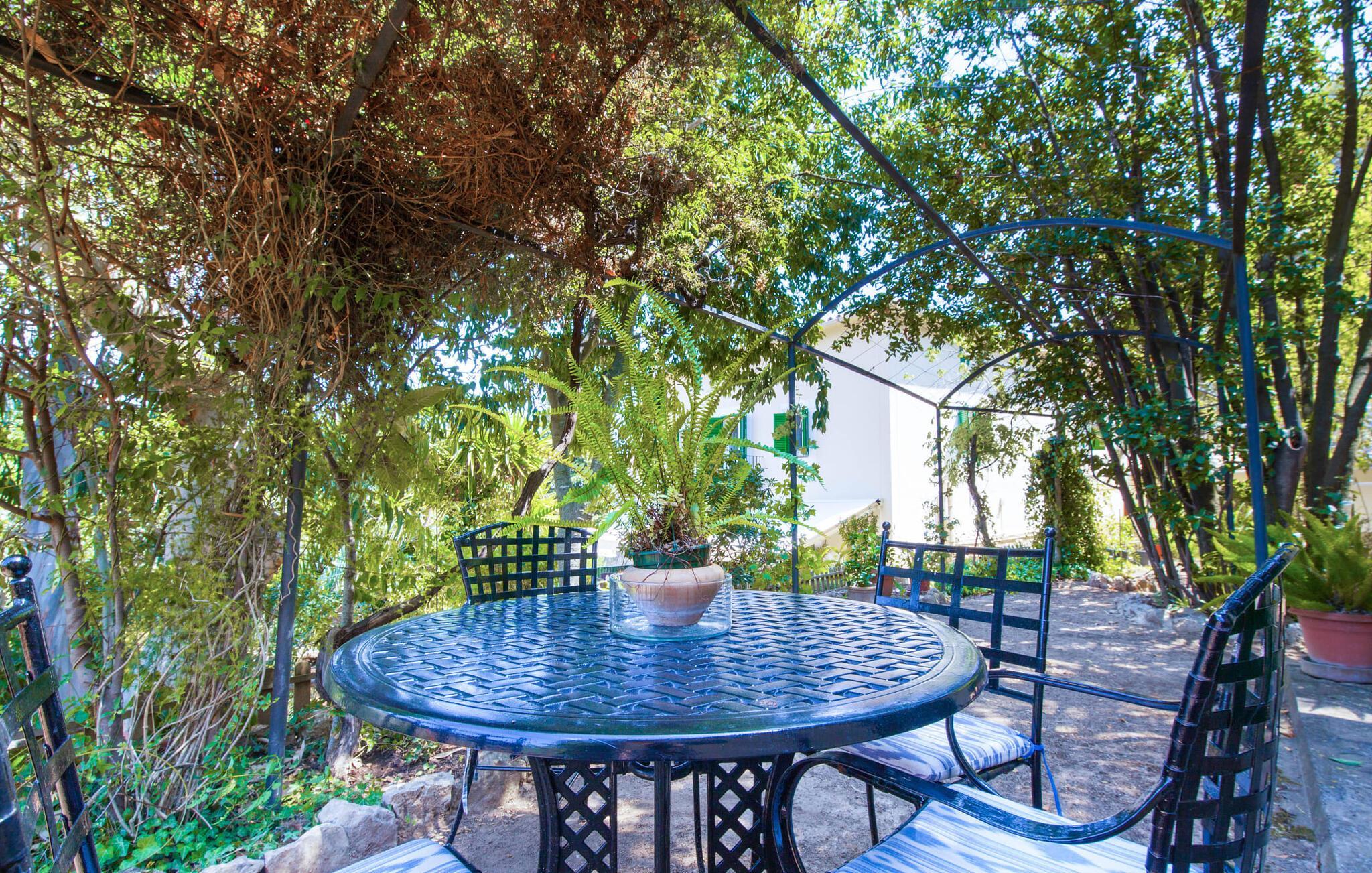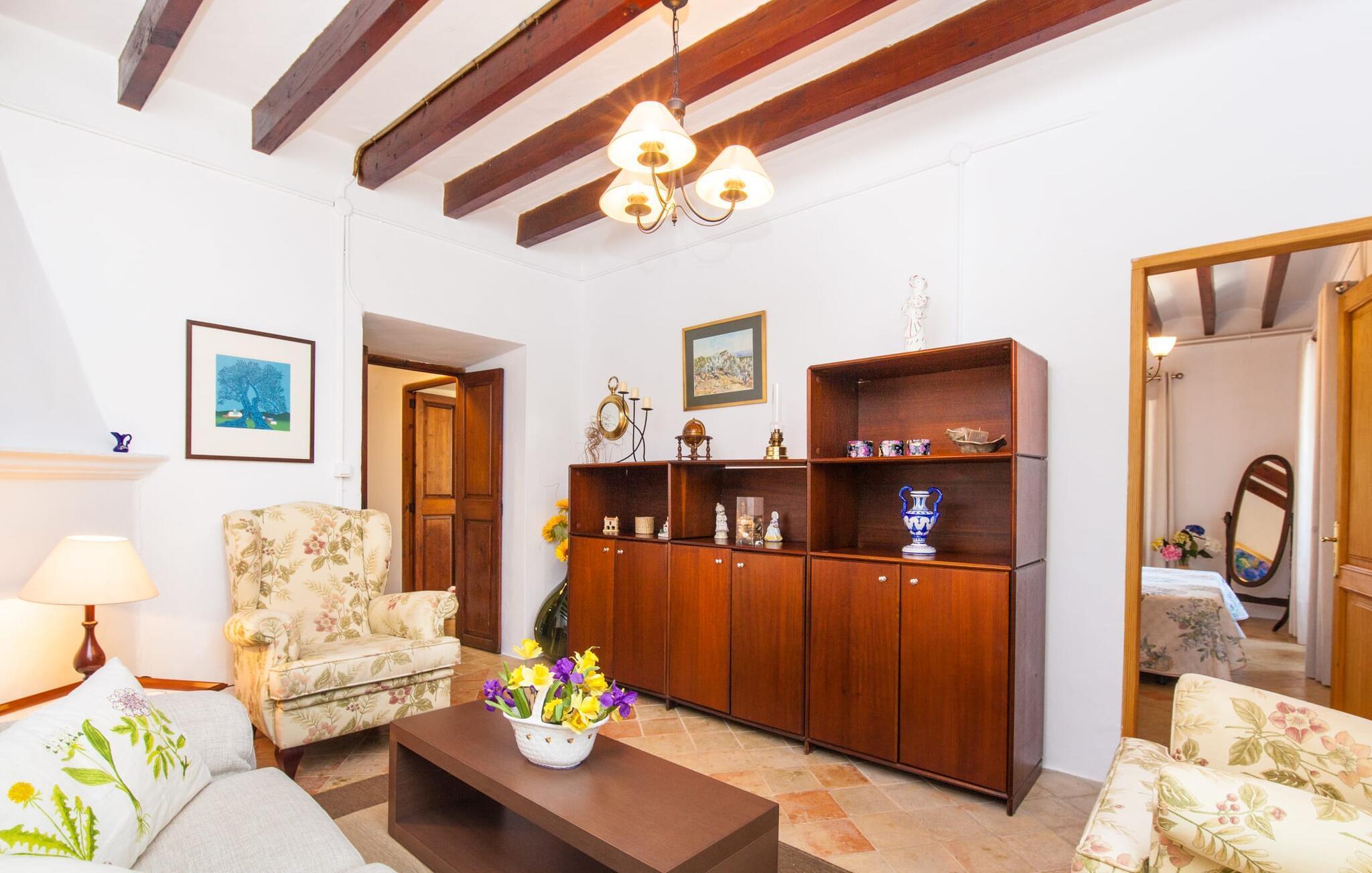 En sand sommerdrøm. Den solgule gamle bygning med hvide trim og æblegrønne skodder ser ud til at observere det afslappede liv i landsbyen Esporles. Det skyldes, at villaen ligger lidt over byen på en bjergskråning, hvilket giver dig en vidunderlig udsigt over den rolige by. Naturstensvægge blander sig i bjerget og skaber et smukt ensemble af terrasserede blomsterbede med frodige buske, buske og høje træer, herunder palmer. Poolen er skjult og skjult kun få meter fra huset. Du kan nå det via en romantisk naturlig havesti. Der vil du finde en stor pool med et bugtende mosaikdesign og en omgivende solterrasse. Hvis du gerne vil slappe af på de komfortable liggestole efter en forfriskende svømmetur, er parasoller til rådighed. For enden af poolen er der et skyggefuldt område med en lounge - ideel til at læse en god bog. Det udendørs badeværelse gør det ekstra nemt at opholde sig udenfor hele dagen. Selve huset byder også på adskillige siddemuligheder med polyrattan-møbler og en spiseplads, der komplementerer murstensgrillen. Du kan tilberede lækre BBQ-retter uden tidspres ved at bruge de aromatiske ingredienser, som den baleariske ø har at byde på. Dette er et Fincallorca feriehus. Det autentiske sommerhus formidler en følelse af mallorcansk ægthed ved at kombinere flair af et landsted med moderne standarder. Det gælder også indretningen, som består af komfortable siddepladser og træ med en varm farve. Dekorative gårdartikler og kærlige detaljer kendetegner den behagelige traditionelle flair. Stueetagen udgør det generelle opholdsrum med stue, stue og spisestue, badeværelse og køkken. Sidstnævnte er fuldt udstyret til din personlige komfort - og det lille siddeområde lavet af murstensbænke tilbyder et utroligt hyggeligt hjørne til at chatte med dine medrejsende. Dette fører til en ubegrænset følelse af at bo og umiddelbar velvære, som også fortsætter i de tre soveværelser på øverste etage. Udover smukke sengerammer er der masser af opbevaringsplads til din feriegarderobe. Der er også to yderligere fuldt renoverede bruserum (et en-suite) til rådighed på dette niveau, så en familie eller en gruppe af venner ikke behøver at gå på kompromis. Der er meget mere at opdage på "C'an Pieres" - vi overlader resten til dig. En gotisk kirke, en landejendom med en naturlig kilde brugt som museum, en flod med talrige broer og utallige egeskove inviterer dig til at tage vandreskoene på. Dette er, hvad Esporles inkarnerer, og derfor er den indbydende villa det ideelle udgangspunkt, især for naturelskere, for at udforske Tramuntana-bjergene. Nogle gode restauranter og smukke butikker supplerer den gode infrastruktur. Takket være sin centrale beliggenhed tæt på landevejen, som kun er hørbar i en bestemt vindretning, kan du nå Valdemossa, kunstnerbyen Deià, og kysten med dens rolige havne og maleriske strande via en spektakulært smuk køretur gennem serpentine veje. Med alt, hvad det har at tilbyde, hjælper "C'an Pieres" dig gerne med at opleve skønheden og originaliteten på Mallorca i al dens mangfoldighed. Villaen "C'an Pieres" ligger midt i det romantiske, vilde bjerglandskab over den smukke bjerglandsby Esporles. Herfra kan du nyde en vidunderlig udsigt over bjergene og byen, som også er i gåafstand til dine indkøb. Det kan selvfølgelig også lade sig gøre ved at besøge det ugentlige marked i det populære Valdemossa. Fantastiske badebugter såsom Port de Canonge eller Puta de sa Galera ligger 9 km derfra.