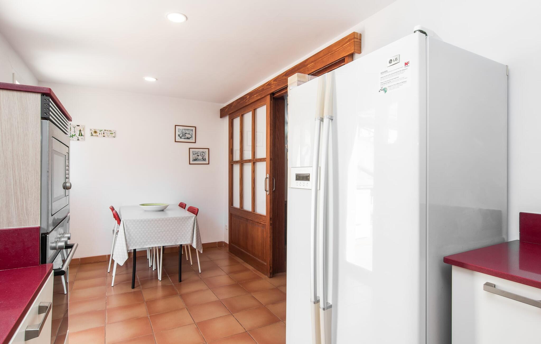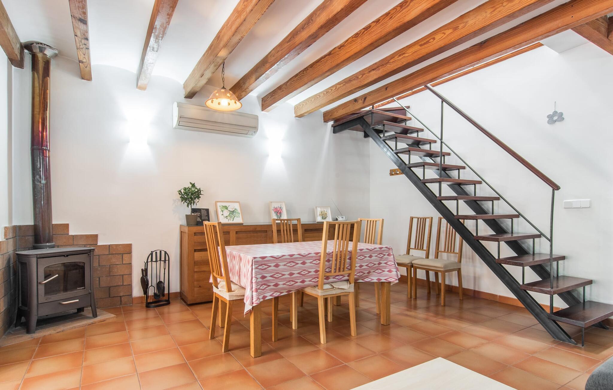 Dette attraktive rækkehus byder på en fantastisk udsigt over den imponerende kulisse af Tramuntana-bjergene. Den bekvemme beliggenhed giver også mulighed for spontane ture uden at skulle bruge bilen. Tag på vandretur i de nærliggende bjerge eller udforsk området på cykel! Hvis I gerne vil tilbringe en dag indendørs, finder I også indbydende steder at slappe af og blive hængende. Balkonen og tagterrassen byder på sidde- og afslapningsmuligheder direkte under Mallorcas himmel. Og hvis I har lyst til at gå en tur gennem landsbyen, skal I bare klatre ned af trapperne og gå. En anden mulighed er at finde et hyggeligt sted i husets rummelige interiør. Den åbne stue og spisestue med TV og pejs byder på flere muligheder. I kan også sidde i det tilstødende køkken. Derudover finder I et fuldt udstyret køkken, perfekt til selvforplejning. Udgangen til altanen er meget praktisk. På denne stueplan er der også et soveværelse med dobbeltseng og et værelse med en barneseng. Her er også et brusebad. På øverste etage er der yderligere to rummelige soveværelser og et badeværelse med bruser og badekar. Grundet det eksisterende varm-kolde klimaanlæg er dette rækkehus behageligt at bo i året rundt. En ferie i dette veludstyrede rækkehus på Mallorca betyder at have al den daglige infrastruktur lige uden for døren. I bor her kun 5 minutters gang fra den smukke bymidte. En række butikker og restauranter med smukke baghaver inviterer jer til at shoppe og slappe af. Stranden i Port de Sóller ligger ca. 5 km væk. En sporvogn, der kører flere gange om dagen, forbinder de to steder.