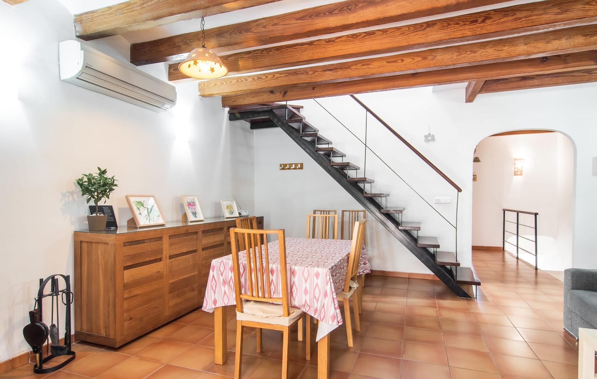 Dette attraktive rækkehus byder på en fantastisk udsigt over den imponerende kulisse af Tramuntana-bjergene. Den bekvemme beliggenhed giver også mulighed for spontane ture uden at skulle bruge bilen. Dette er et Fincallorca feriehus. Tag på vandretur i de nærliggende bjerge eller udforsk området på cykel! Hvis du gerne vil tilbringe en dag indendørs, finder du også indbydende steder at slappe af og blive hængende. Balkonen og tagterrassen byder på sidde- og afslapningsmuligheder direkte under Mallorcas himmel. Og hvis du har lyst til at gå en tur gennem landsbyen, skal du bare klatre ned af trapperne og gå. En anden mulighed er at finde et hyggeligt sted i husets rummelige interiør. Den åbne stue og spisestue med TV og pejs byder på flere muligheder. Du kan også sidde i det tilstødende køkken. Derudover finder du et fuldt udstyret køkken, perfekt til selvforplejning. Udgangen til altanen er meget praktisk. På denne stueplan er der også et soveværelse med dobbeltseng og et værelse med en barneseng. Her er også et brusebad. På øverste etage er der yderligere to rummelige soveværelser og et badeværelse med bruser og badekar. Grundet det eksisterende varm-kolde klimaanlæg er dette rækkehus behageligt at bo i året rundt. En ferie i dette veludstyrede rækkehus på Mallorca betyder at have al den daglige infrastruktur lige uden for døren. Du bor her kun 5 minutters gang fra den smukke bymidte. En række butikker og restauranter med smukke baghaver inviterer dig til at shoppe og slappe af. Stranden i Port de Sóller ligger ca. 5 km væk. En sporvogn, der kører flere gange om dagen, forbinder de to steder.