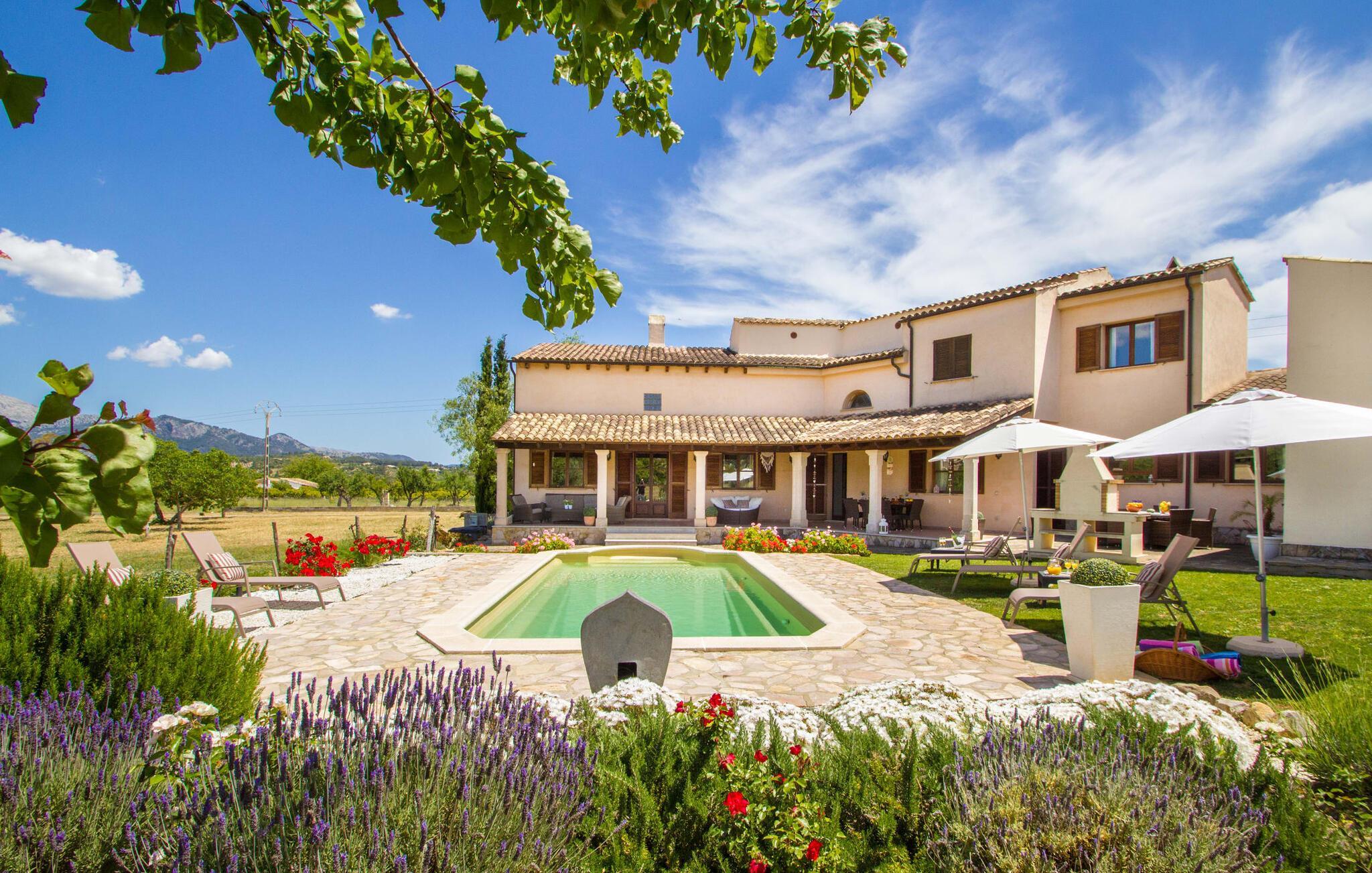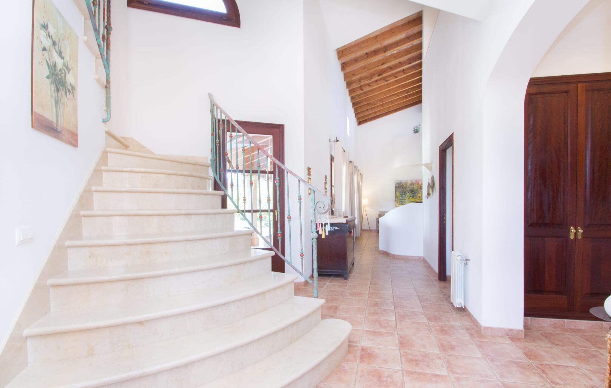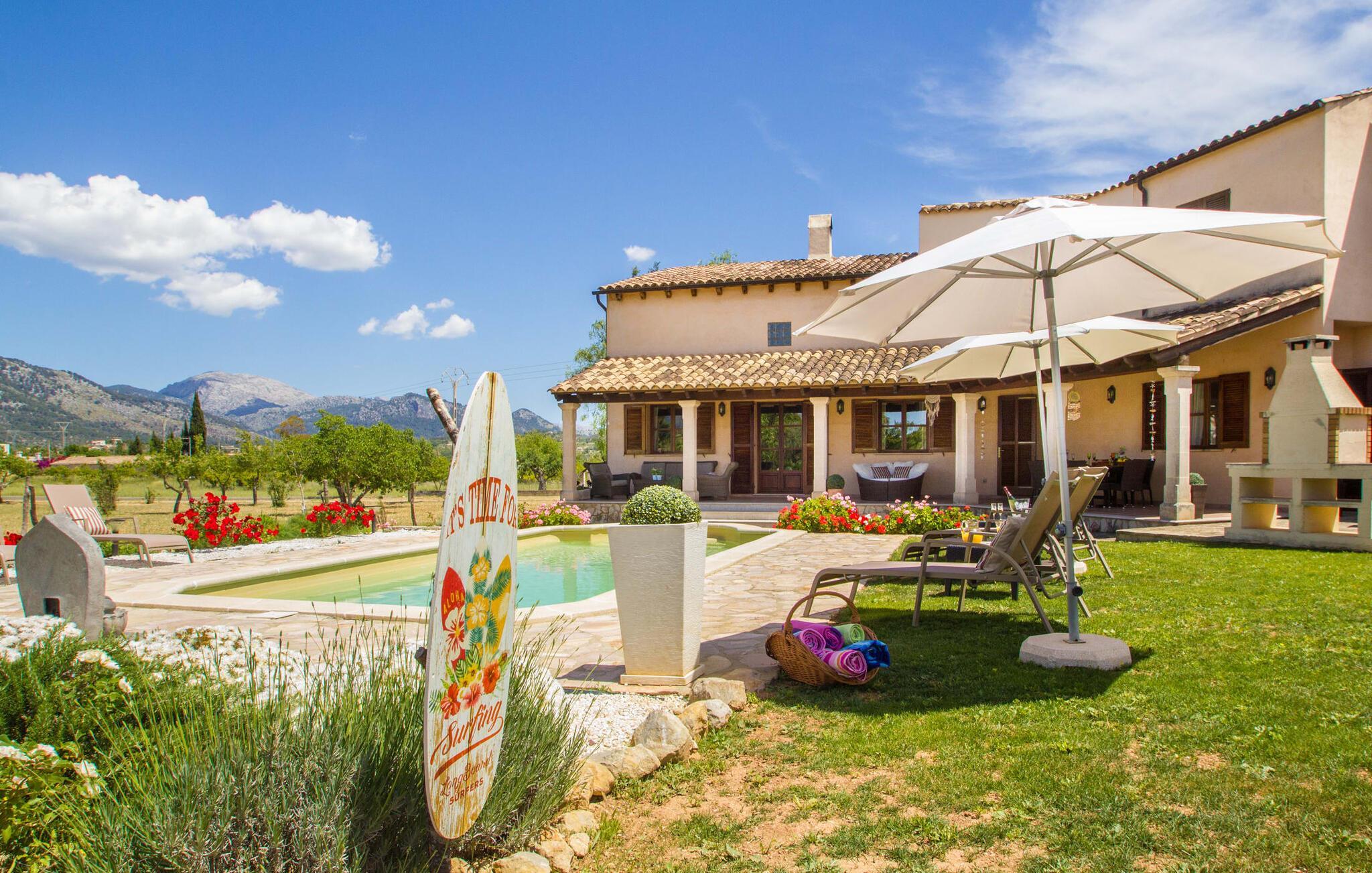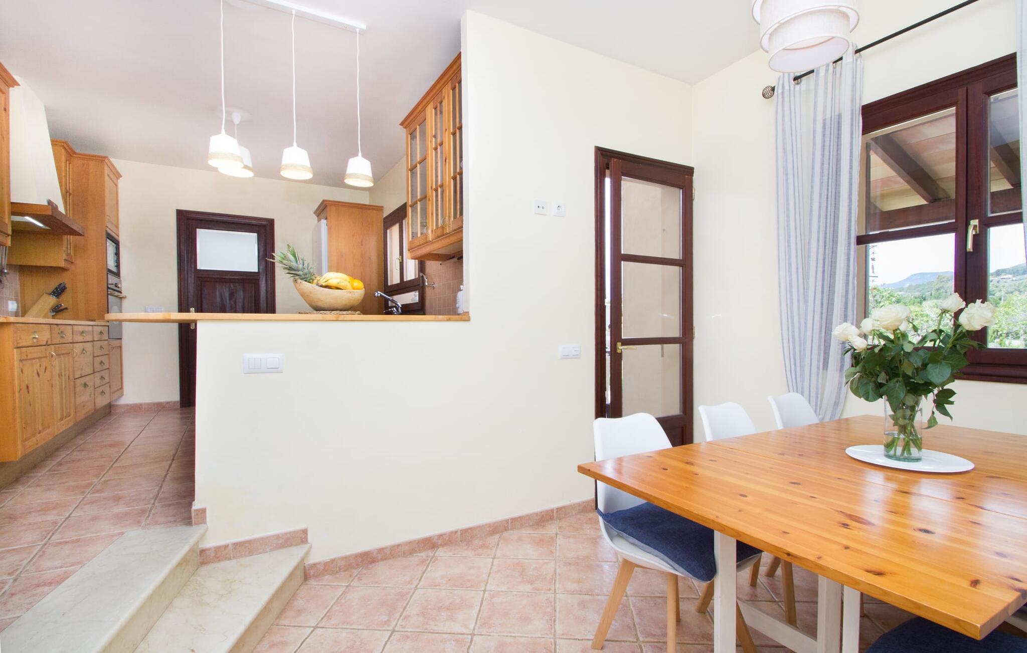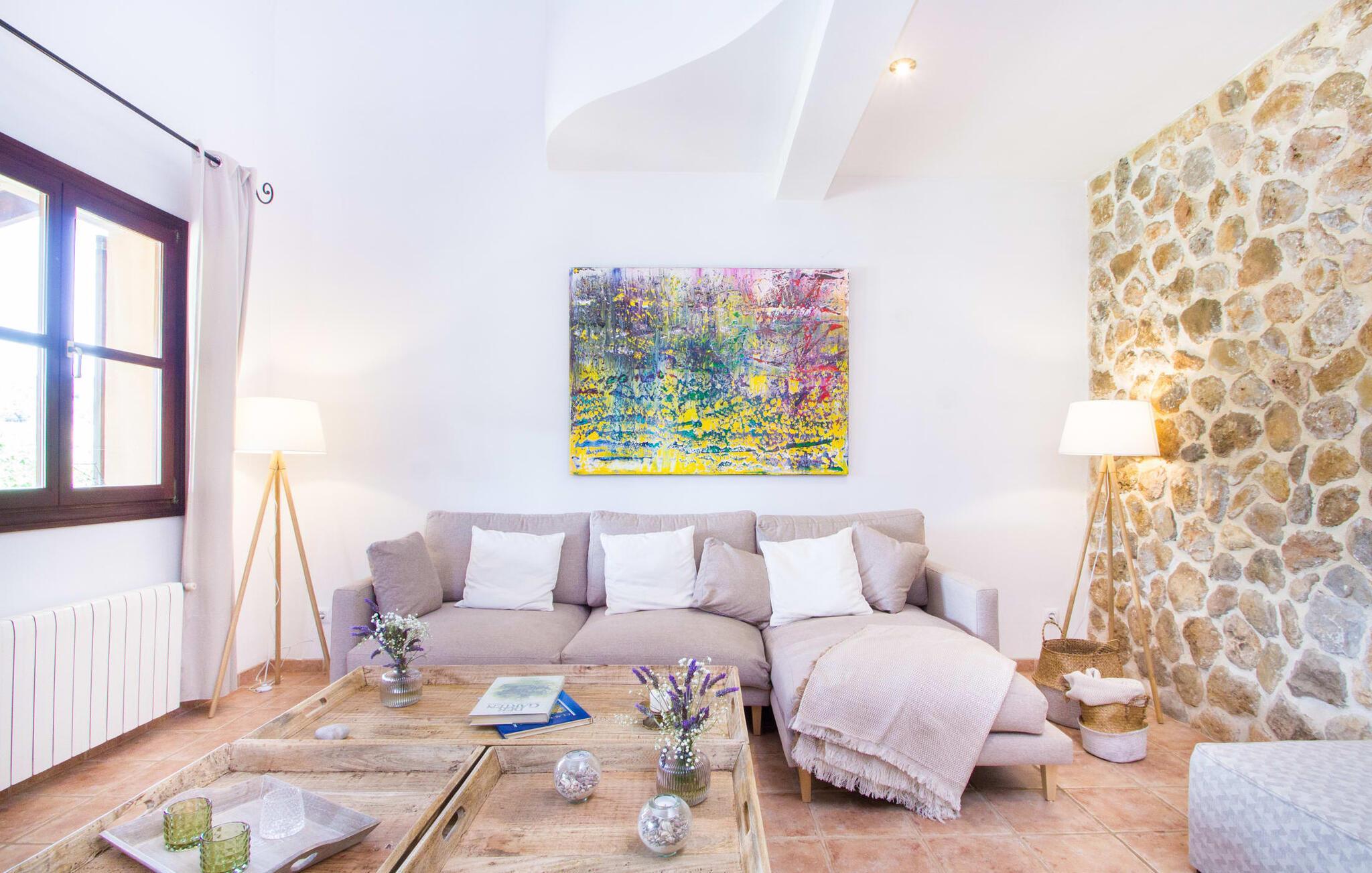 Pastelfarvet maling, træskodder, i en middelhavshave - dette er essensen af en typisk mallorcansk villa, og du kan finde alt dette i "Ca Na Castell Son Rubi" i den nordlige del af Mallorca. Dette er et Fincallorca-feriehus Villaen ligger ved foden af Tramuntana-bjergene og byder på en fantastisk udsigt. Den velholdte pool er det perfekte sted at slappe af i en liggestol Parasol før du nyder en lækker grill Der er masser af parkeringsplads bag villaen. Indenfor er der den charmerende stue med en behagelig lædersofa, klassisk kunst, rustikke træmøbler og en skøn stenmur en pejs, mens moderne bekvemmeligheder sikrer, at du forbliver forbundet Spisebord til rådighed. "Ca Na Castell Son Rubi" sover syv gæster med tre soveværelser med dobbeltsenge, et enkelt soveværelse og tre badeværelser (et en-suite) Hvert soveværelse er stilfuldt indrettet og har unikke farveskemaer, der forstærker den indbydende atmosfære. Rubi” ligger mellem Selva og Inca, på den nordlige del af øen. Takket være det afsondrede landlige miljø kan du nyde absolut fred og stadig være i stand til at tage på fantastiske udflugter. Du kan opleve det autentiske mallorcanske liv i den charmerende bjerglandsby Selva, kun 1,8 km væk; Et besøg i læder- og vinbyen Inca er det værd. Stranden i Alcúdia eller Playa de Muro er omkring 28 km væk, og vandreentusiaster vil være glade for nærheden til Tramuntana-bjergene.