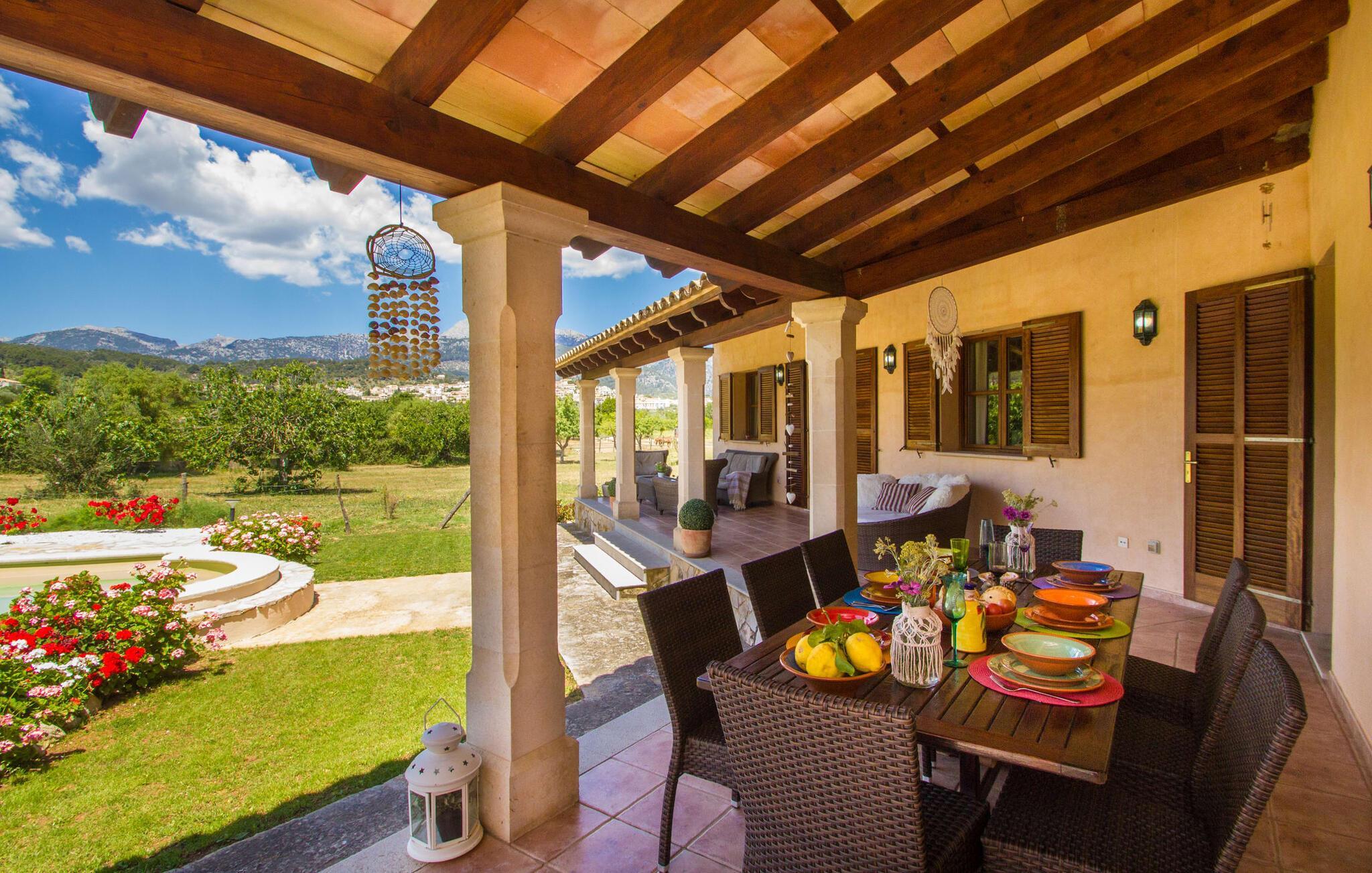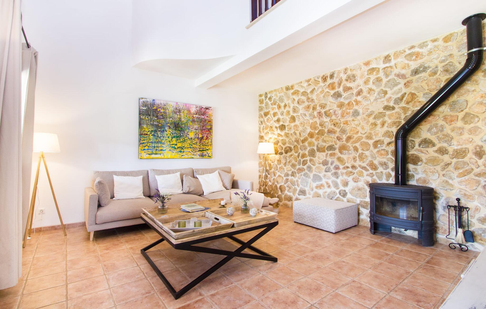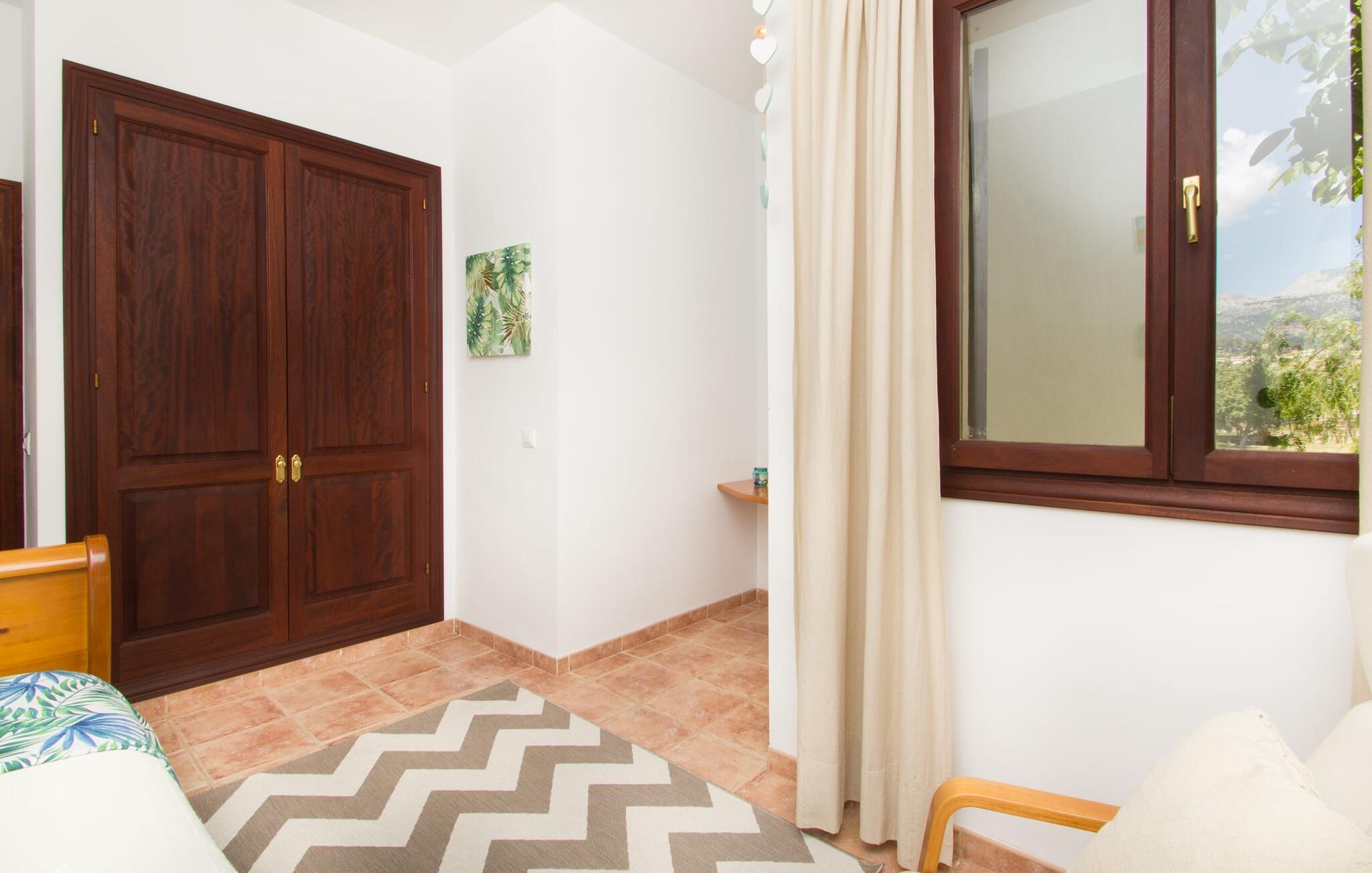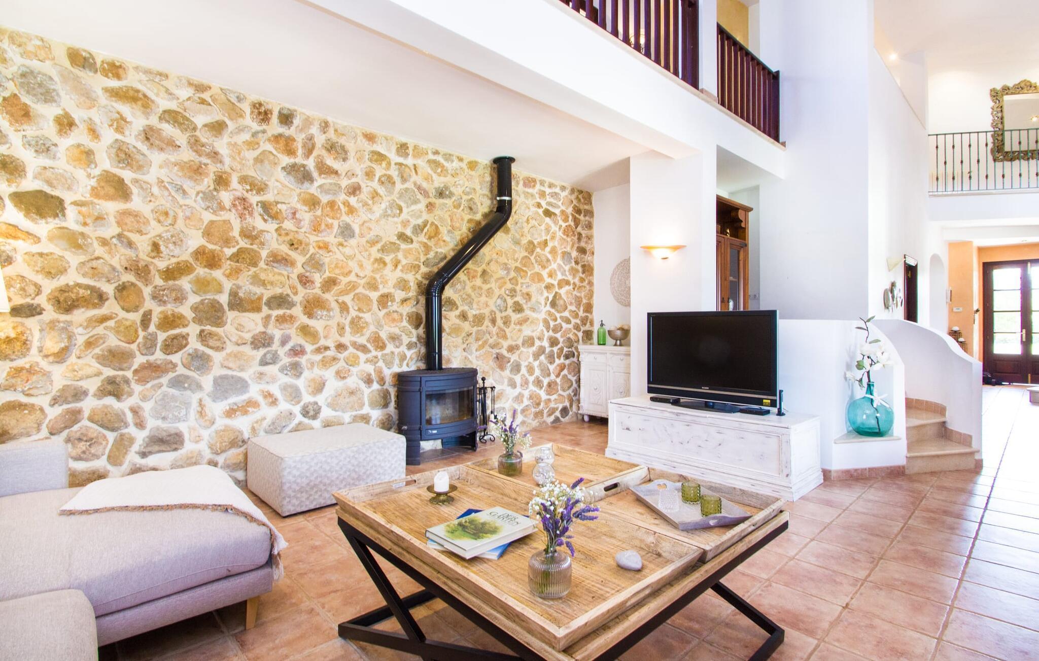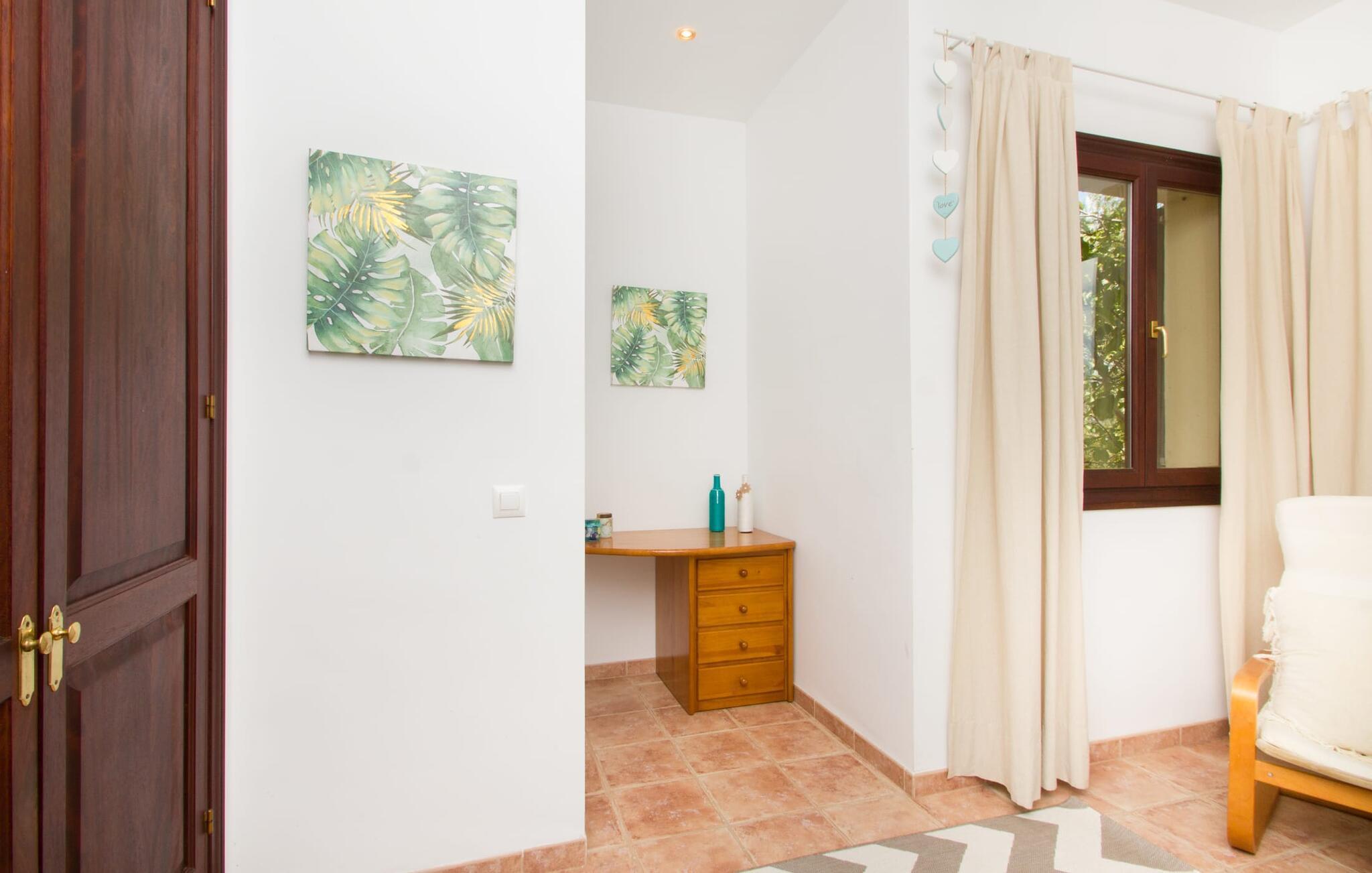 Pastelfarvet maling, træskodder, i en middelhavshave - dette er essensen af en typisk mallorcansk villa, og du kan finde alt dette i "Ca Na Castell Son Rubi" i den nordlige del af Mallorca. Dette er et Fincallorca-feriehus Villaen ligger ved foden af Tramuntana-bjergene og byder på en fantastisk udsigt. Den velholdte pool er det perfekte sted at slappe af i en liggestol Parasol før du nyder en lækker grill Der er masser af parkeringsplads bag villaen. Indenfor er der den charmerende stue med en behagelig lædersofa, klassisk kunst, rustikke træmøbler og en skøn stenmur en pejs, mens moderne bekvemmeligheder sikrer, at du forbliver forbundet Spisebord til rådighed. "Ca Na Castell Son Rubi" sover syv gæster med tre soveværelser med dobbeltsenge, et enkelt soveværelse og tre badeværelser (et en-suite) Hvert soveværelse er stilfuldt indrettet og har unikke farveskemaer, der forstærker den indbydende atmosfære. Rubi” ligger mellem Selva og Inca, på den nordlige del af øen. Takket være det afsondrede landlige miljø kan du nyde absolut fred og stadig være i stand til at tage på fantastiske udflugter. Du kan opleve det autentiske mallorcanske liv i den charmerende bjerglandsby Selva, kun 1,8 km væk; Et besøg i læder- og vinbyen Inca er det værd. Stranden i Alcúdia eller Playa de Muro er omkring 28 km væk, og vandreentusiaster vil være glade for nærheden til Tramuntana-bjergene.