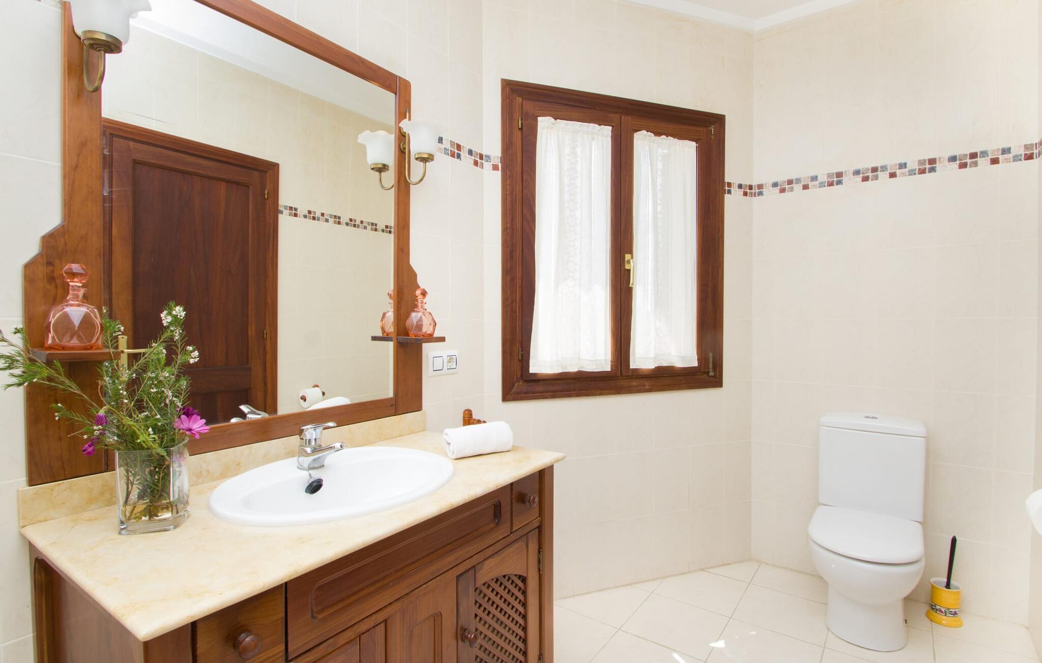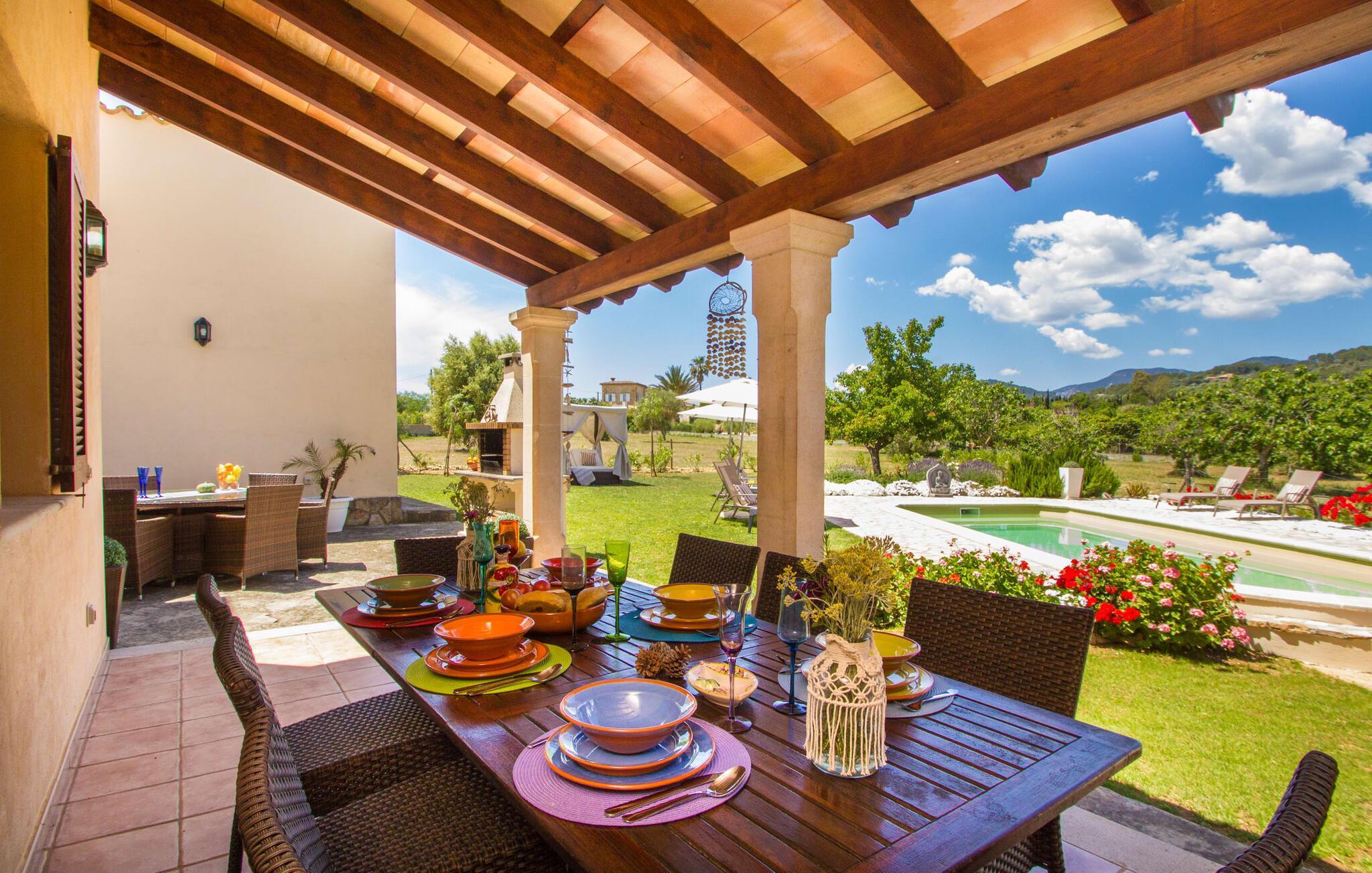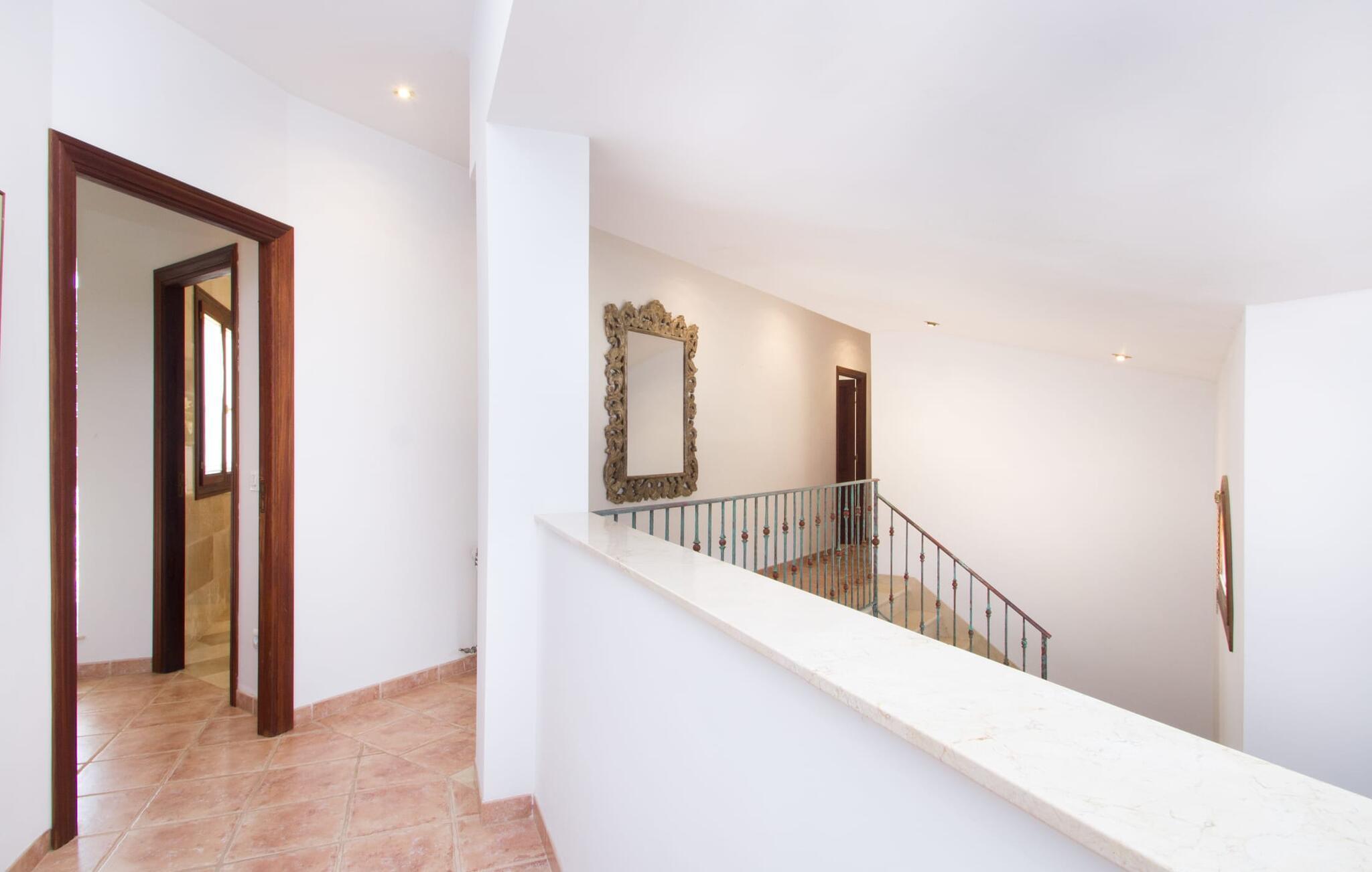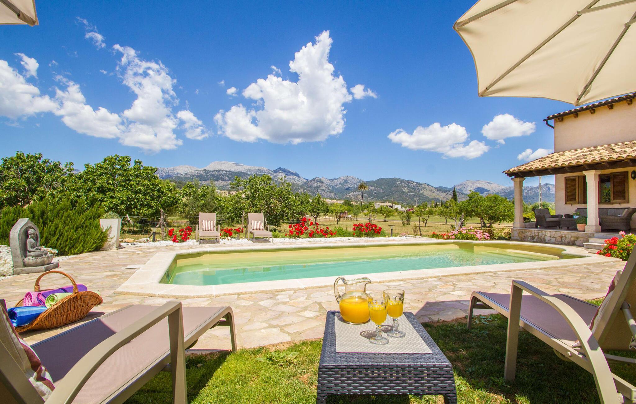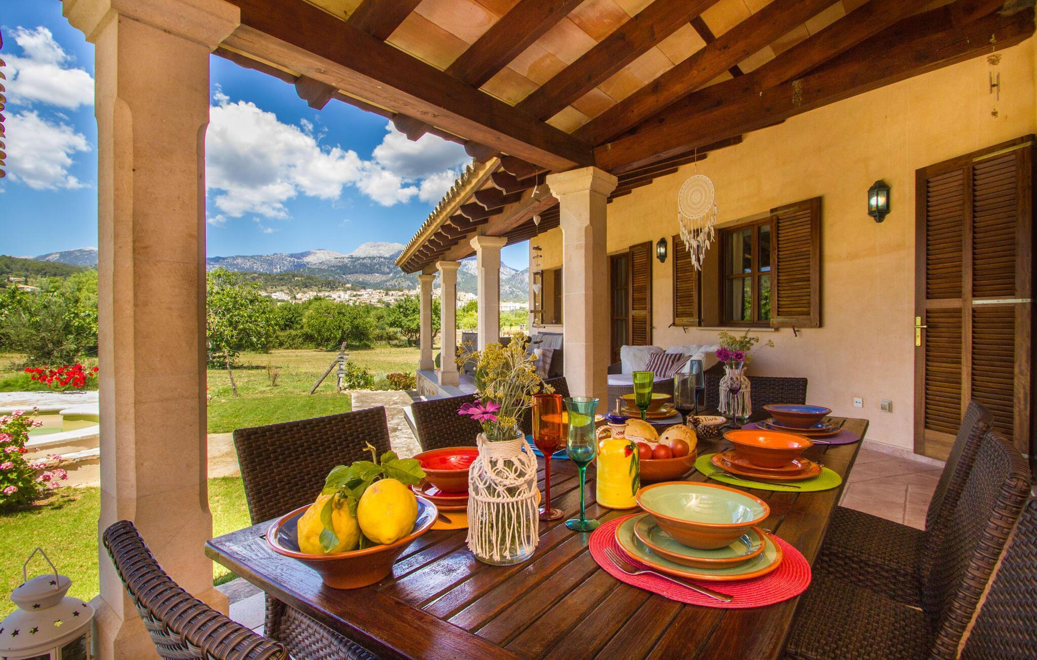 Pastelfarvet maling, træskodder, i en middelhavshave - dette er essensen af en typisk mallorcansk villa, og du kan finde alt dette i "Ca Na Castell Son Rubi" i den nordlige del af Mallorca. Dette er et Fincallorca-feriehus Villaen ligger ved foden af Tramuntana-bjergene og byder på en fantastisk udsigt. Den velholdte pool er det perfekte sted at slappe af i en liggestol Parasol før du nyder en lækker grill Der er masser af parkeringsplads bag villaen. Indenfor er der den charmerende stue med en behagelig lædersofa, klassisk kunst, rustikke træmøbler og en skøn stenmur en pejs, mens moderne bekvemmeligheder sikrer, at du forbliver forbundet Spisebord til rådighed. "Ca Na Castell Son Rubi" sover syv gæster med tre soveværelser med dobbeltsenge, et enkelt soveværelse og tre badeværelser (et en-suite) Hvert soveværelse er stilfuldt indrettet og har unikke farveskemaer, der forstærker den indbydende atmosfære. Rubi” ligger mellem Selva og Inca, på den nordlige del af øen. Takket være det afsondrede landlige miljø kan du nyde absolut fred og stadig være i stand til at tage på fantastiske udflugter. Du kan opleve det autentiske mallorcanske liv i den charmerende bjerglandsby Selva, kun 1,8 km væk; Et besøg i læder- og vinbyen Inca er det værd. Stranden i Alcúdia eller Playa de Muro er omkring 28 km væk, og vandreentusiaster vil være glade for nærheden til Tramuntana-bjergene.