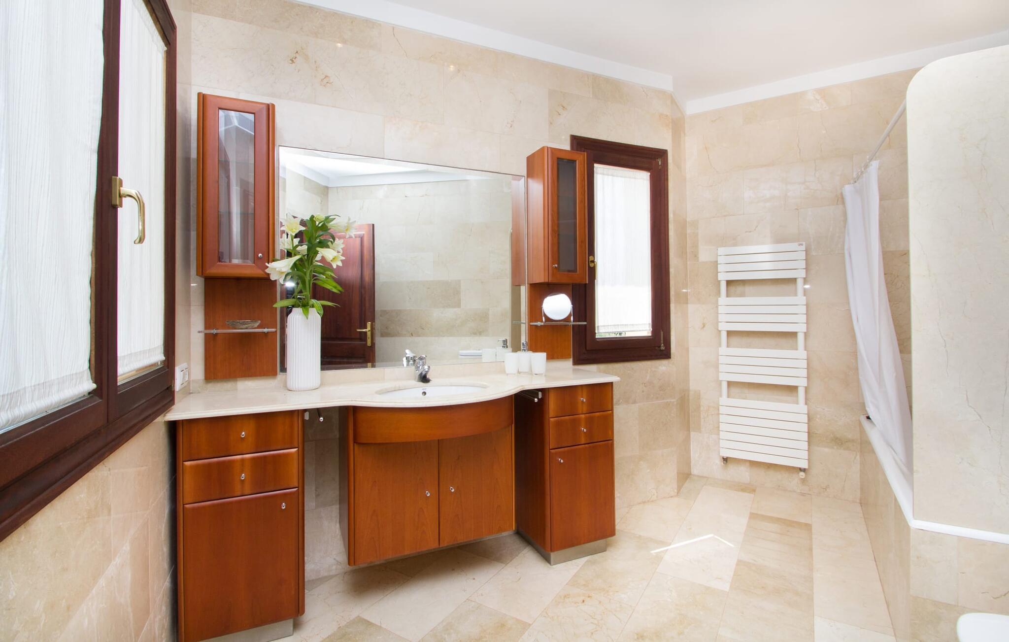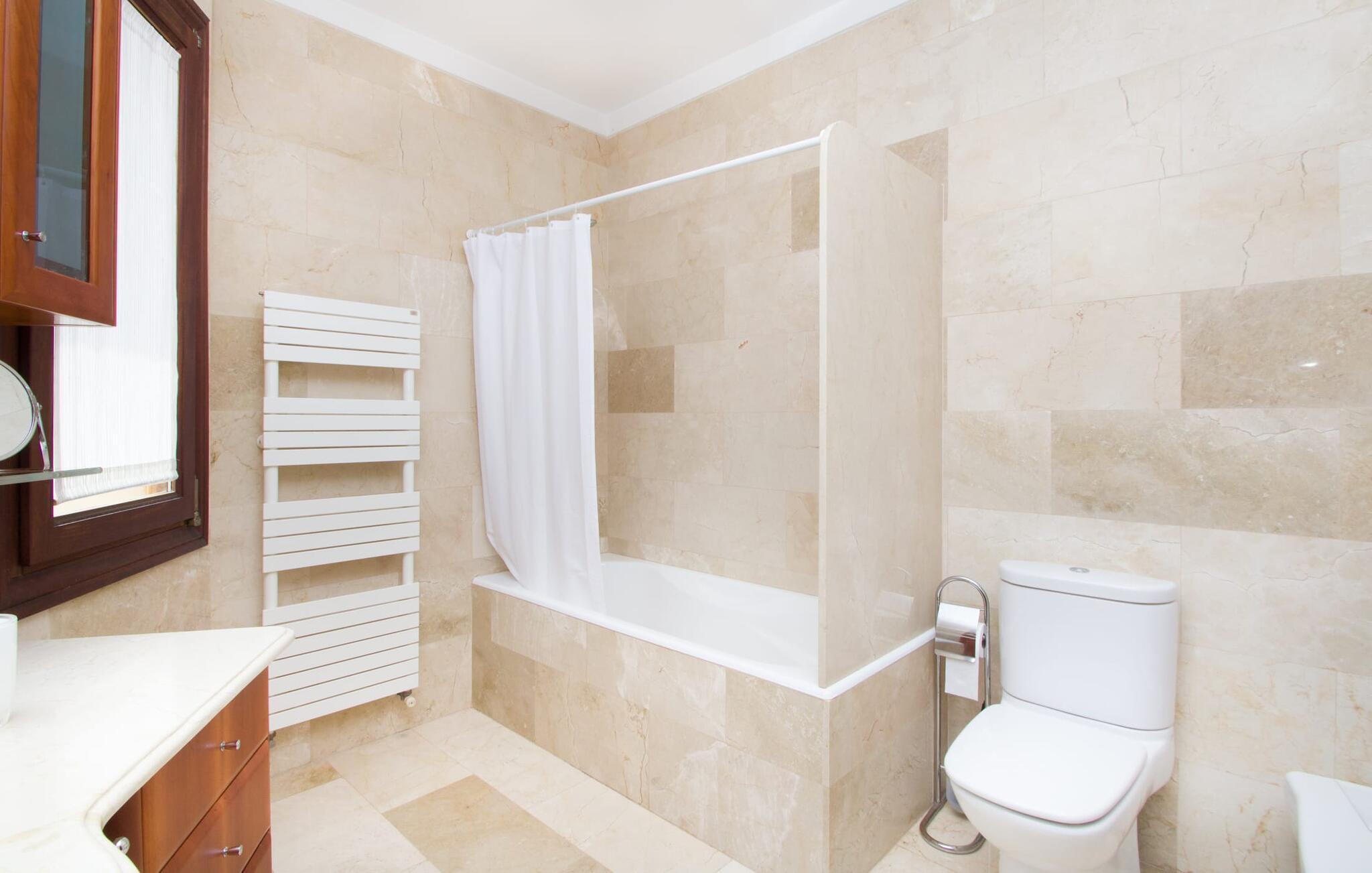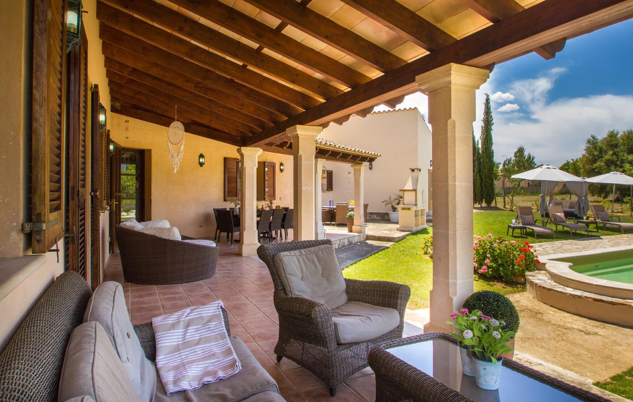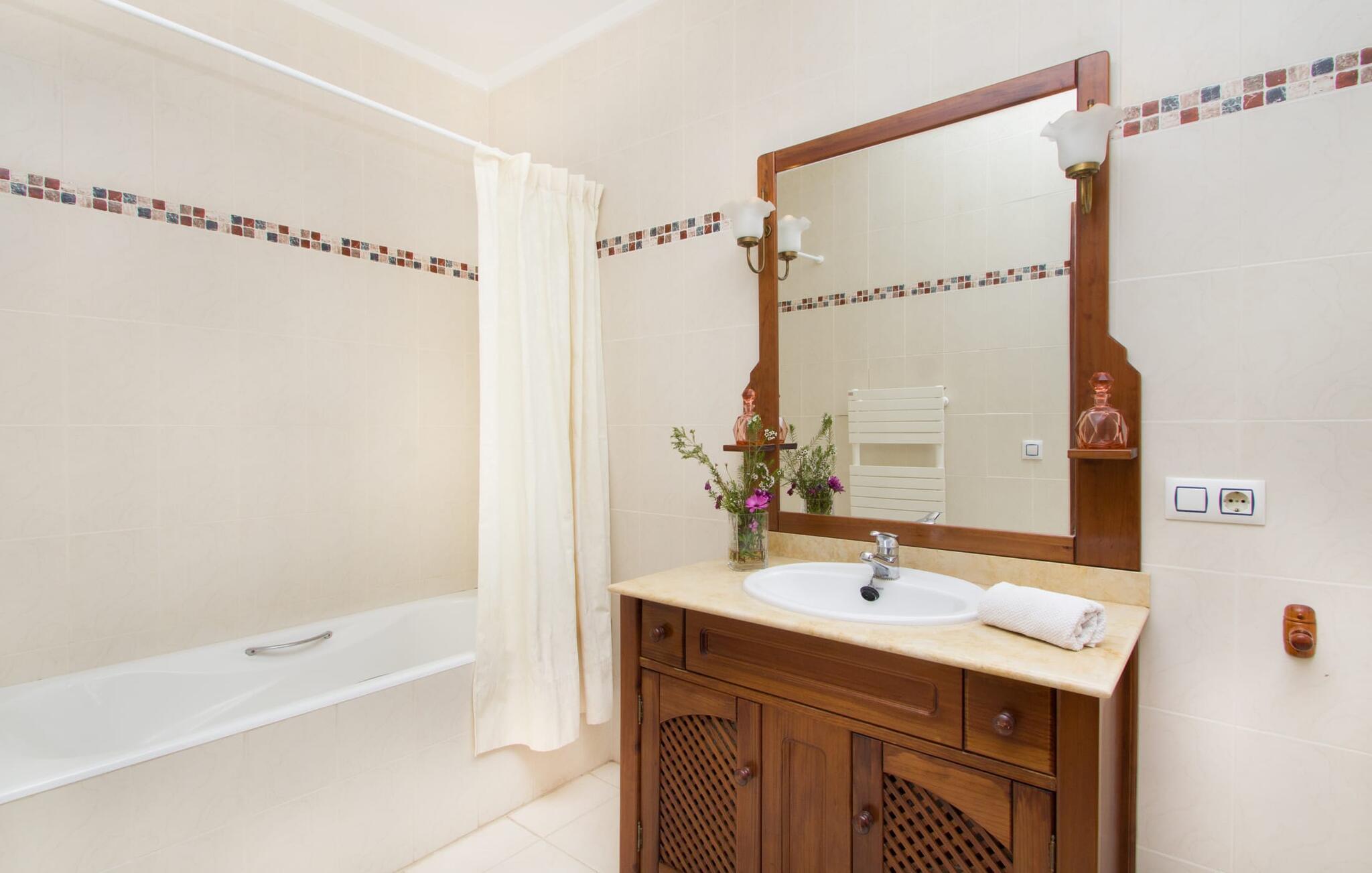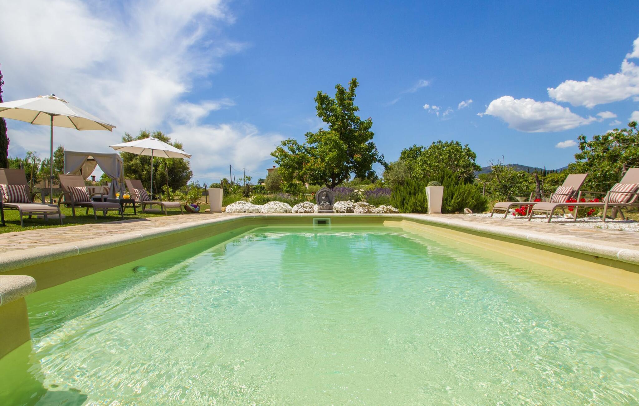 Pastelfarvet maling, træskodder, i en middelhavshave - dette er essensen af en typisk mallorcansk villa, og du kan finde alt dette i "Ca Na Castell Son Rubi" i den nordlige del af Mallorca. Dette er et Fincallorca-feriehus Villaen ligger ved foden af Tramuntana-bjergene og byder på en fantastisk udsigt. Den velholdte pool er det perfekte sted at slappe af i en liggestol Parasol før du nyder en lækker grill Der er masser af parkeringsplads bag villaen. Indenfor er der den charmerende stue med en behagelig lædersofa, klassisk kunst, rustikke træmøbler og en skøn stenmur en pejs, mens moderne bekvemmeligheder sikrer, at du forbliver forbundet Spisebord til rådighed. "Ca Na Castell Son Rubi" sover syv gæster med tre soveværelser med dobbeltsenge, et enkelt soveværelse og tre badeværelser (et en-suite) Hvert soveværelse er stilfuldt indrettet og har unikke farveskemaer, der forstærker den indbydende atmosfære. Rubi” ligger mellem Selva og Inca, på den nordlige del af øen. Takket være det afsondrede landlige miljø kan du nyde absolut fred og stadig være i stand til at tage på fantastiske udflugter. Du kan opleve det autentiske mallorcanske liv i den charmerende bjerglandsby Selva, kun 1,8 km væk; Et besøg i læder- og vinbyen Inca er det værd. Stranden i Alcúdia eller Playa de Muro er omkring 28 km væk, og vandreentusiaster vil være glade for nærheden til Tramuntana-bjergene.