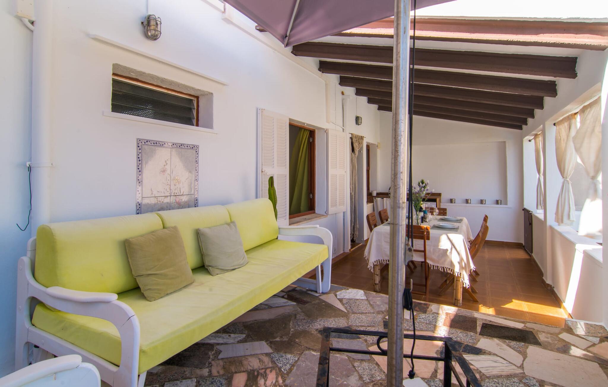 Dette smukke, hvide lille rækkehus passer perfekt mellem sine naboer i centrum af Colònia de Sant Pere; Bilerne kan parkeres foran huset. Men "Ca Na Fulla Pastor" byder stadig på en masse privatliv, væggene i højre og venstre side beskytter mod udsigt og giver beskyttelse mod vinden, og foran, bag det flade tag, er bjergene i Sierra de Artà. Bag husets ret iøjnefaldende front (herfra kan du se travlheden på gaden) ville du ikke forvente en have, men der er en! Du kan se ned fra den skyggefulde terrasse, hvor der er vaskemaskine og opvaskemaskine, som til enhver tid kan adskilles med et gardin. Du vil helt sikkert tilbringe en hel dag i denne udendørs stue, hvor ingen kan se på din tallerken eller dine kort. En bakke og et par liggestole kan nemt bringes til solrige steder i græshaven, som du kan nå via sikkerhedstrappen, eller til tagterrassen for at nyde en espresso eller læse avisen i ro og mag. Den runde pool inviterer til en dukkert, når det er rigtig varmt udenfor. Vil du svømme længere strækninger, skal du blot gå eller køre et par meter til byens velbeskyttede Platja. Dette er et Fincallorca feriehus. Velkommen til hjemmet (med pejs), hvor du kan gå direkte fra gaden til sofaen. Spild ikke din tid på at lede efter designermøbler i "Ca Na Fulla Pastor"; Huset er funktionelt, personligt og hyggeligt. To trin fører dig til det rustikke køkken, både åbent og lukket, og videre til terrassen, fordi du helt sikkert vil bruge så meget tid af din ferie udenfor som muligt. Det lille hvide bord indeni er et godt sted at stille lidt snacks, salater og drinks, så alle kan få fat i, hvad de vil. Hvem har lyst til at lave meget mad, når der er restauranter med havudsigt og service overalt? En lille gang fører til de to værelser med deres dobbeltsenge og det fælles badeværelse med bruser (badekar). Fra det ene rum kan du se ud af vinduet om morgenen og se, om bordet allerede er dækket til morgenmad, mens du i det andet rum nok ikke har lyst til at vågne op fra dine turkise drømme. Hvis du stadig godt kan lide at stå tidligt op og gerne vil svare eller læse et par e-mails uden at vække den anden person, så sæt dig bare i sofaen bag gardinerne. En (stadig) stille landsby med orange tage og en helt særlig charme venter dig – en hotelsøgning har indtil videre været forgæves. Du kan tilbringe afslappende stunder i de forskellige restauranter på den smukke Paseo Marítimo havnepromenade, såsom Blau Marí eller Sa Xarxa. Nyd den fremragende crossover-menu efter en dag på stranden, mens solen langsomt forsvinder i havet. Udover Colònia de Sant Pere har bebyggelsen S'Estanyol også en lidet besøgt ministrand. Derfra fører en vandresti over Platja de Sa Canova til skakternbebyggelsen Son Serra de Marina. Mountainbikere og vandrere vil finde deres naturlige paradis mellem flokke af får og oliventræer i nabolandet Betlem. Fra Ermita er der nogle udfordrende ruter til forskellige puigs. Træk vejret ind, ånd ud, slap af - det er alt hvad du behøver for at komme i feriestemning. I kystlandsbyen Colònia de Sant Pere på Badia d'Alcúdia finder du stadig et roligt og behageligt sted på Mallorca. Det hvide rækkehus "Ca Na Fulla Pastor" tilbyder afslappet, ukompliceret indkvartering. To supermarkeder (ved havnen og på kirkepladsen) samt det ugentlige marked om lørdagen giver dig brød, ost, frugt og vin, og adskillige restauranter ligger også inden for gåafstand. Du er kun få hundrede meter fra minibadeområdet beskyttet af bølgebrydere og fra Paseo Marítimo. Der er heller ikke langt til stranden og surfingområdet i Son Serra de Marina.
